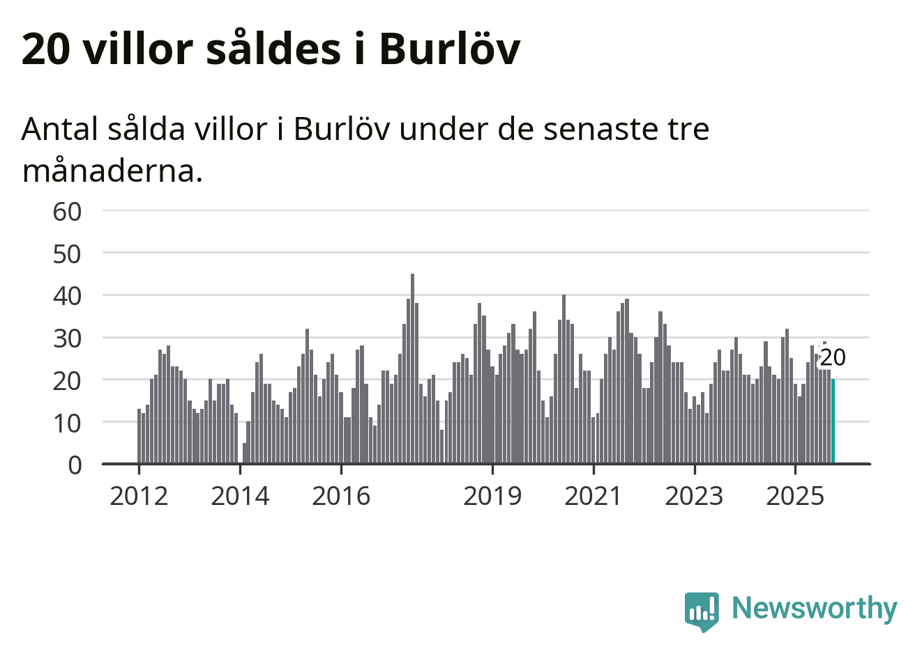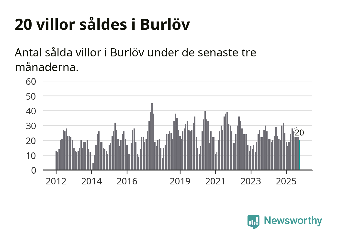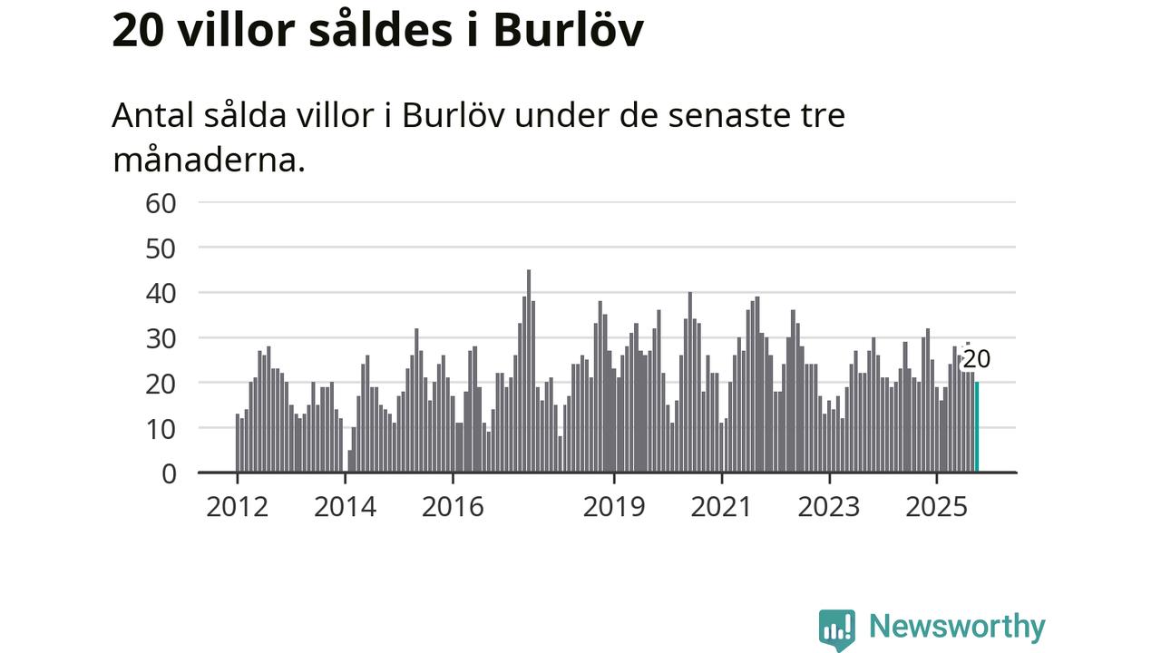 Mellan augusti och oktober gjordes sammanlagt 20 affärer med villor i Burlövs kommun. Det kan jämföras med 30 vid motsvarande tid i fjol.