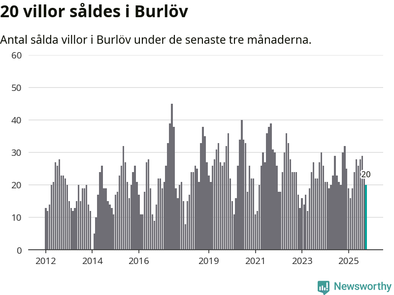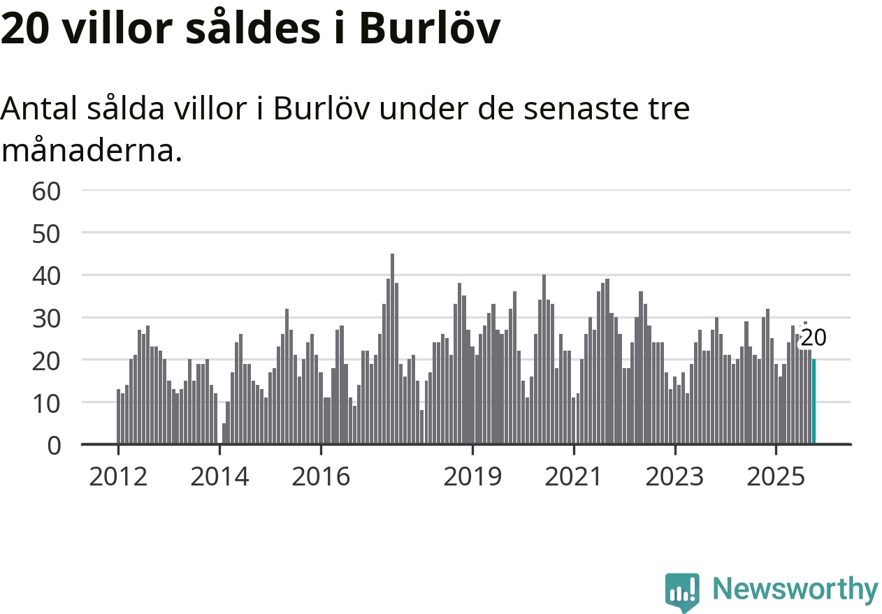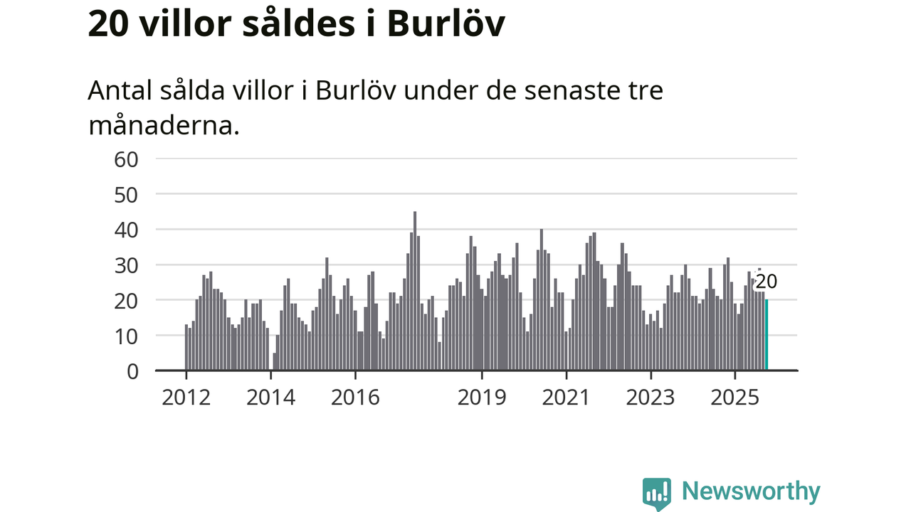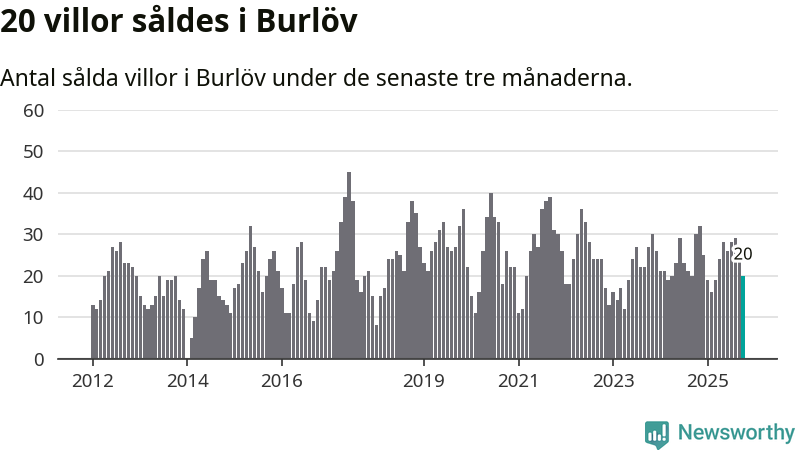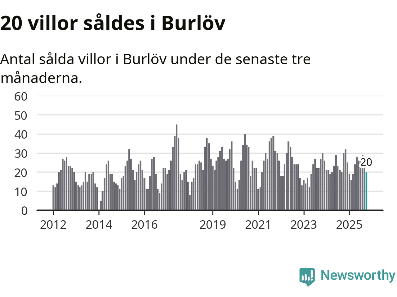 Mellan augusti och oktober gjordes sammanlagt 20 affärer med villor i Burlövs kommun. Det kan jämföras med 30 vid motsvarande tid i fjol.