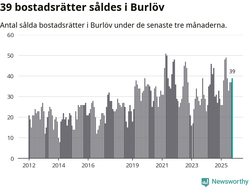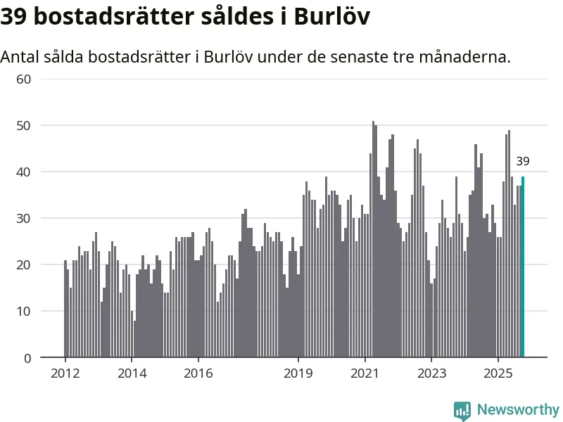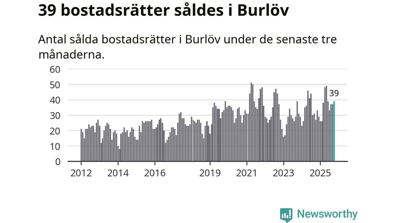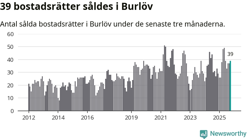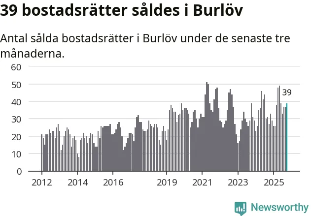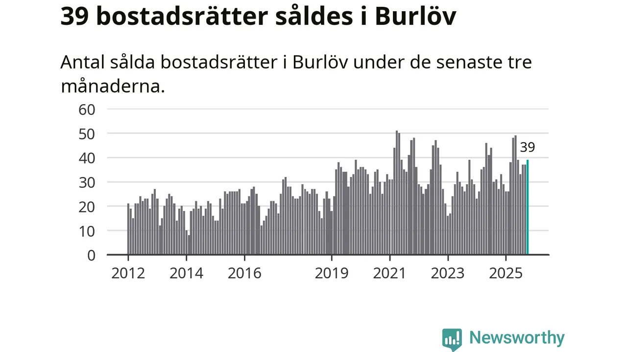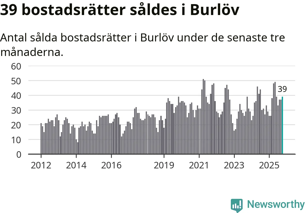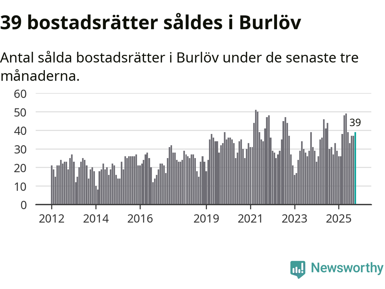 Sammanlagt såldes 39 bostadsrätter i Burlövs kommun mellan augusti och oktober till ett genomsnittligt pris på 1,7 miljoner kronor. I fjol gjordes 27 affärer vid den här tiden på året.