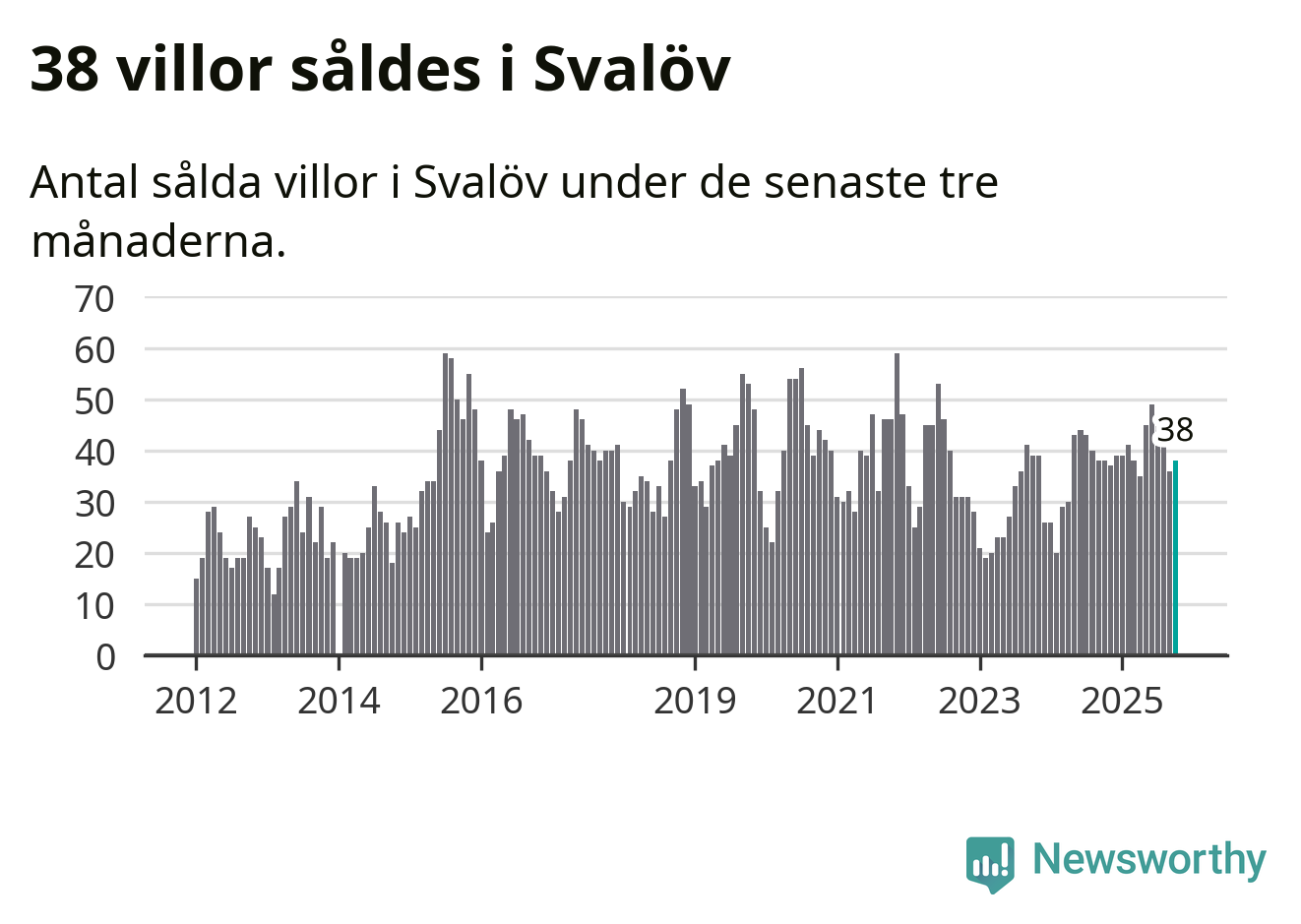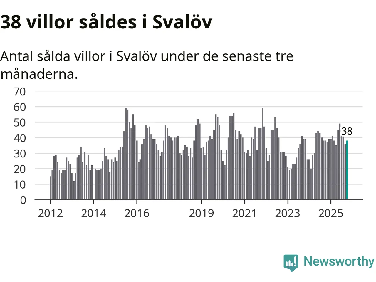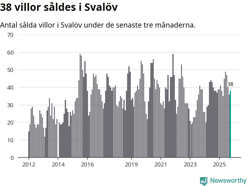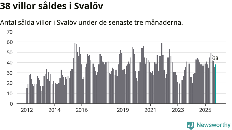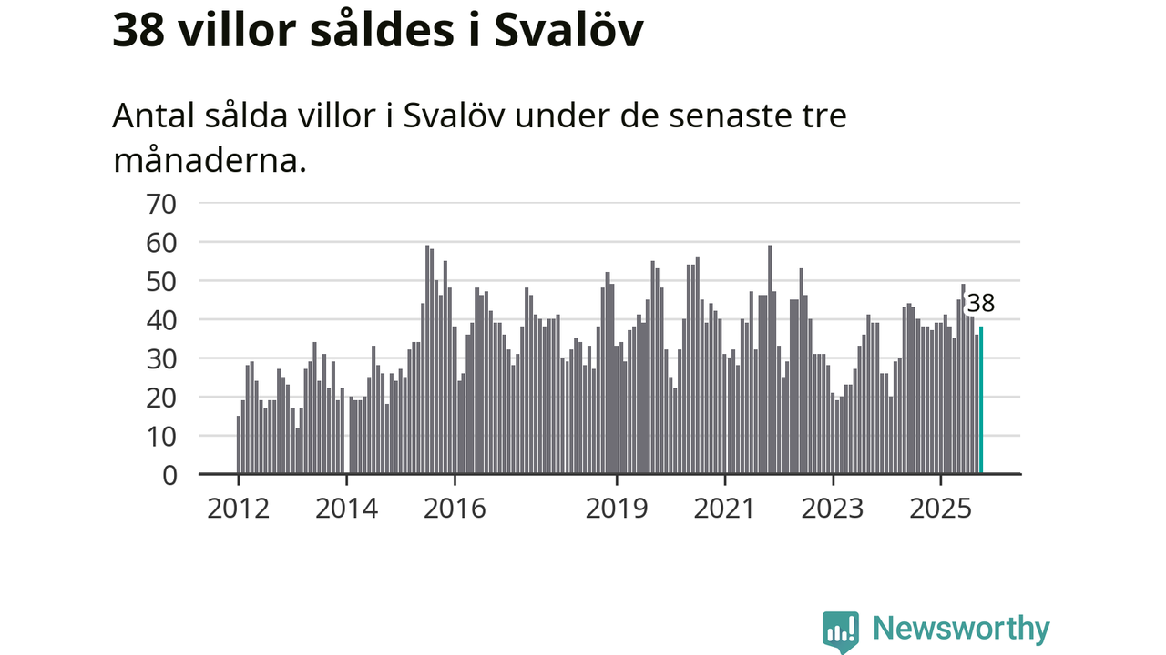 Sammanlagt såldes 38 villor i Svalövs kommun mellan augusti och oktober till ett genomsnittligt pris på 2,4 miljoner kronor. I fjol gjordes 38 affärer vid den här tiden på året.
