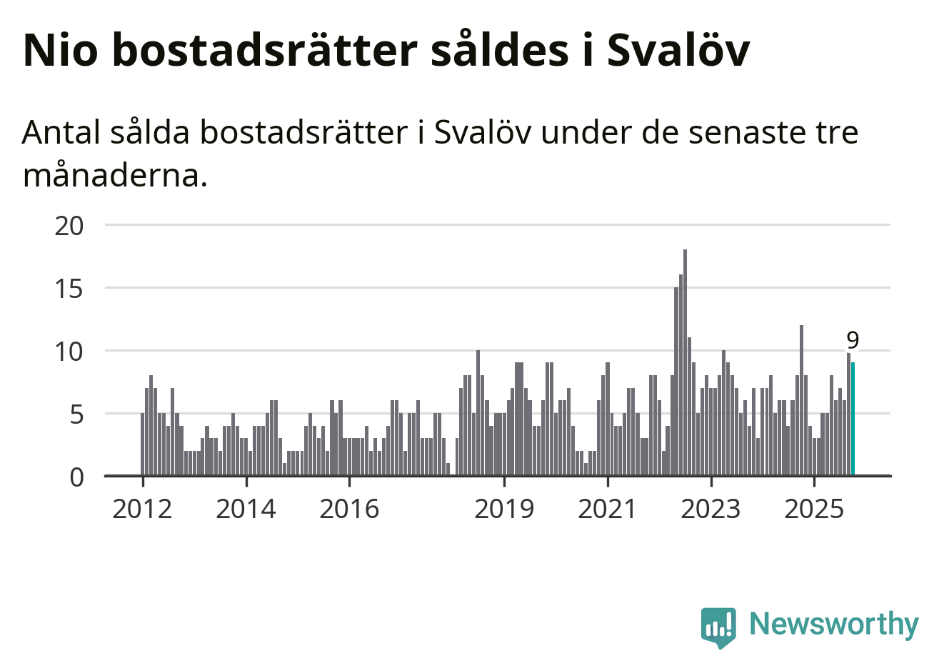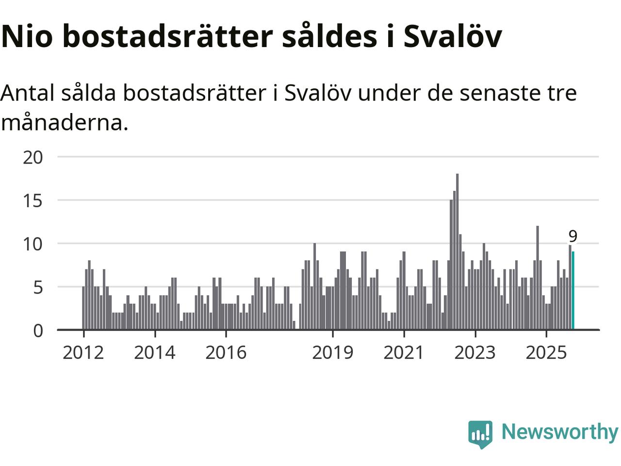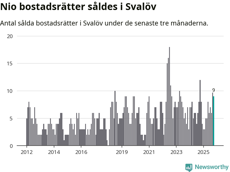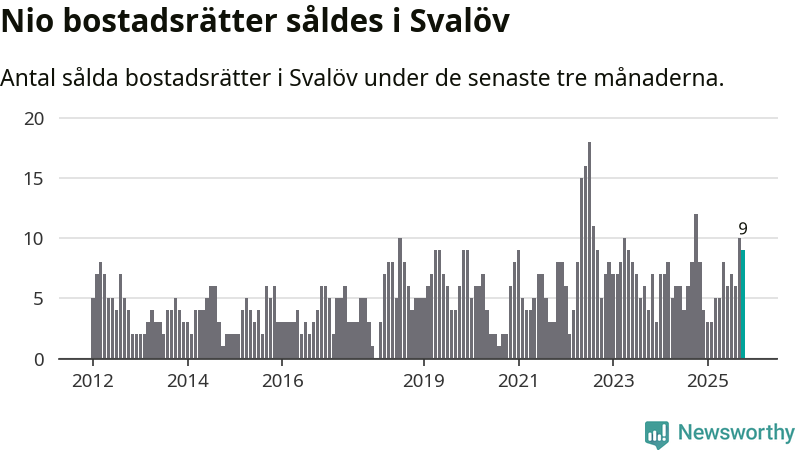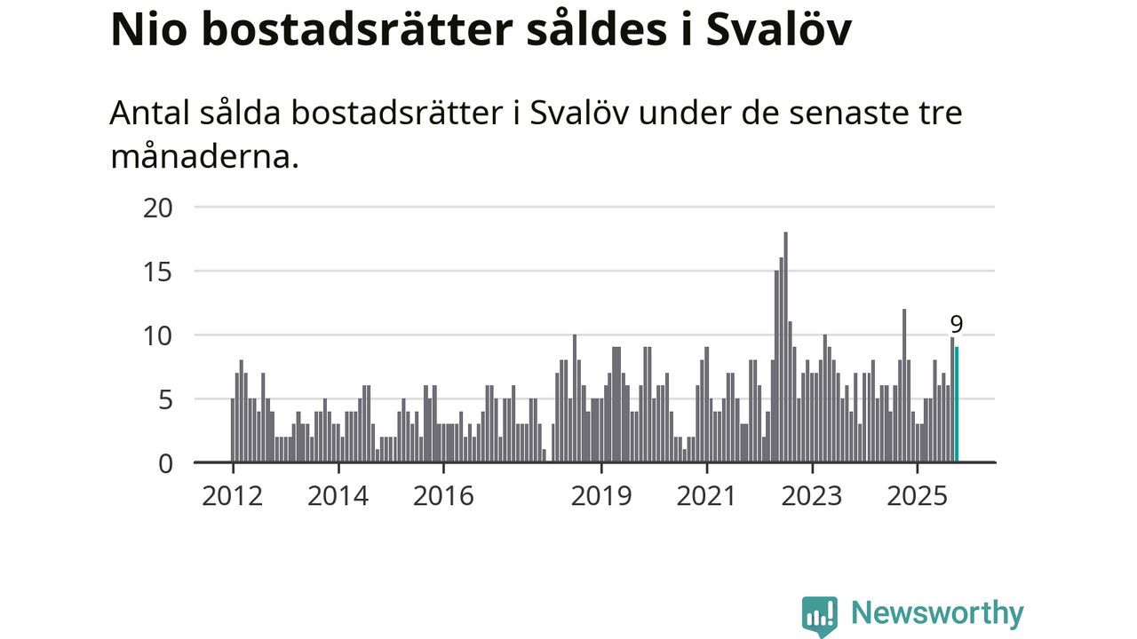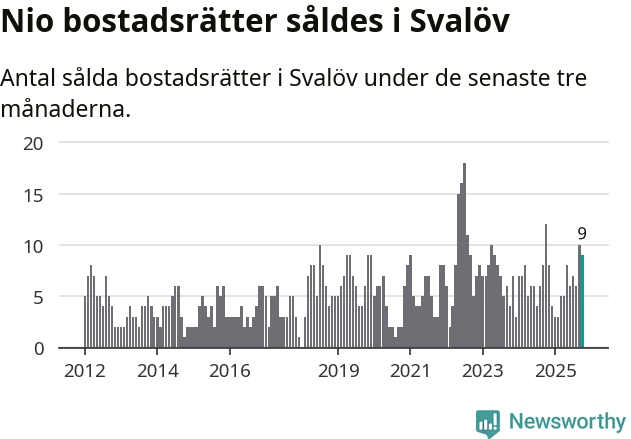 Mellan augusti och oktober gjordes sammanlagt nio affärer med bostadsrätter i Svalövs kommun. Det kan jämföras med tolv vid motsvarande tid i fjol.
