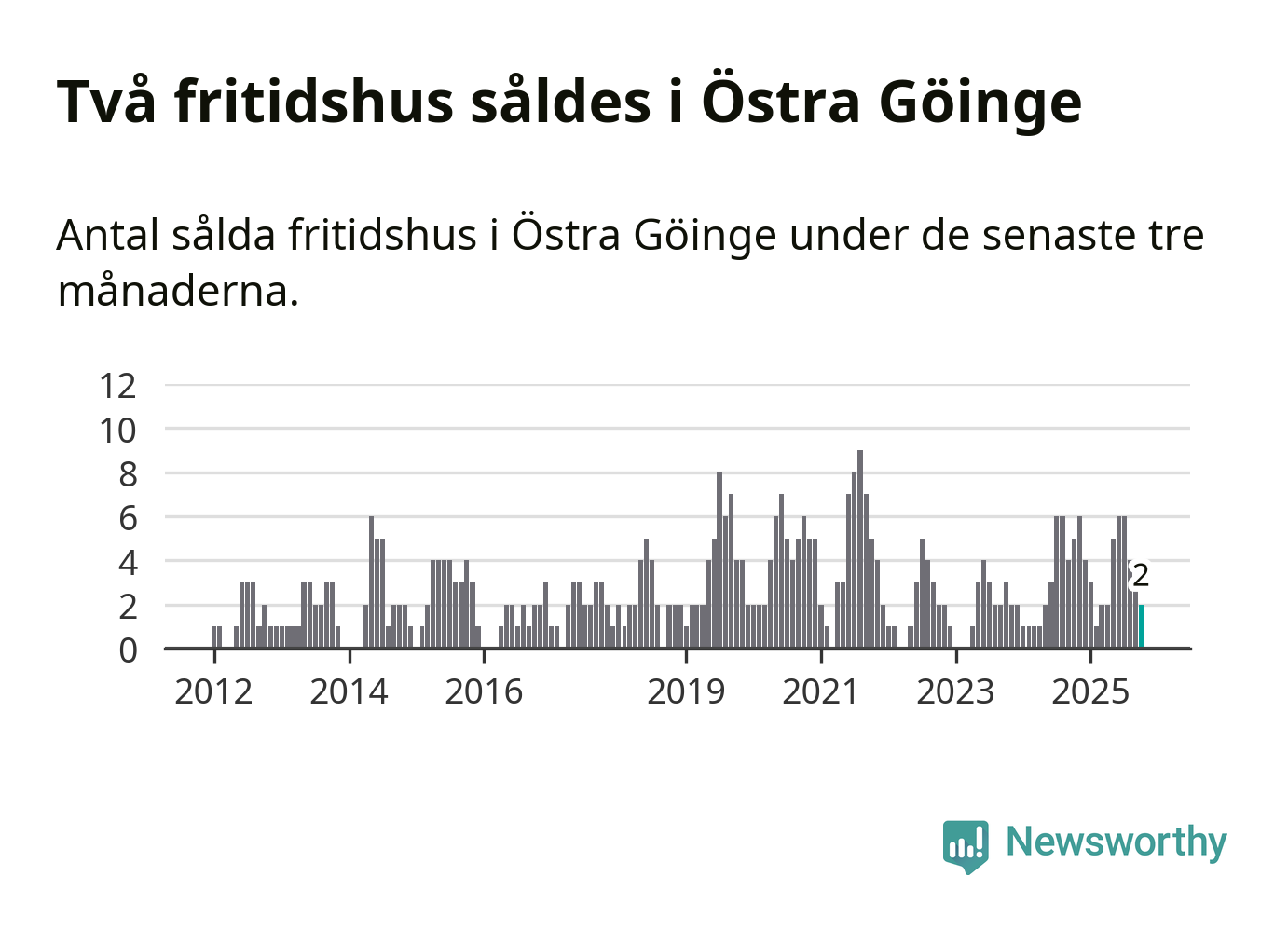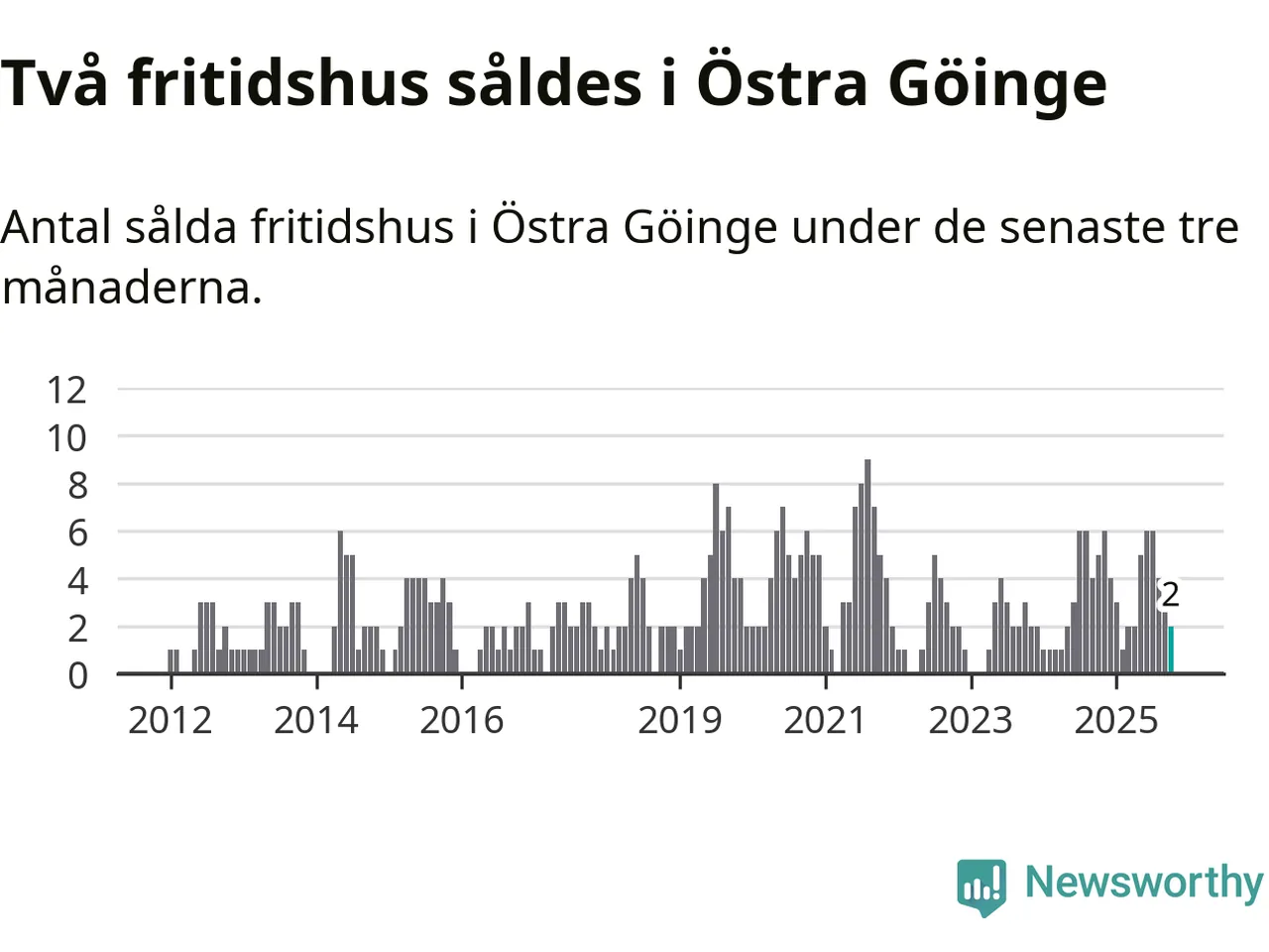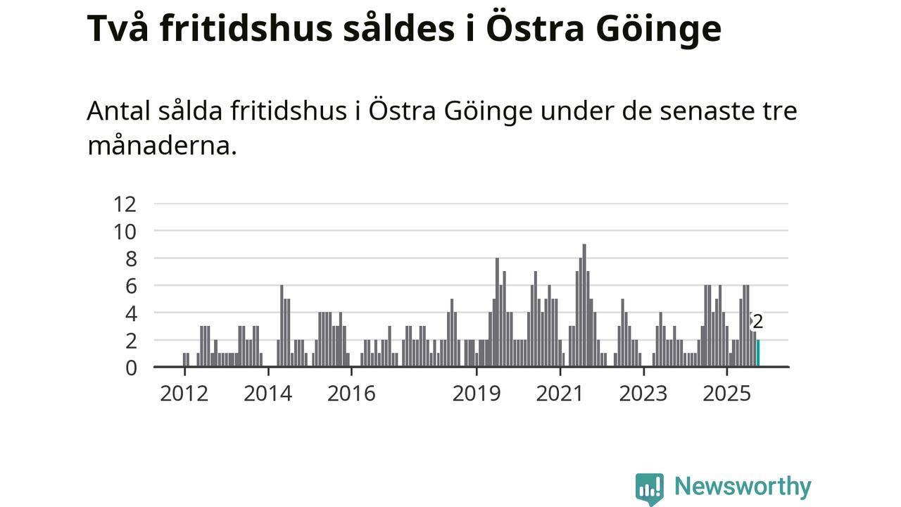 Mellan augusti och oktober gjordes sammanlagt två affärer med fritidshus i Östra Göinge kommun. Det kan jämföras med fem vid motsvarande tid i fjol.