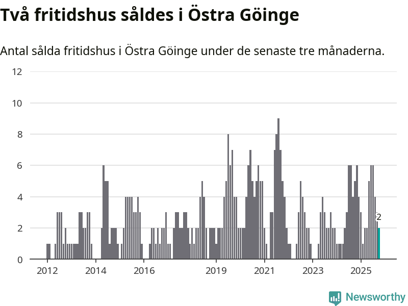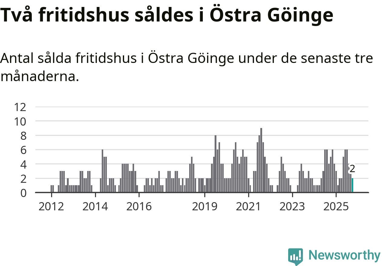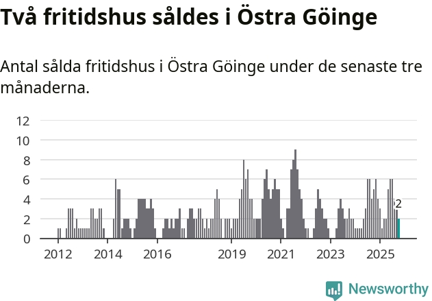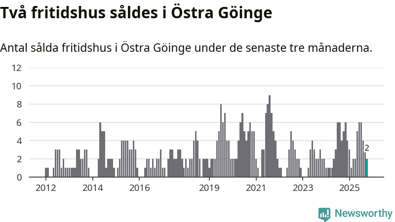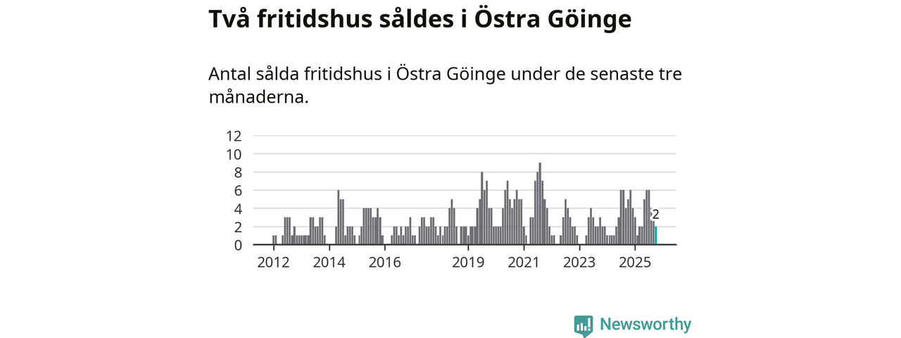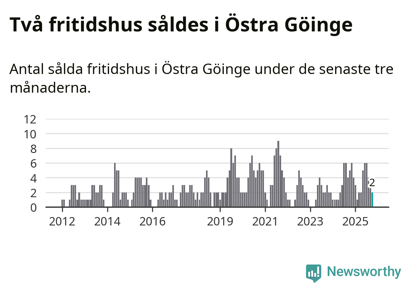 Mellan augusti och oktober gjordes sammanlagt två affärer med fritidshus i Östra Göinge kommun. Det kan jämföras med fem vid motsvarande tid i fjol.