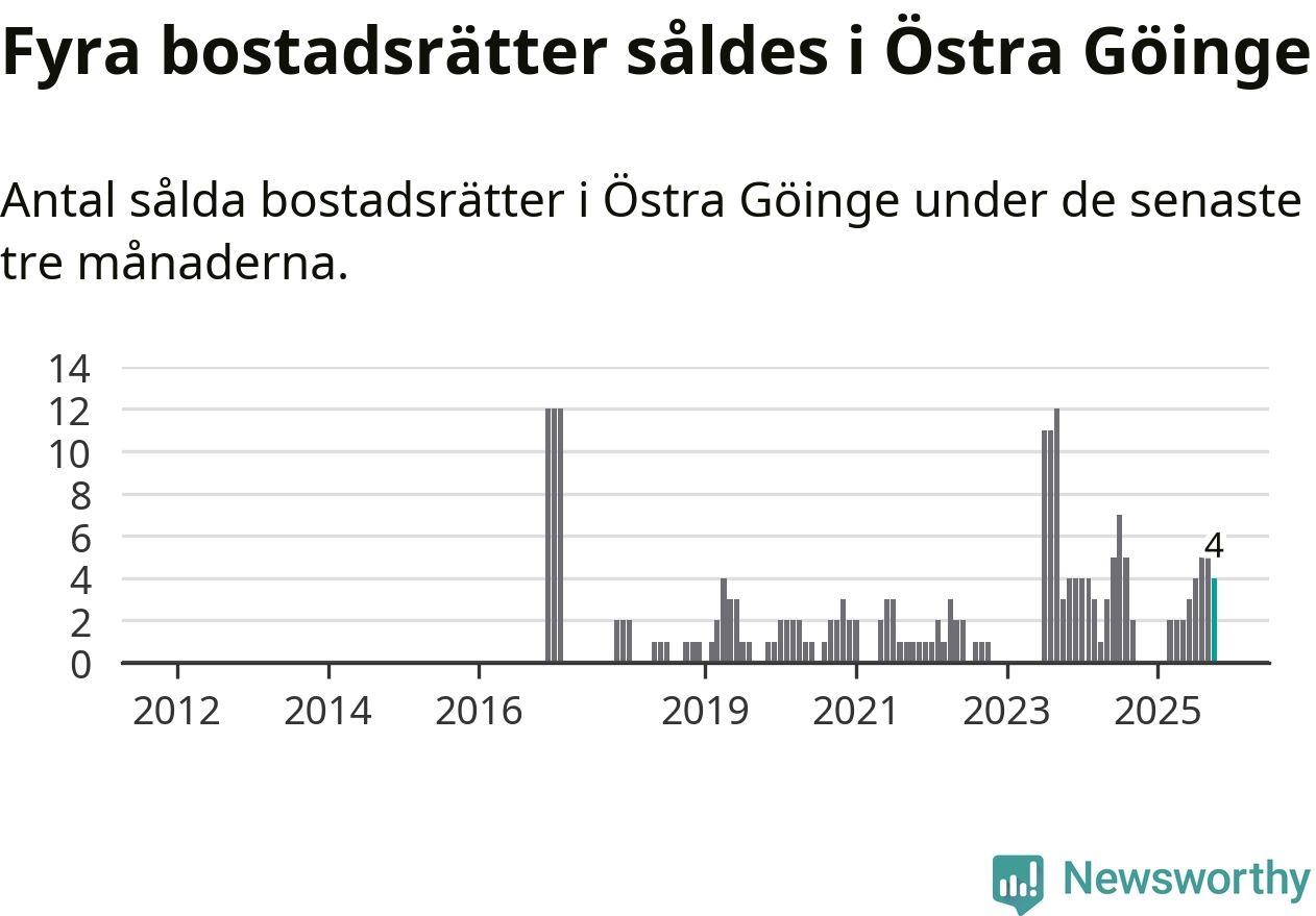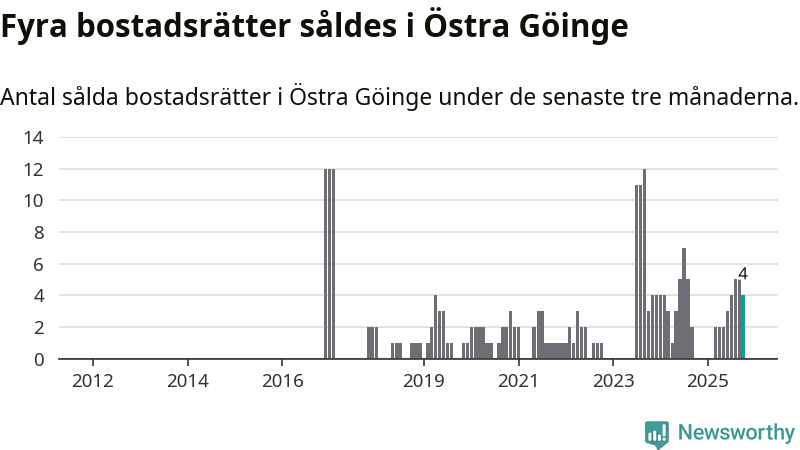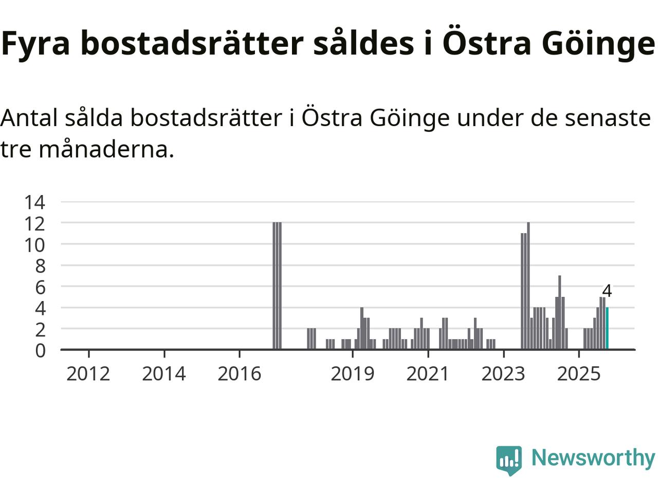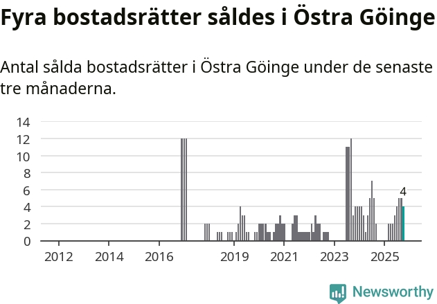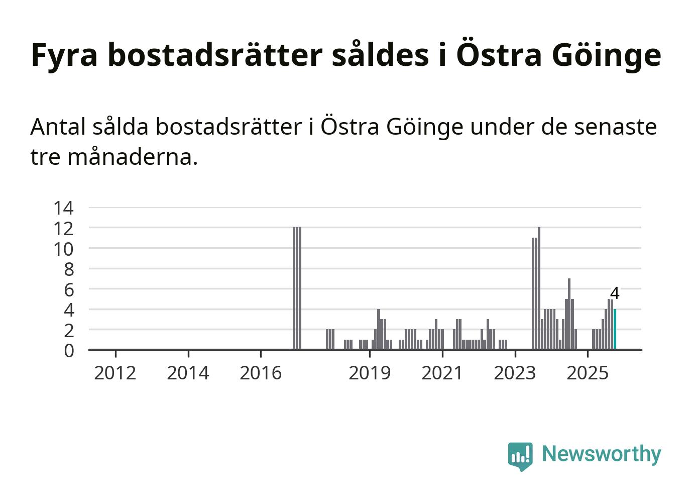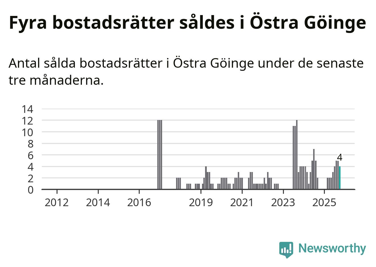 Mellan augusti och oktober gjordes sammanlagt fyra affärer med bostadsrätter i Östra Göinge kommun.