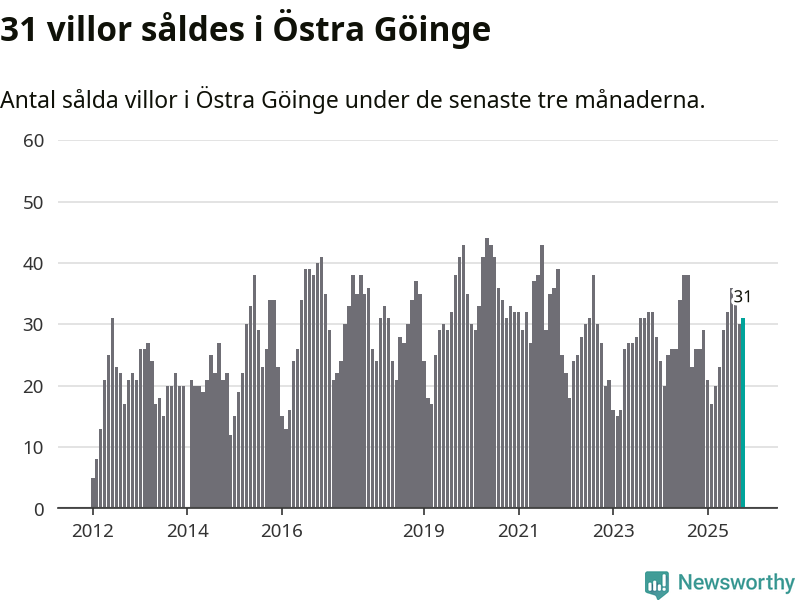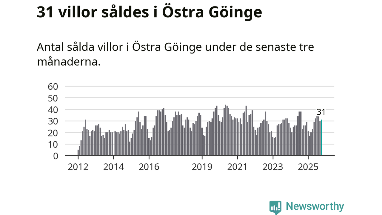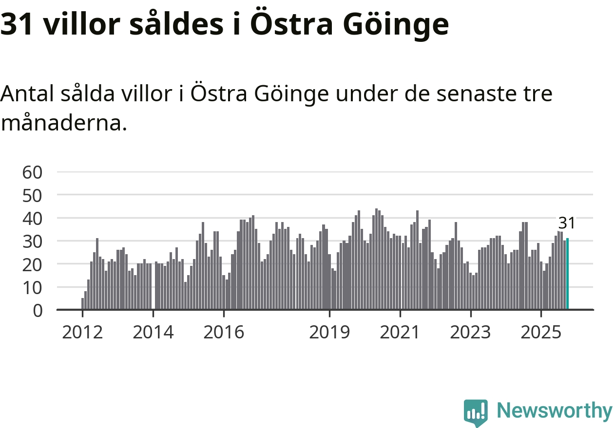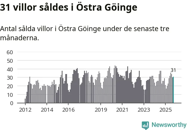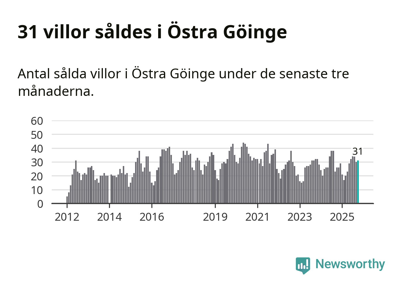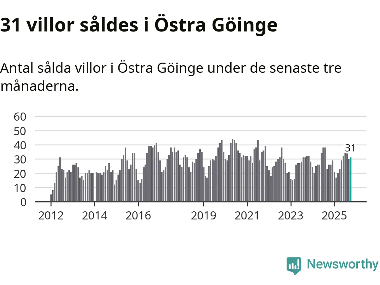 Mellan augusti och oktober gjordes sammanlagt 31 affärer med villor i Östra Göinge kommun. Det kan jämföras med 26 vid motsvarande tid i fjol.