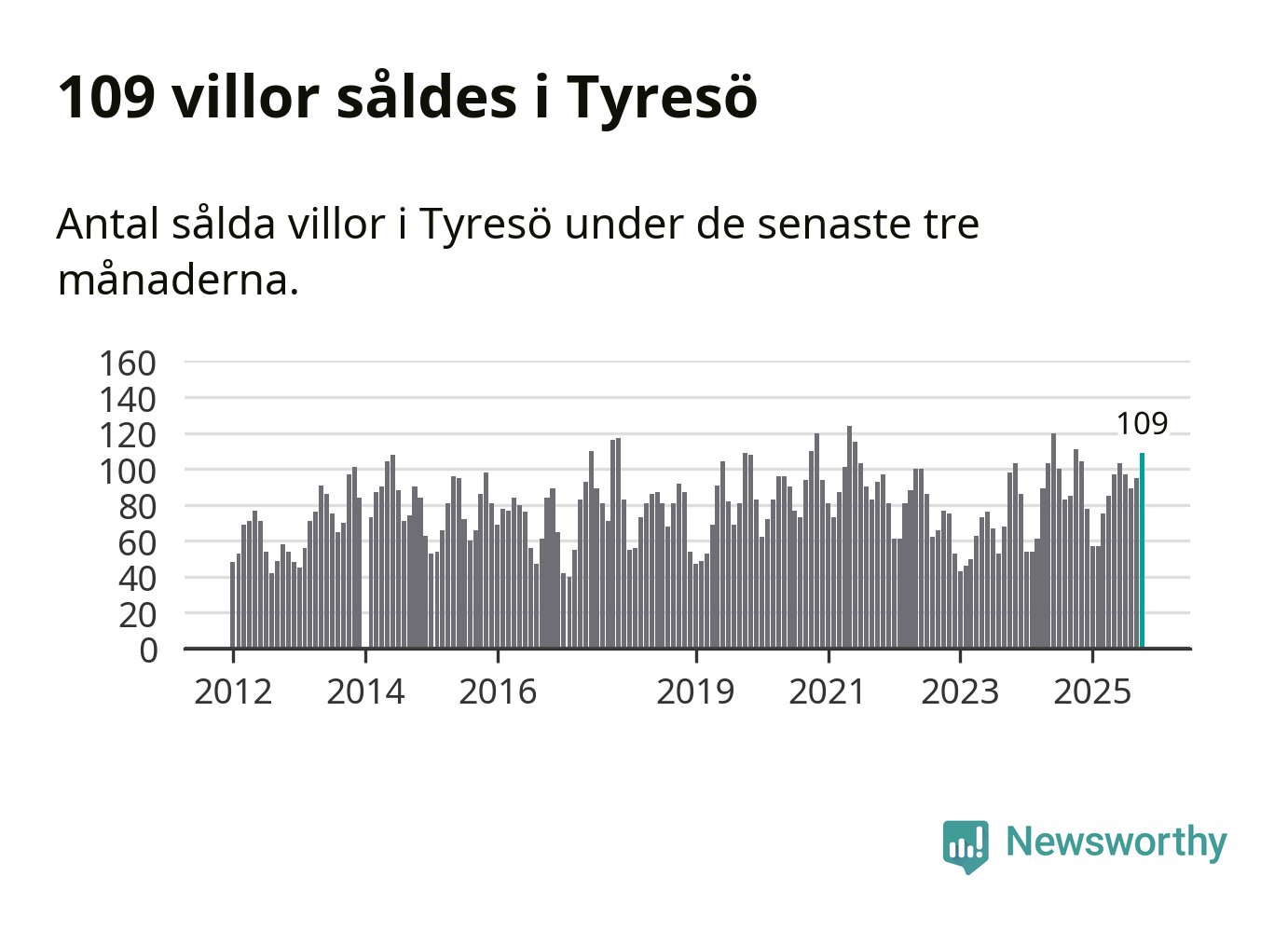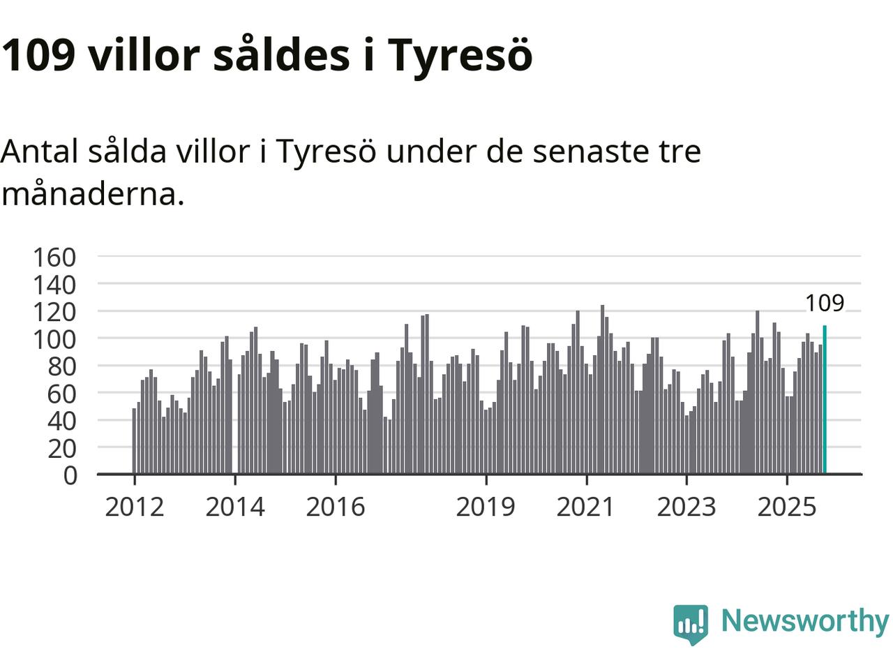 Graf: Antal sålda villor i Tyresö kommun