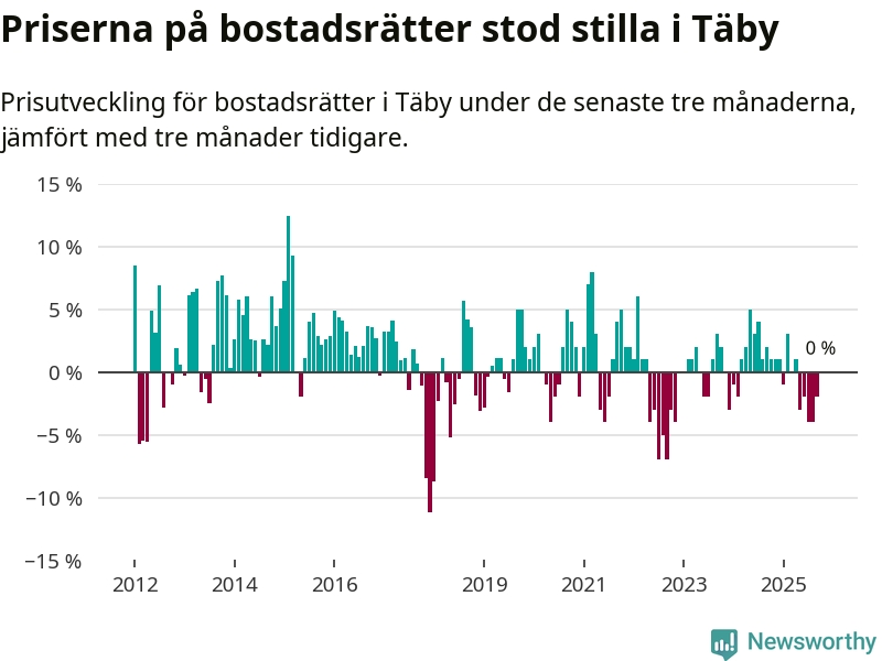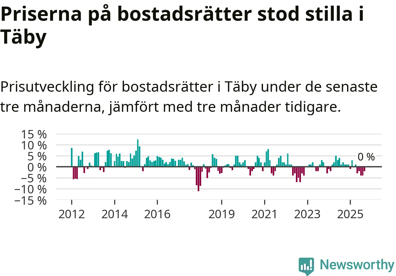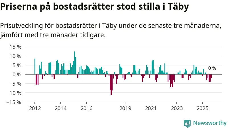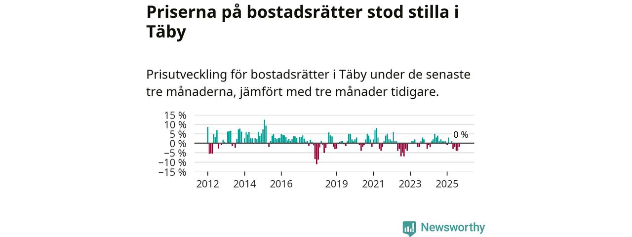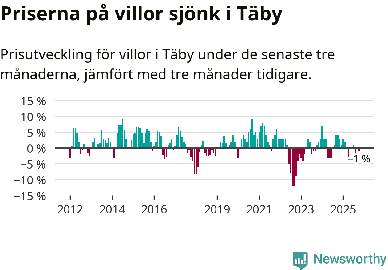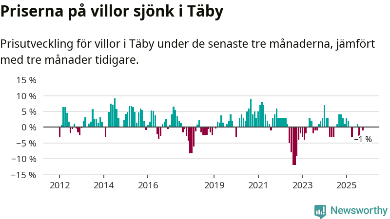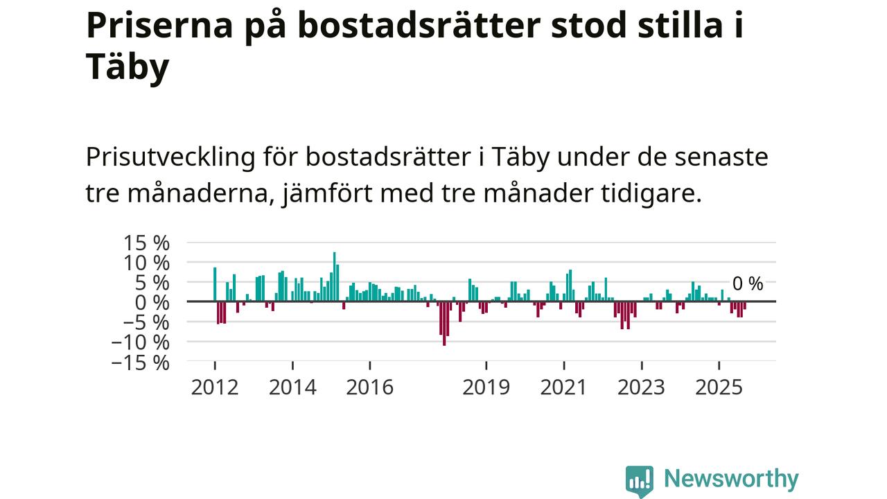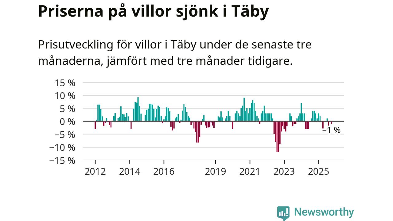| Täby | −1 % ▼ | 192 | 9,0 miljoner |