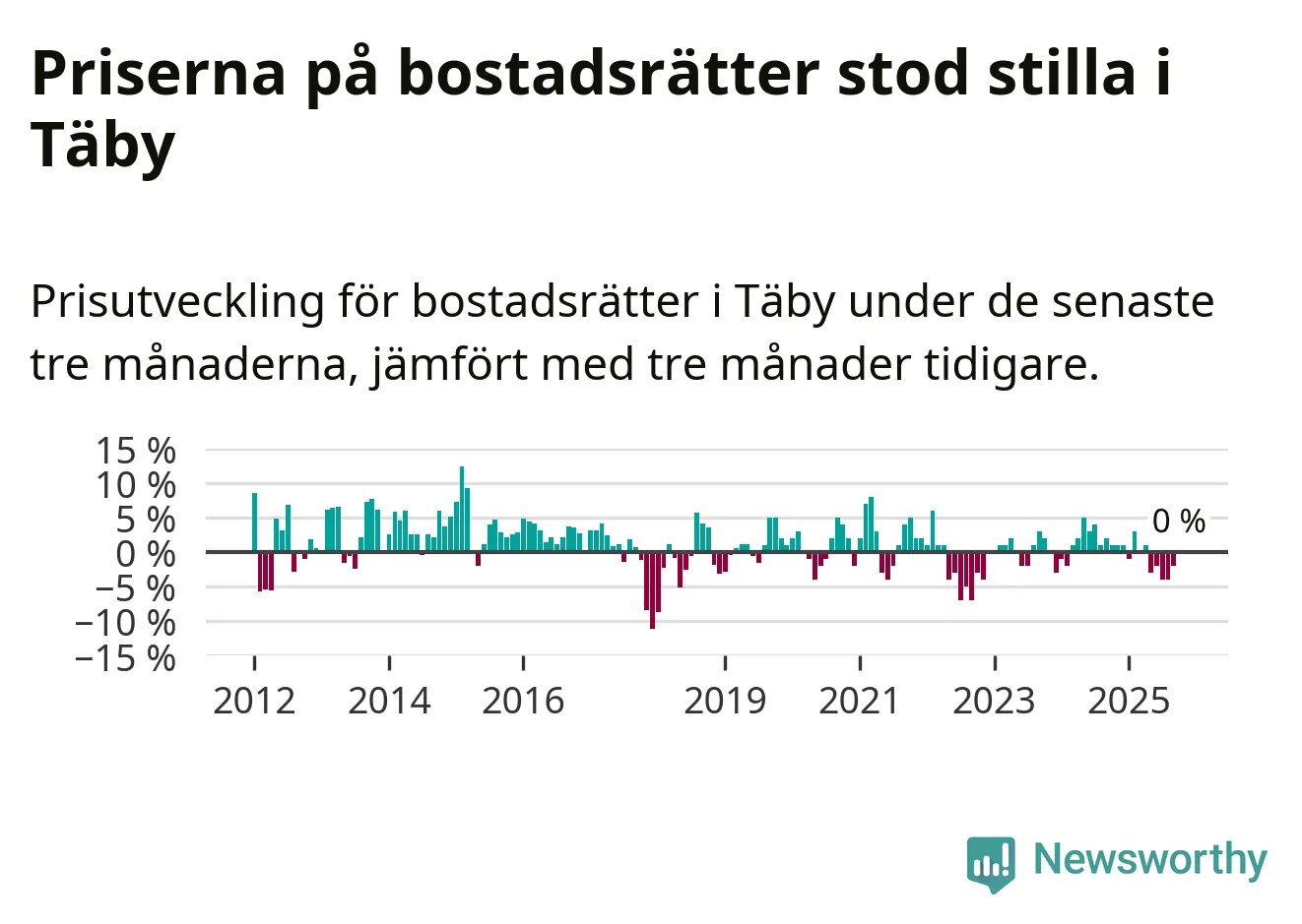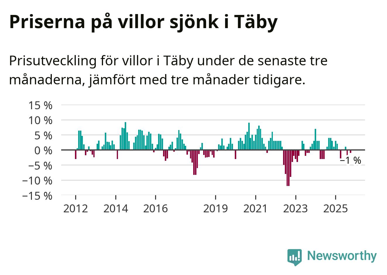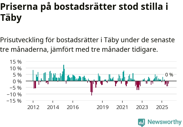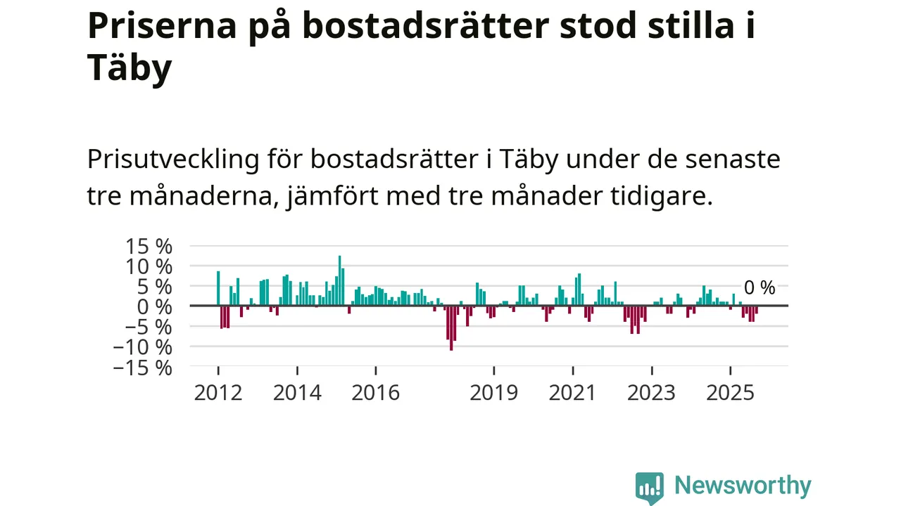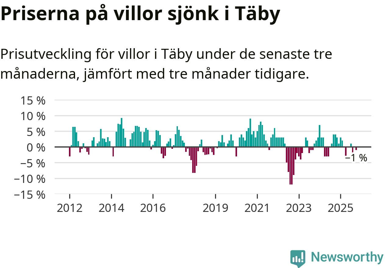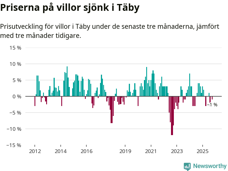 | Täby | −1 % ▼ | 192 | 9,0 miljoner |