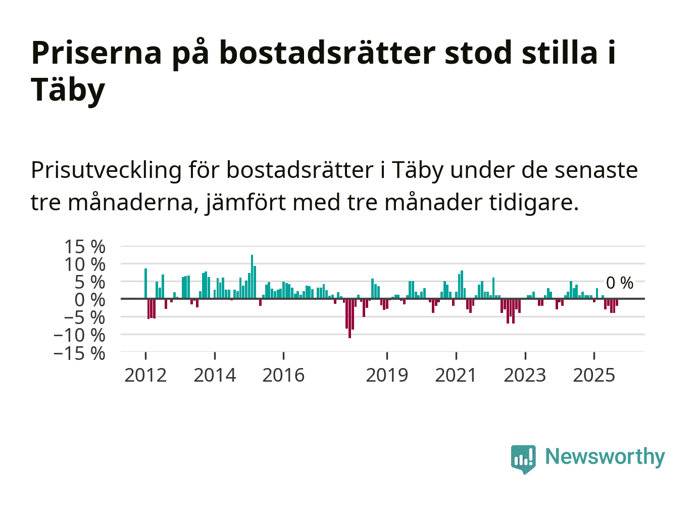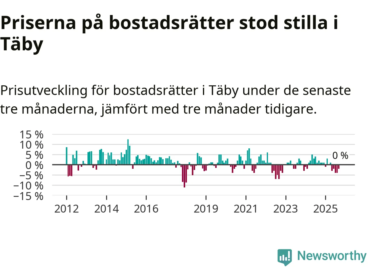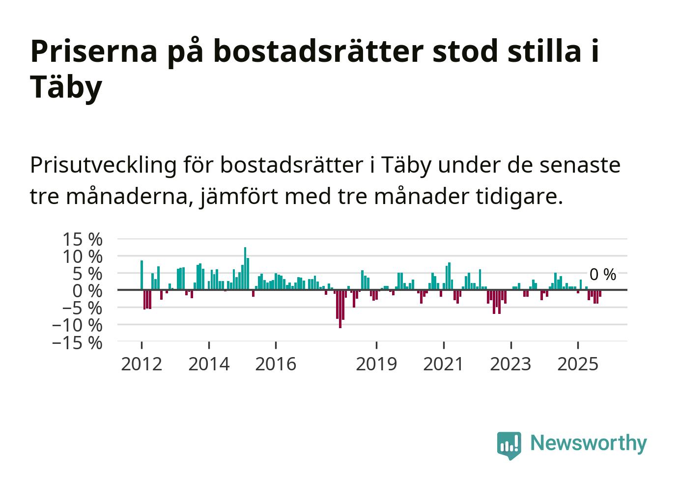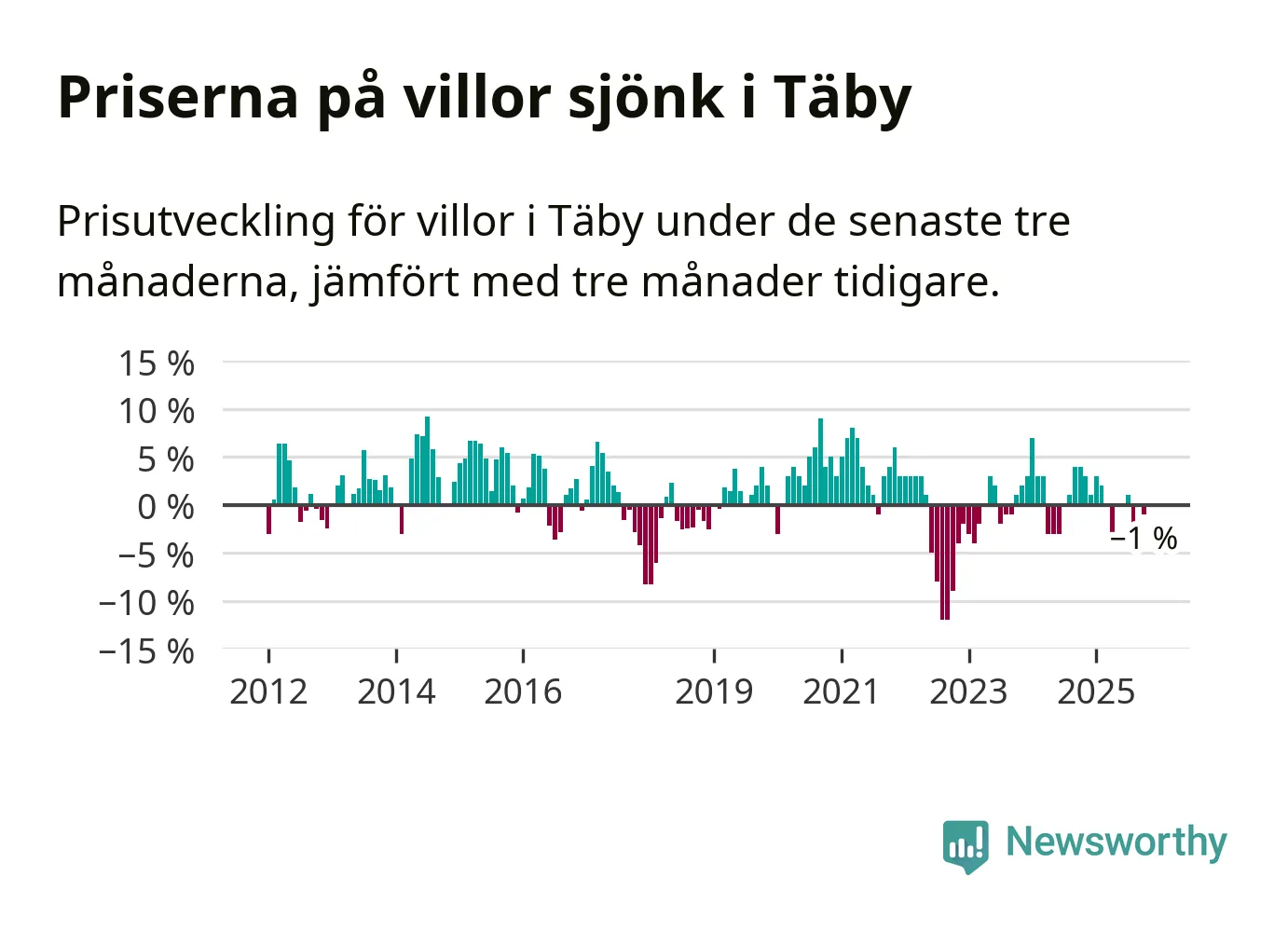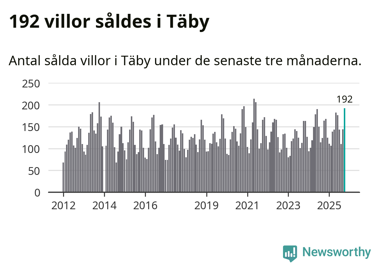 | Täby | −1 % ▼ | 192 | 9,0 miljoner |