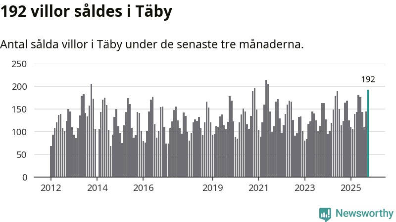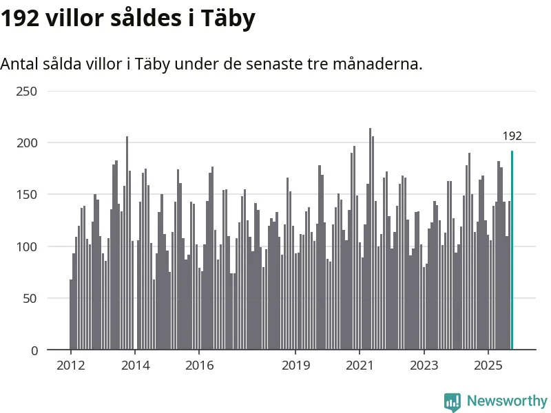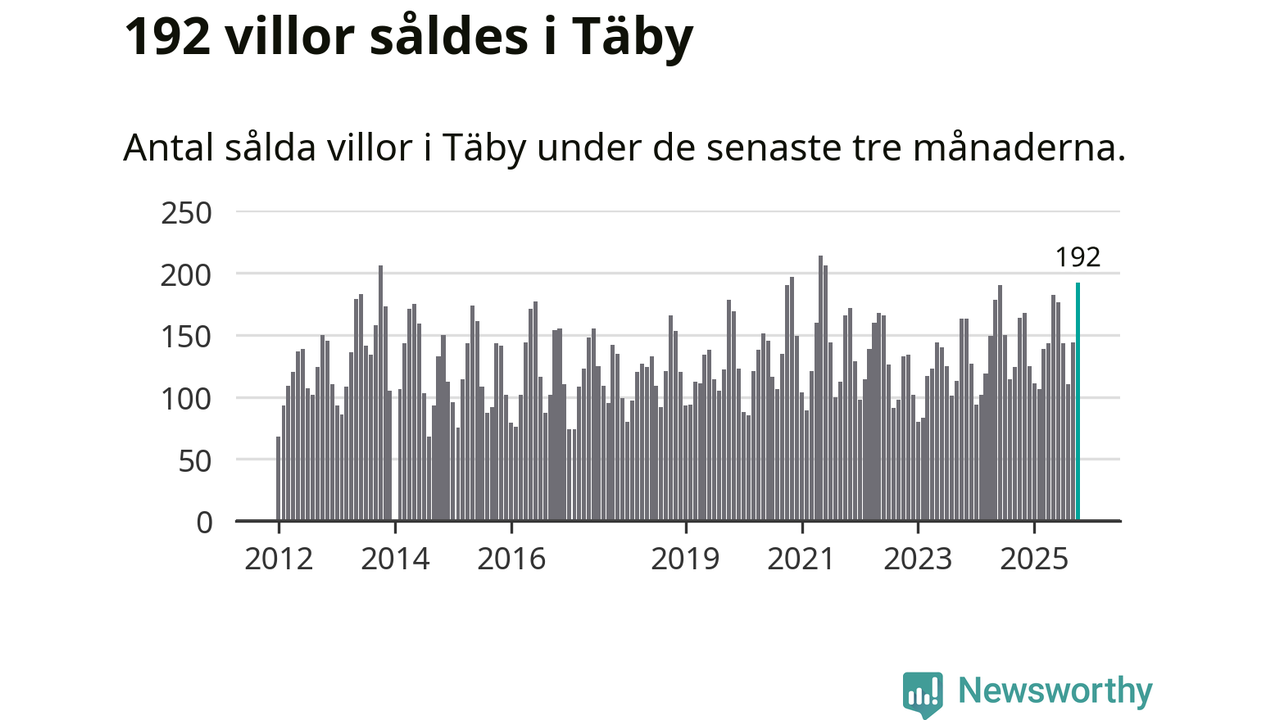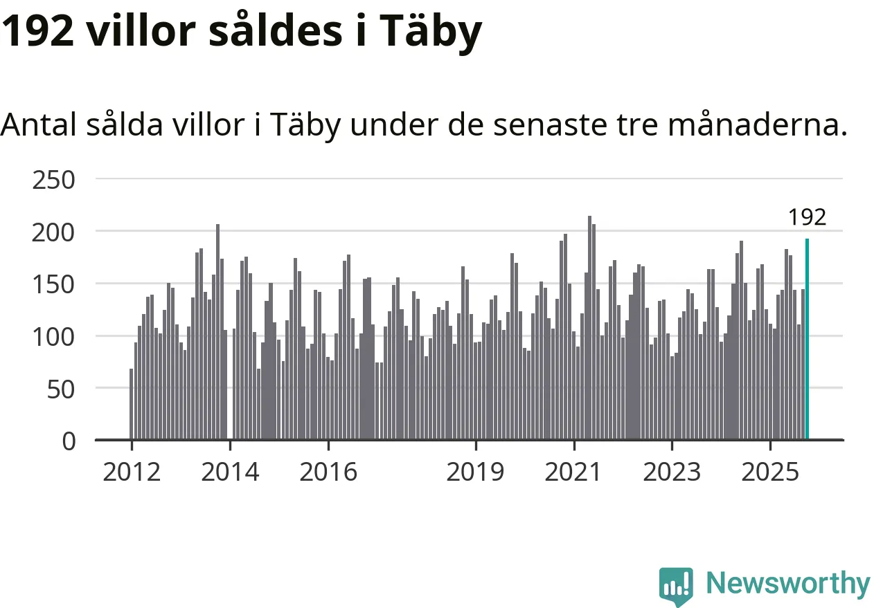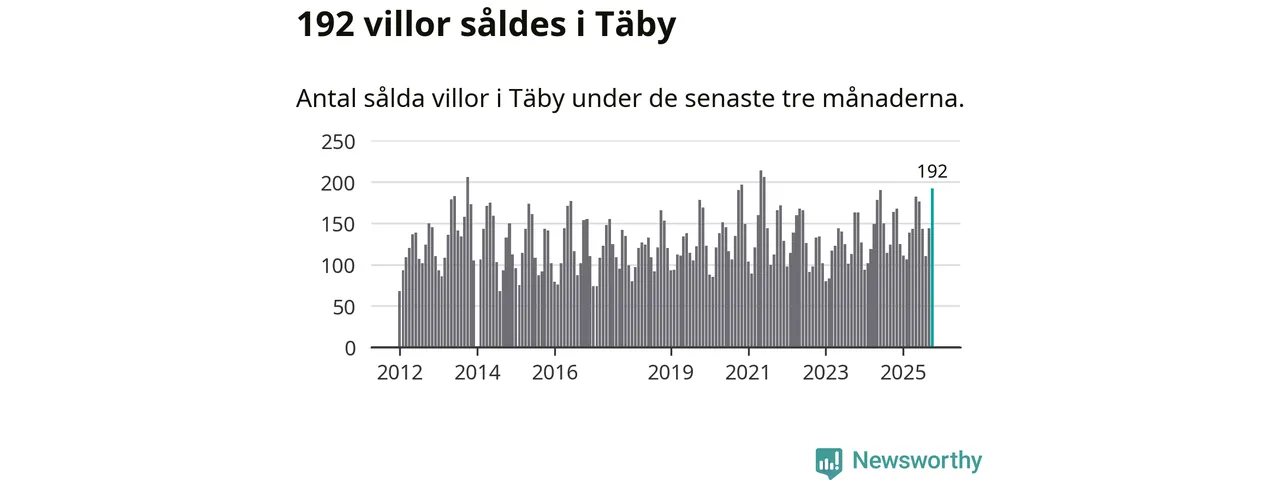 Mellan augusti och oktober såldes 192 villor i Täby kommun. Det är fler än någon tremånadersperiod sedan 2021.