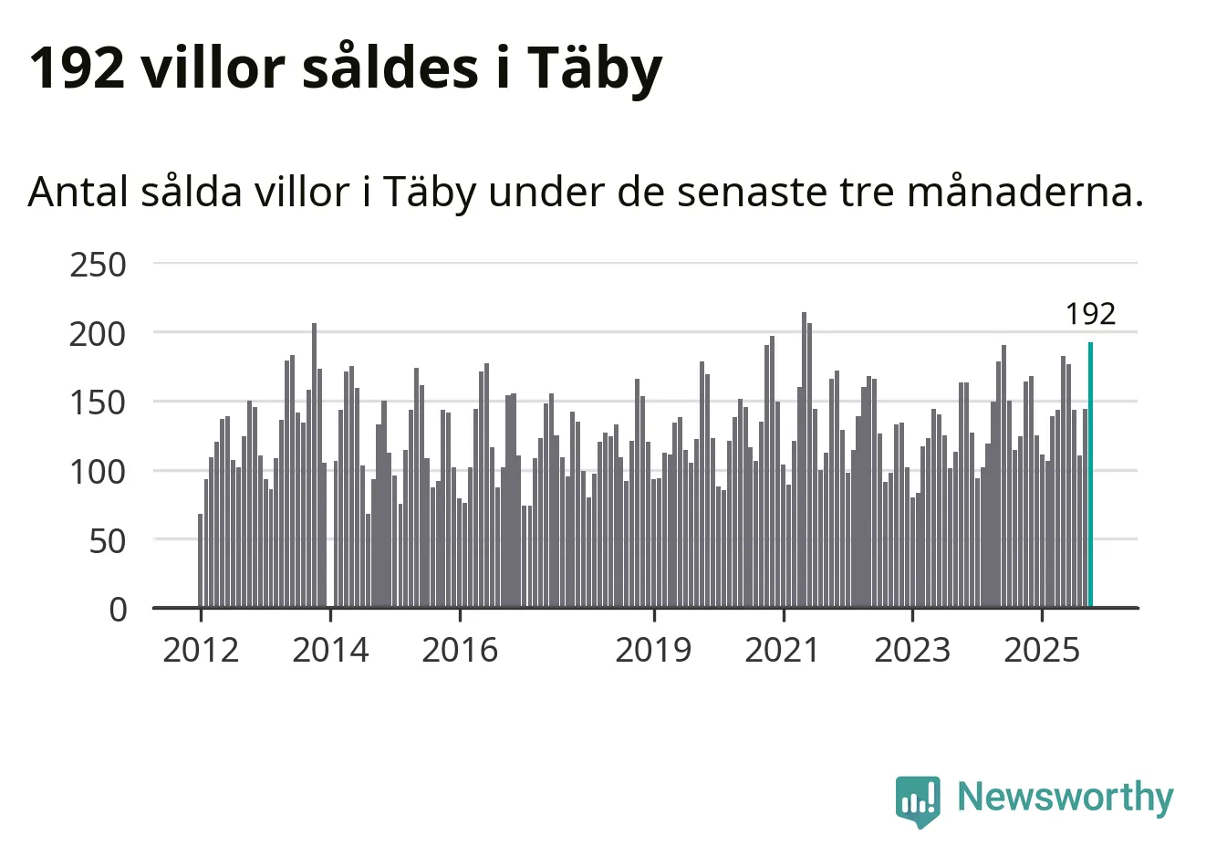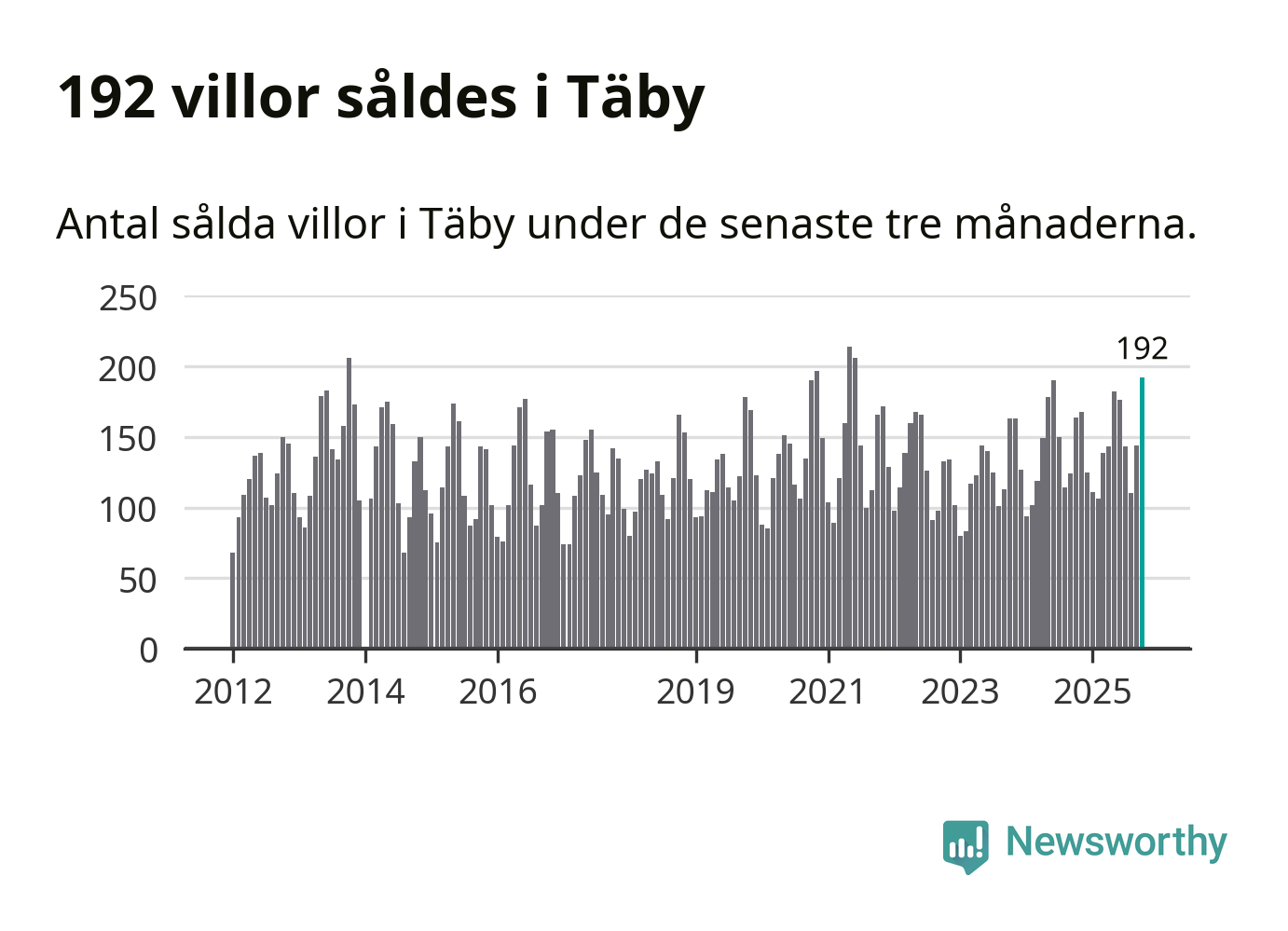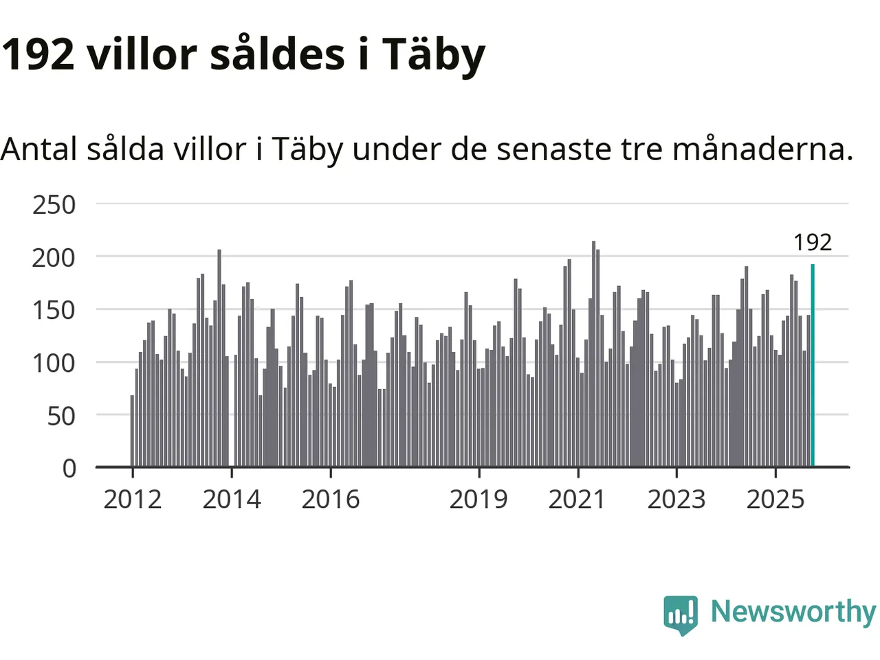 Mellan augusti och oktober såldes 192 villor i Täby kommun. Det är fler än någon tremånadersperiod sedan 2021.