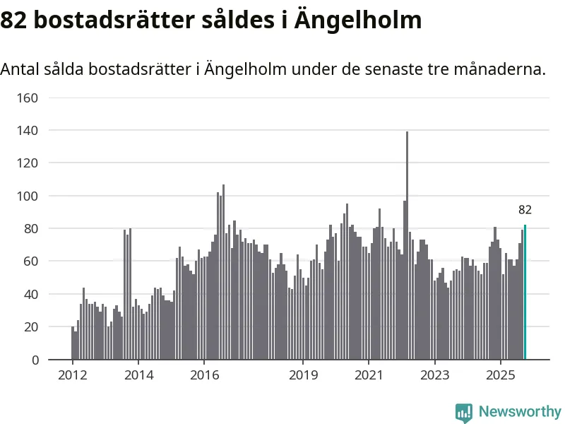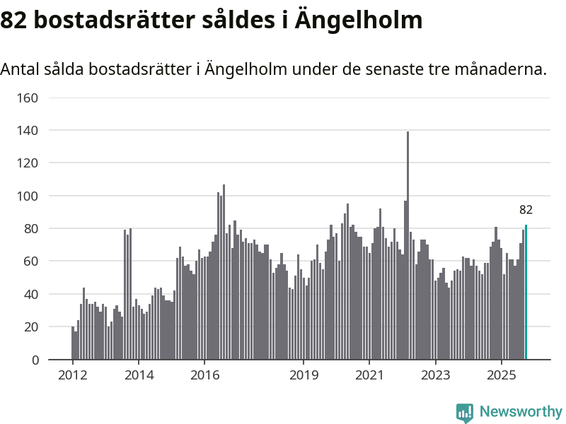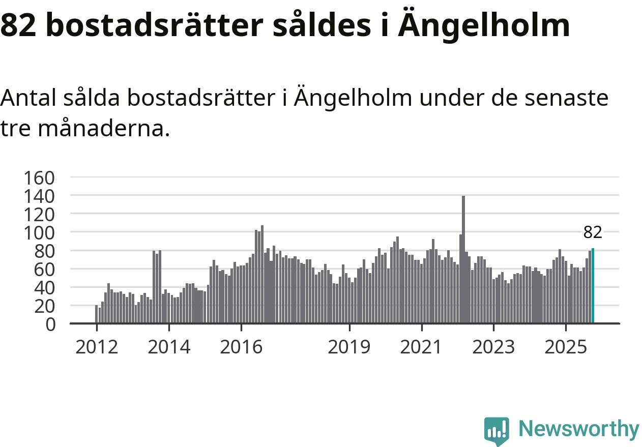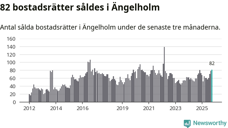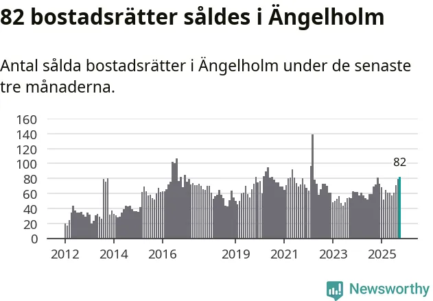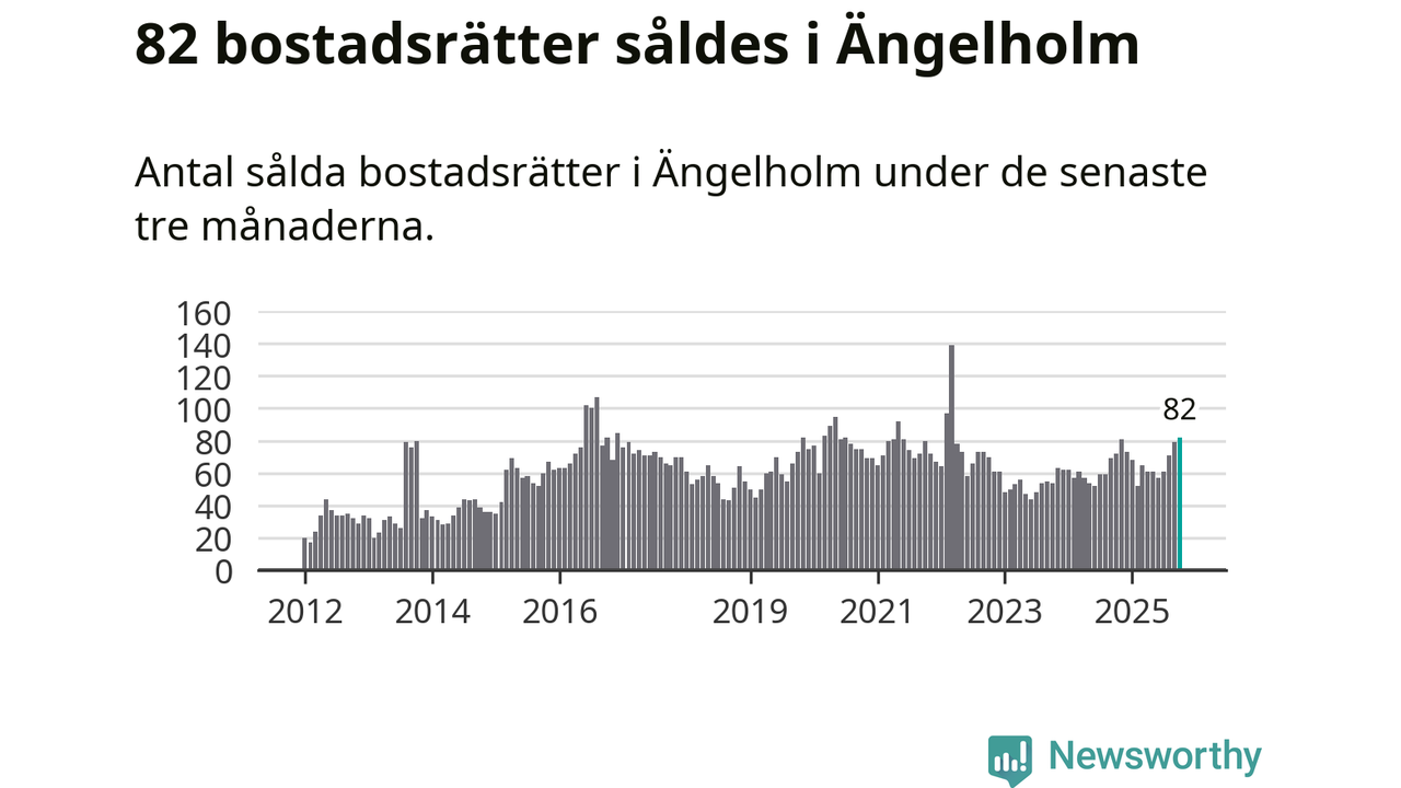 Mellan augusti och oktober såldes 82 bostadsrätter i Ängelholms kommun. Det är fler än någon tremånadersperiod sedan 2022.