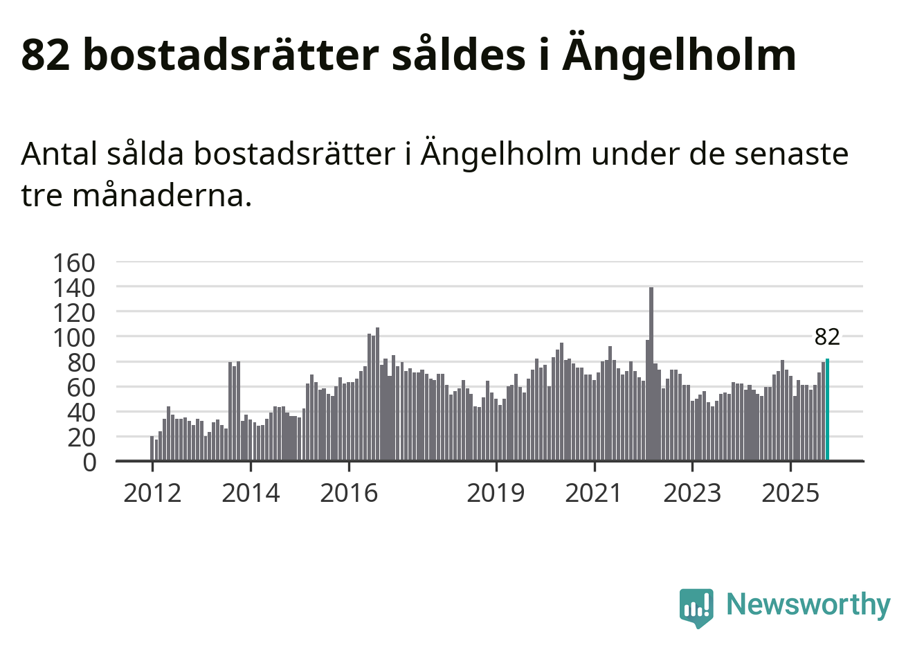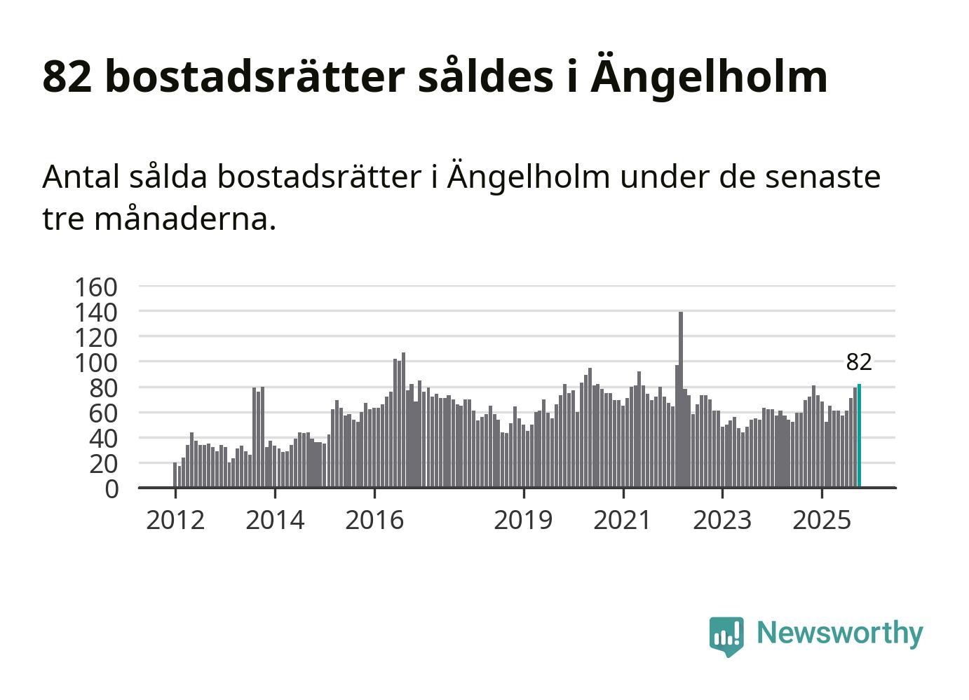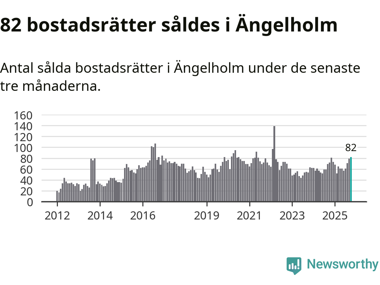 Mellan augusti och oktober såldes 82 bostadsrätter i Ängelholms kommun. Det är fler än någon tremånadersperiod sedan 2022.