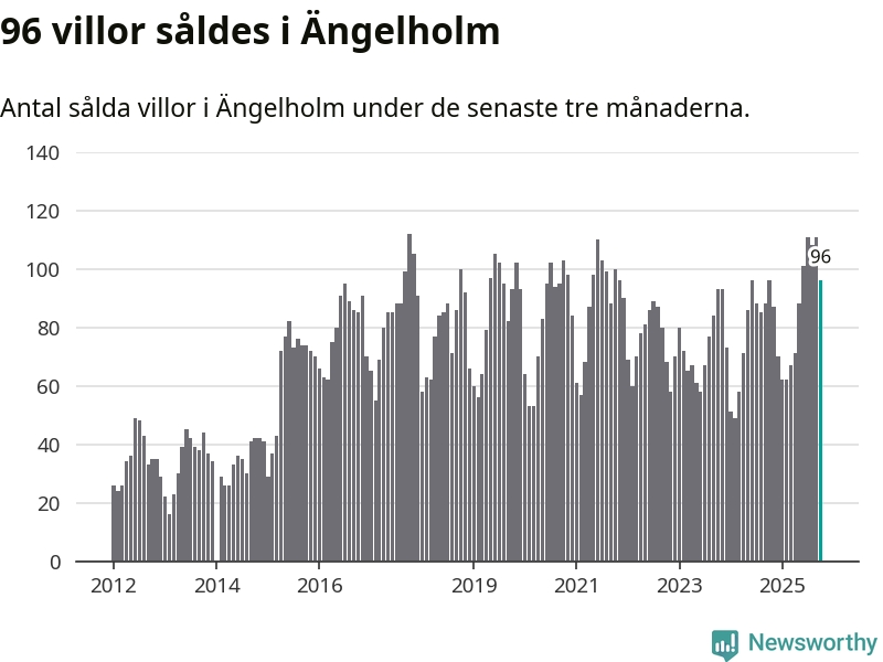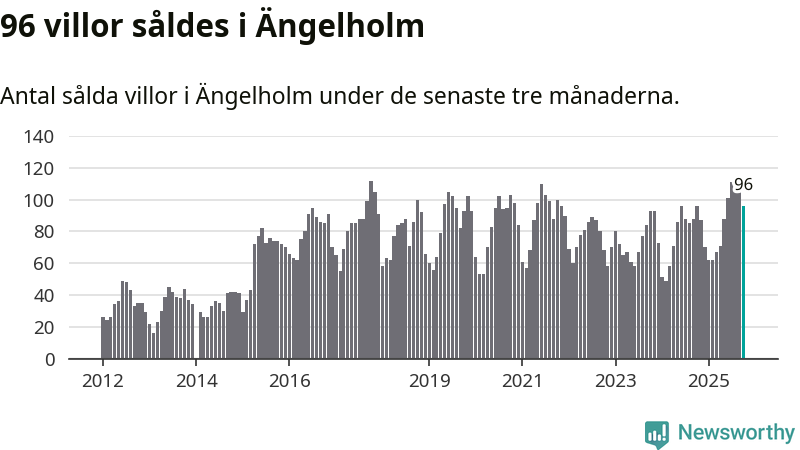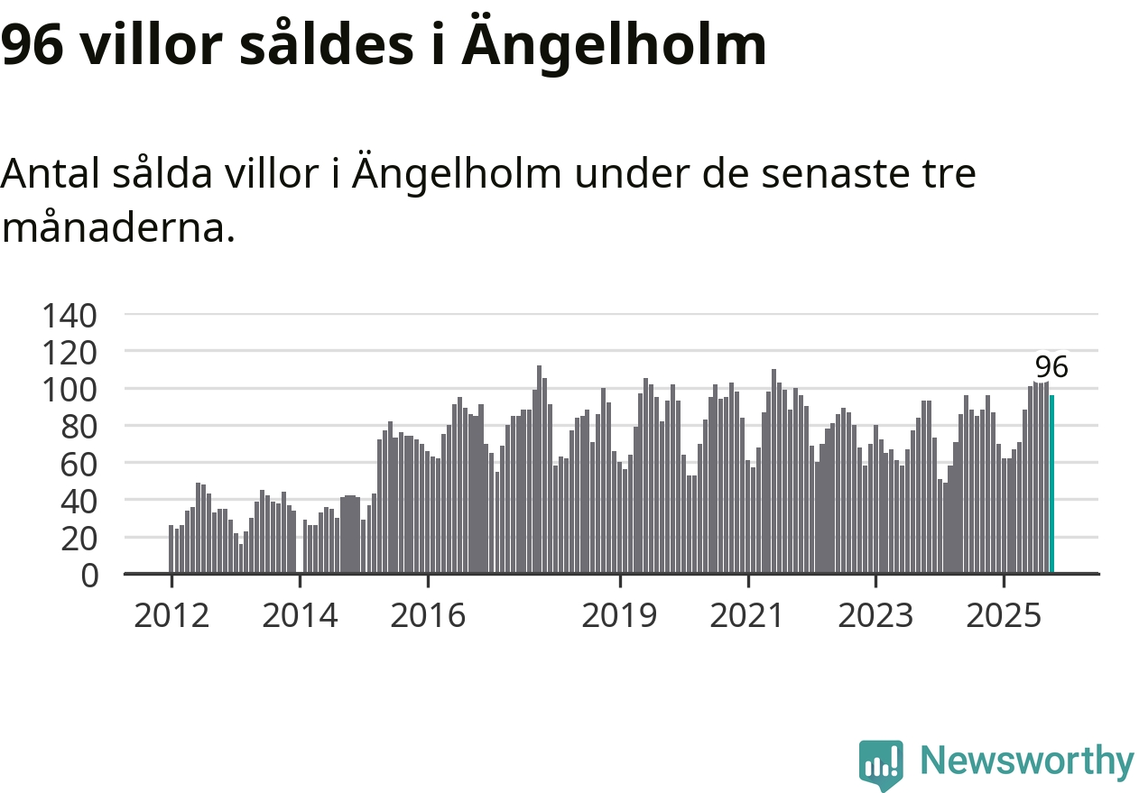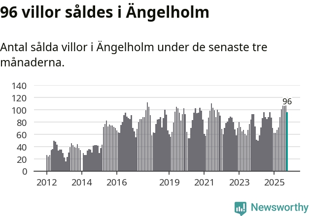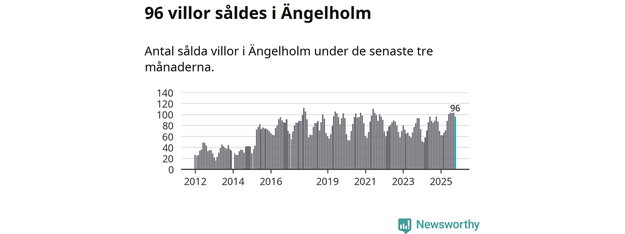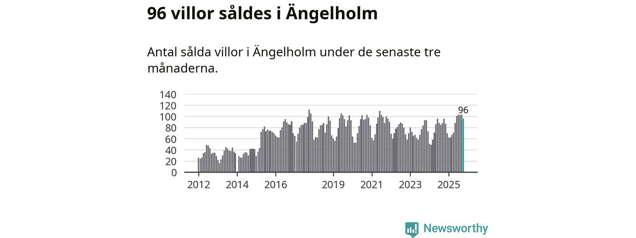 Sammanlagt såldes 96 villor i Ängelholms kommun mellan augusti och oktober till ett genomsnittligt pris på 4,0 miljoner kronor. I fjol gjordes 96 affärer vid den här tiden på året.