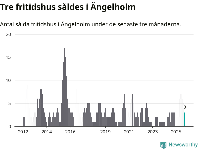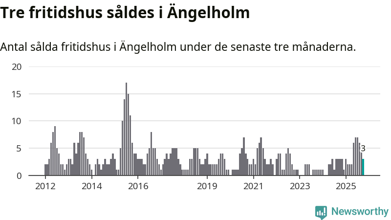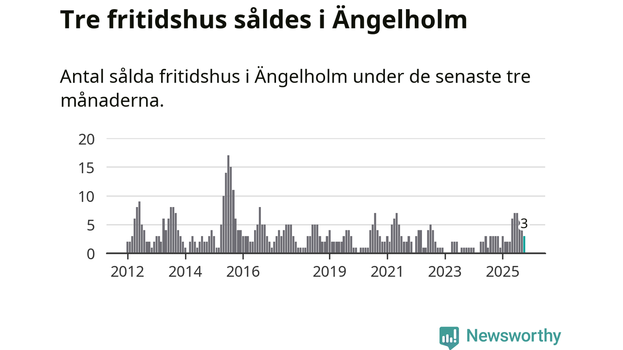 Mellan augusti och oktober gjordes sammanlagt tre affärer med fritidshus i Ängelholms kommun. Det är lika många affärer som vid motsvarande tid i fjol.