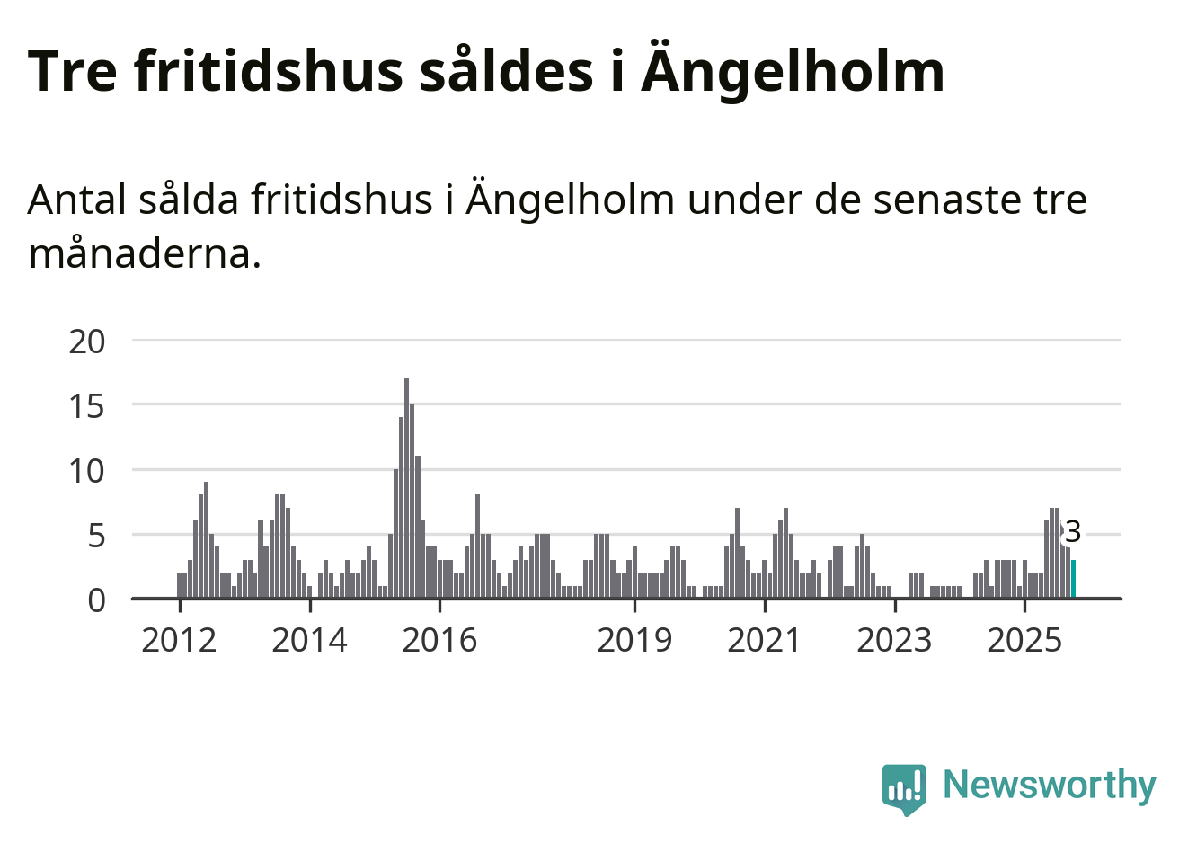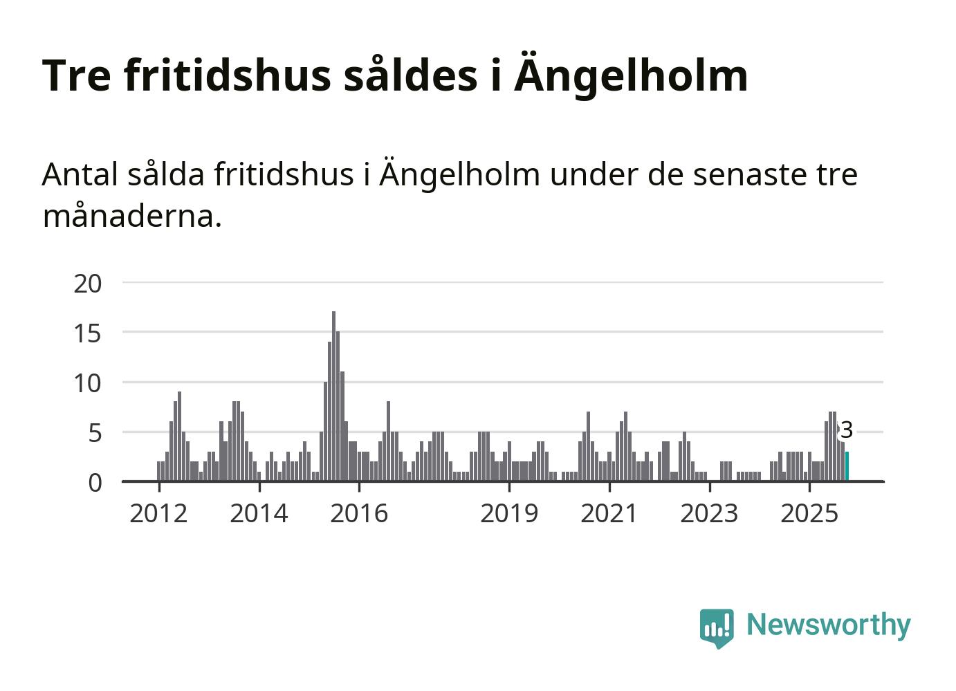 Graf: Antal sålda fritidshus i Ängelholms kommun