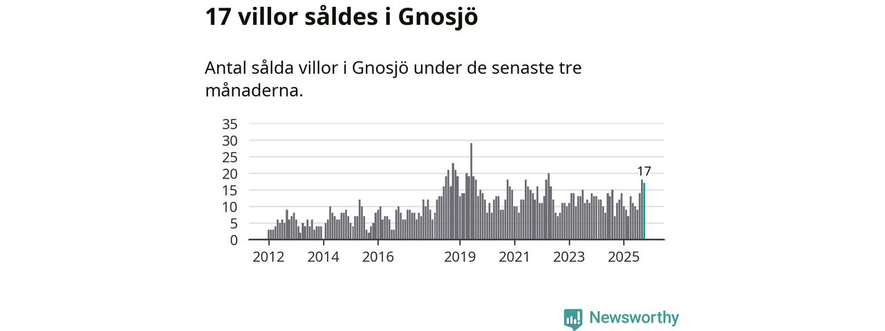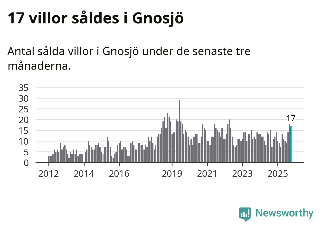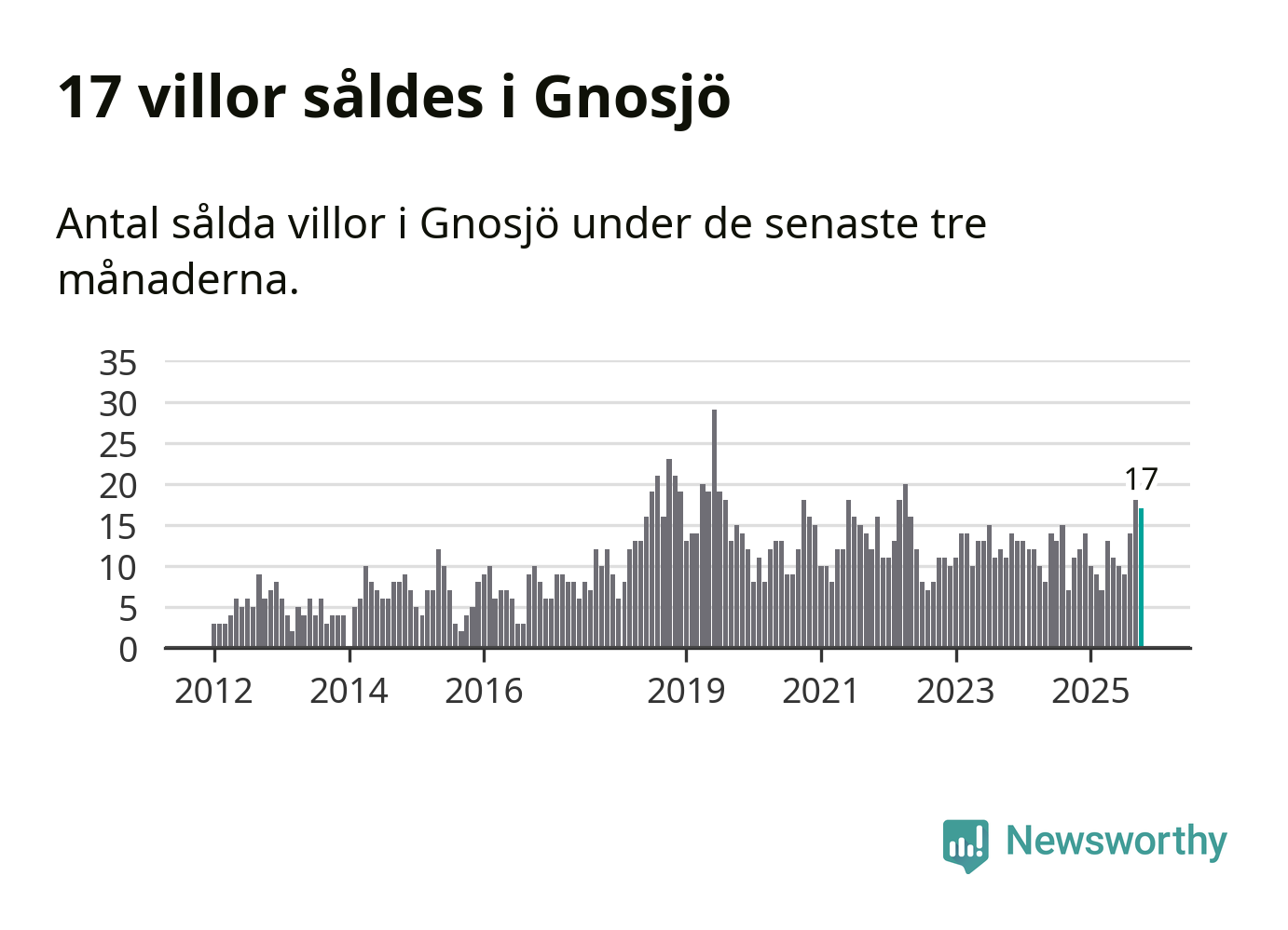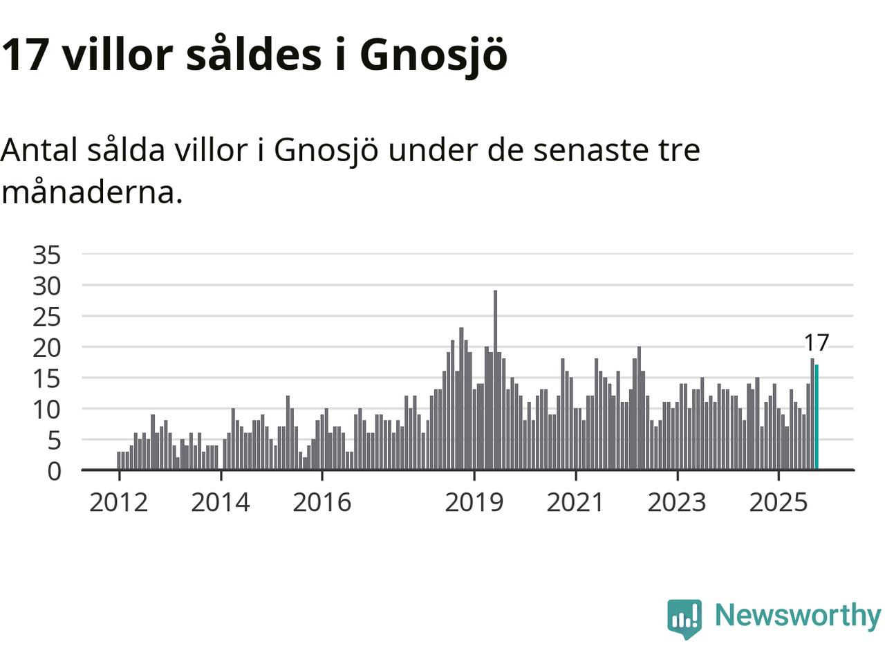 Mellan augusti och oktober gjordes sammanlagt 17 affärer med villor i Gnosjö kommun. Det kan jämföras med elva vid motsvarande tid i fjol.