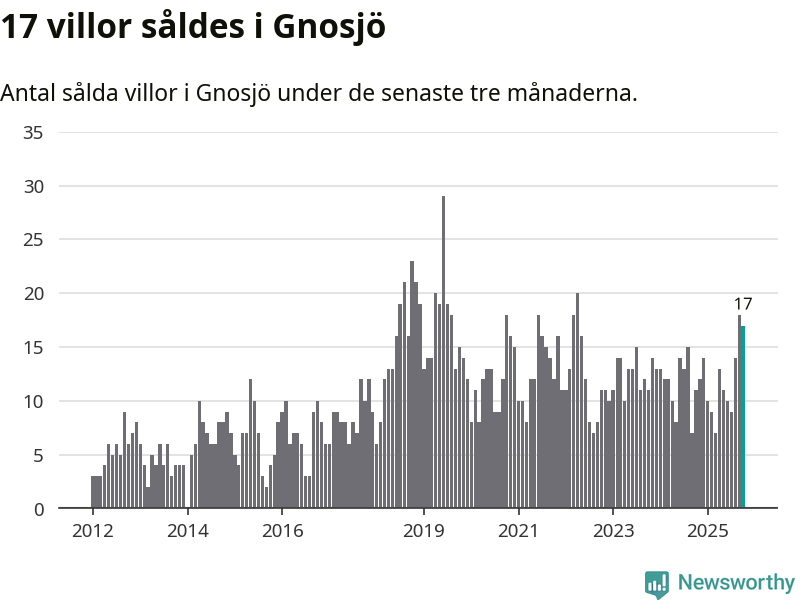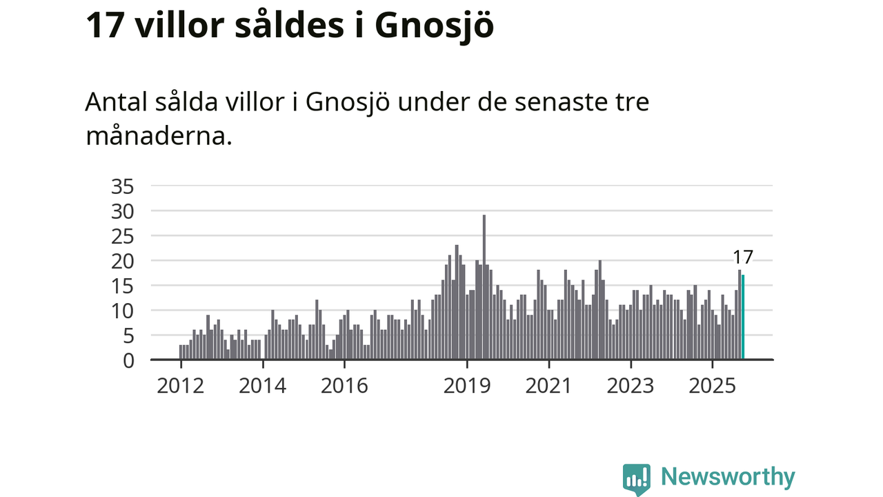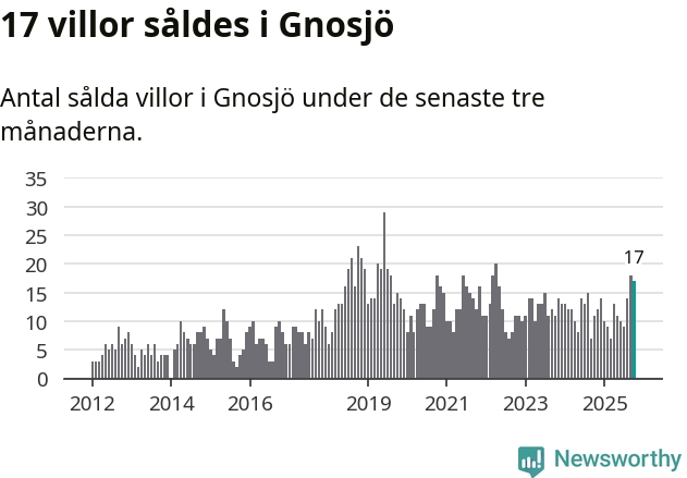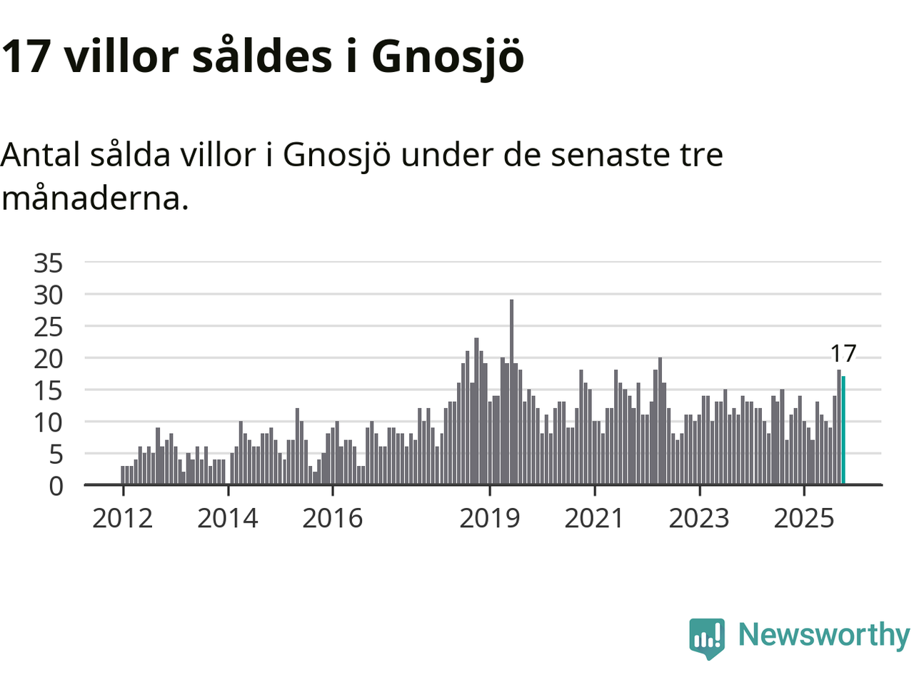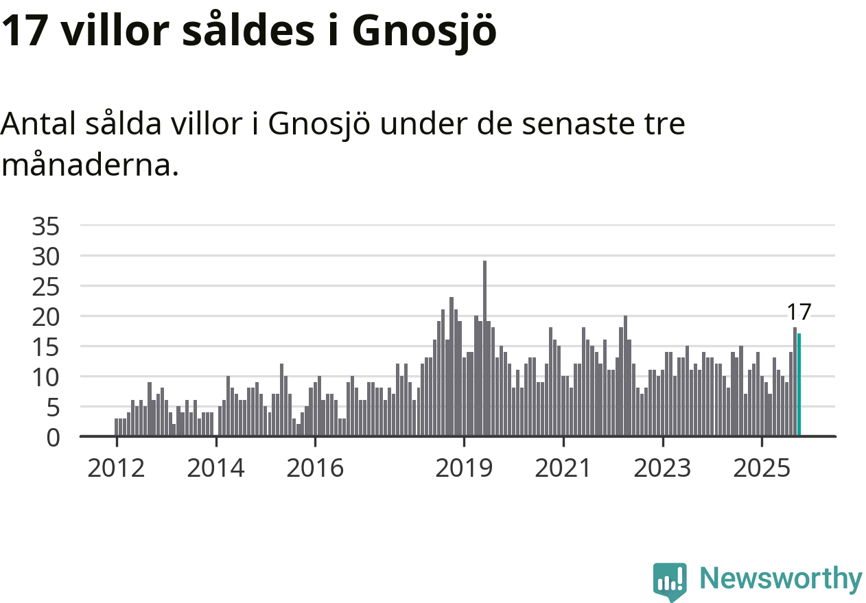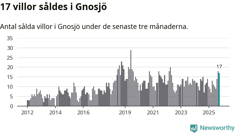 Mellan augusti och oktober gjordes sammanlagt 17 affärer med villor i Gnosjö kommun. Det kan jämföras med elva vid motsvarande tid i fjol.