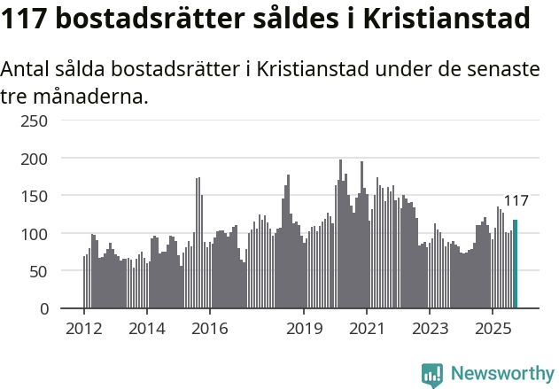 Graf: Antal sålda bostadsrätter i Kristianstads kommun