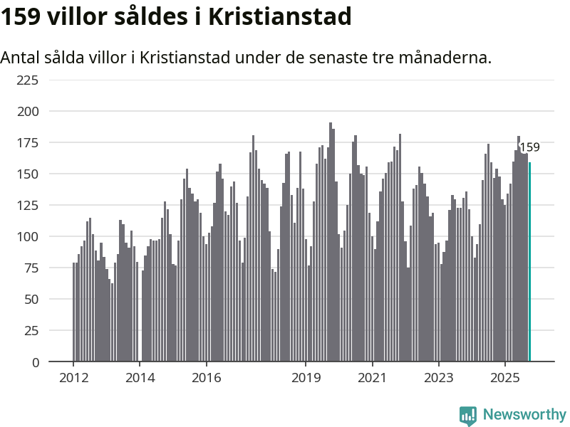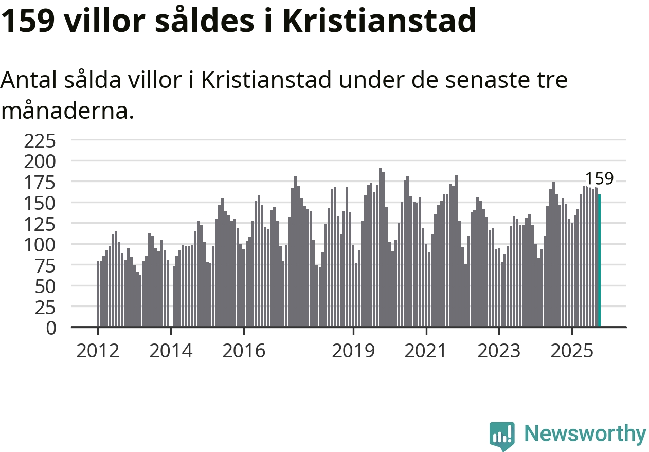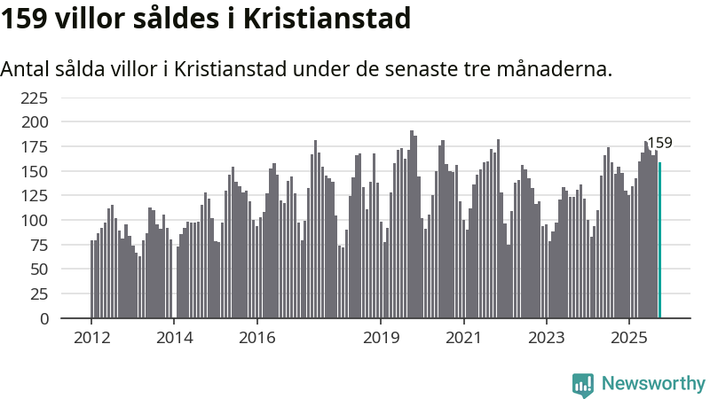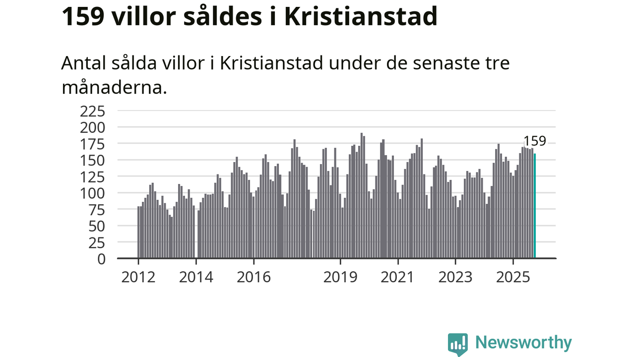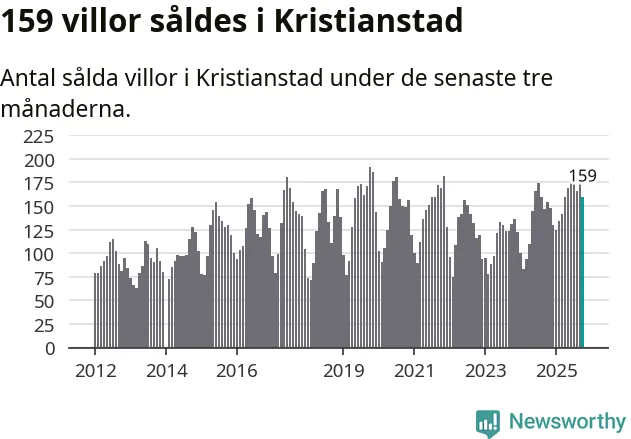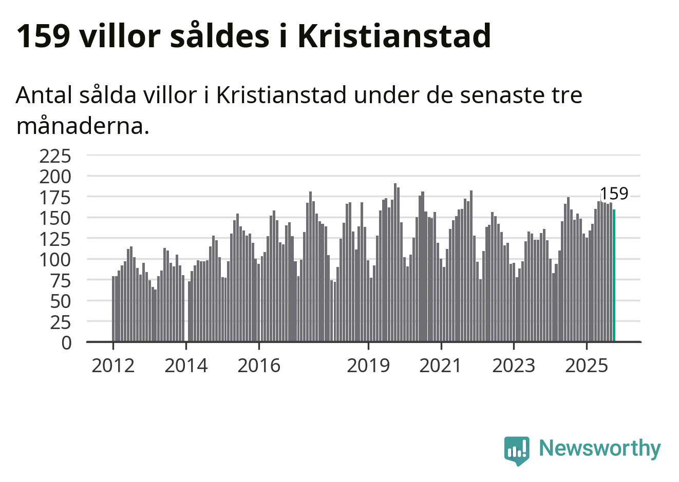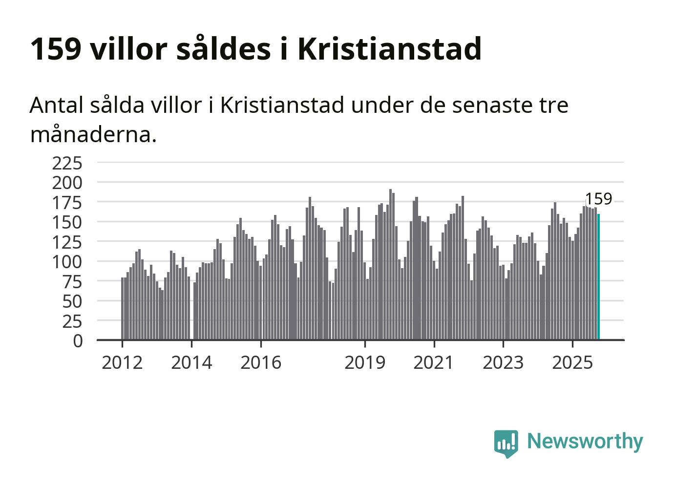 Sammanlagt såldes 159 villor i Kristianstads kommun mellan augusti och oktober till ett genomsnittligt pris på 3,0 miljoner kronor. I fjol gjordes 154 affärer vid den här tiden på året.