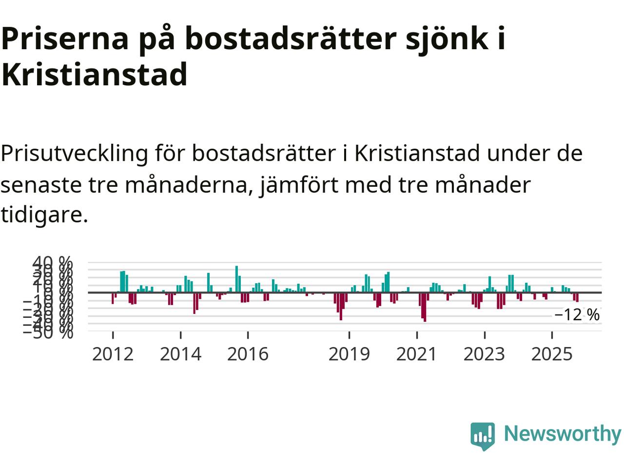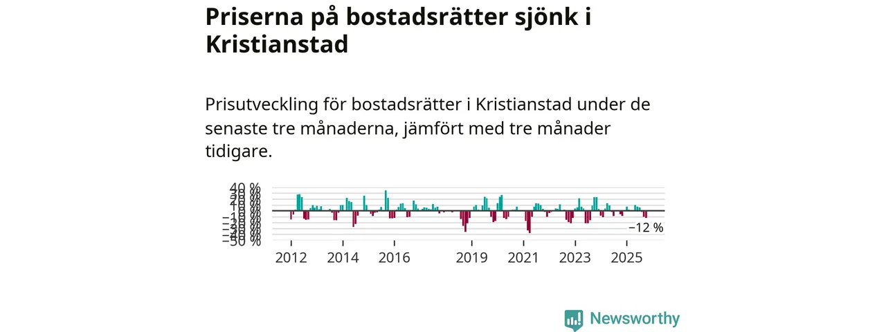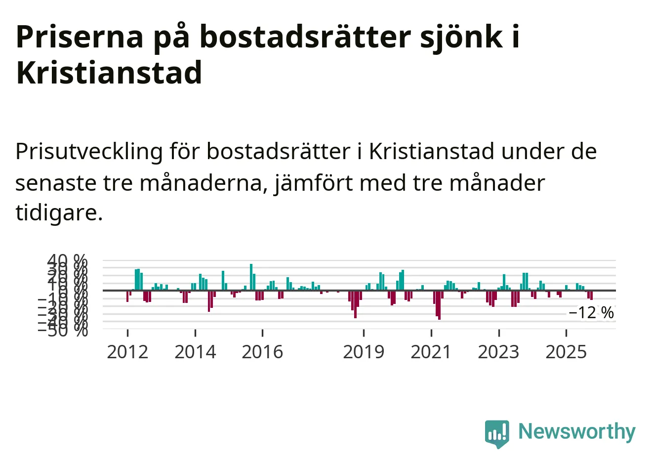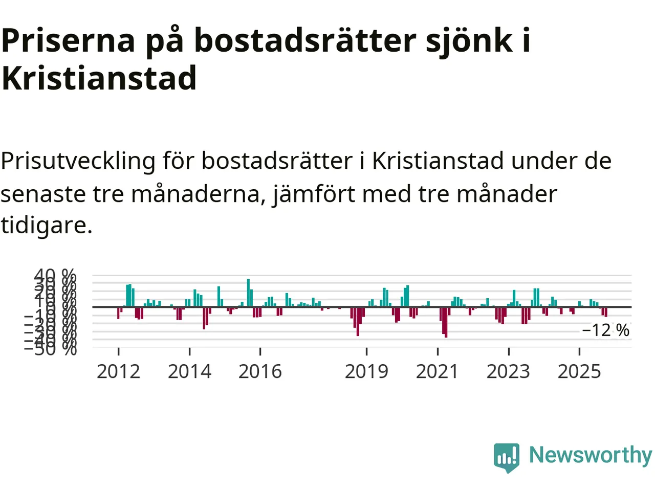 Priserna på bostadsrätter har gått ner i Kristianstads kommun. Medelpriset på försäljningarna under de senaste tre månaderna visar på en nedgång med 12 procent.