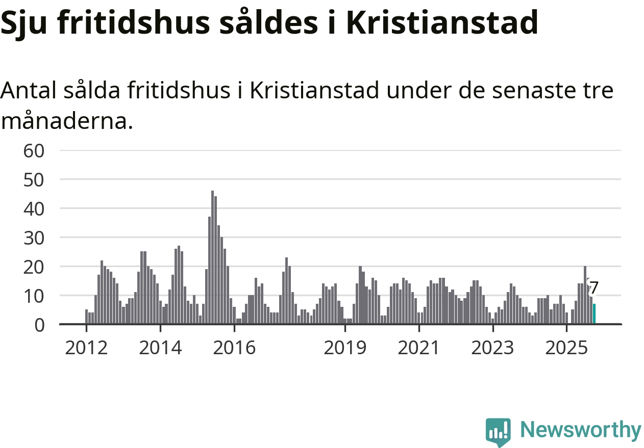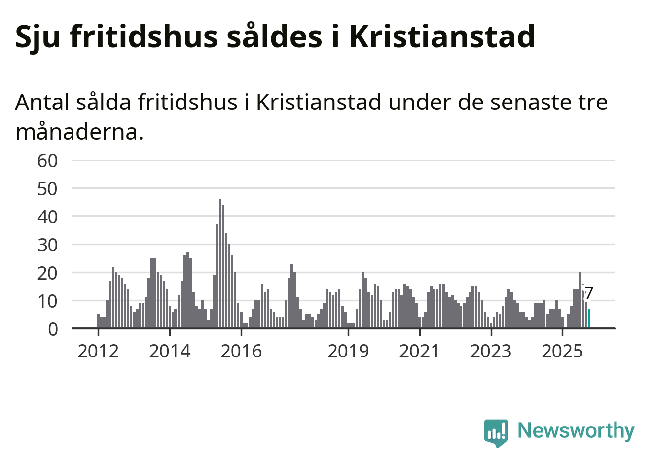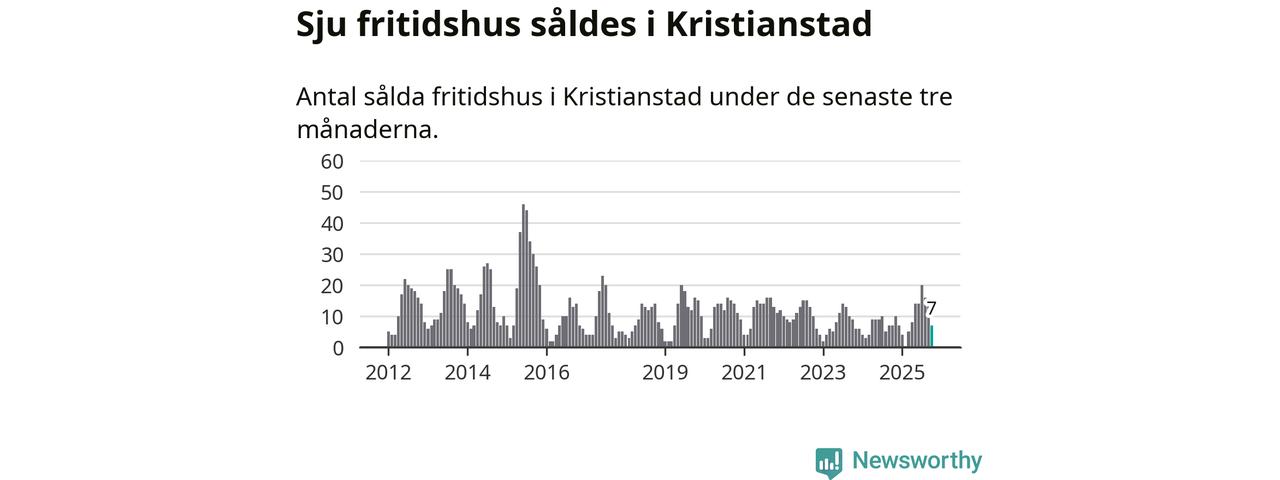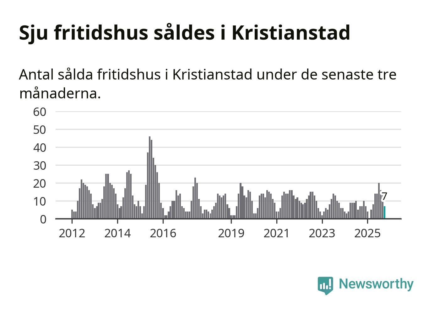 Mellan augusti och oktober gjordes sammanlagt sju affärer med fritidshus i Kristianstads kommun. Det är lika många affärer som vid motsvarande tid i fjol.