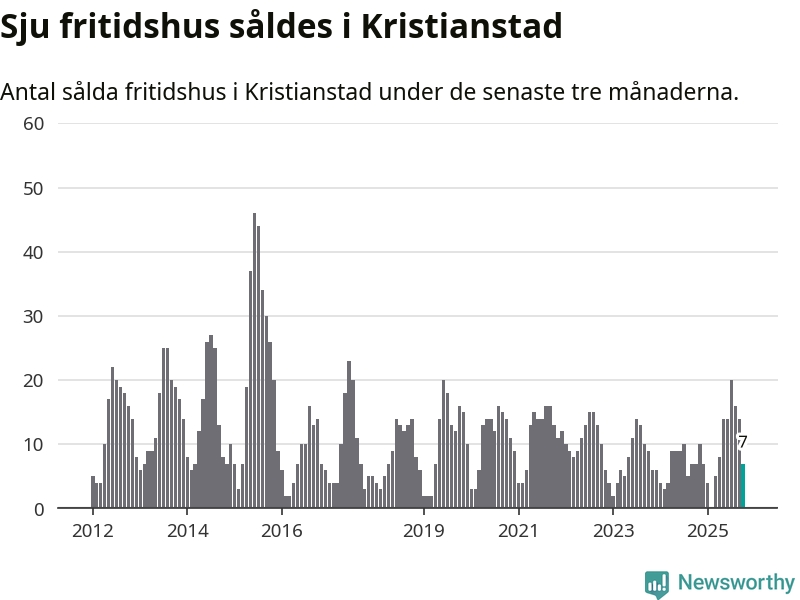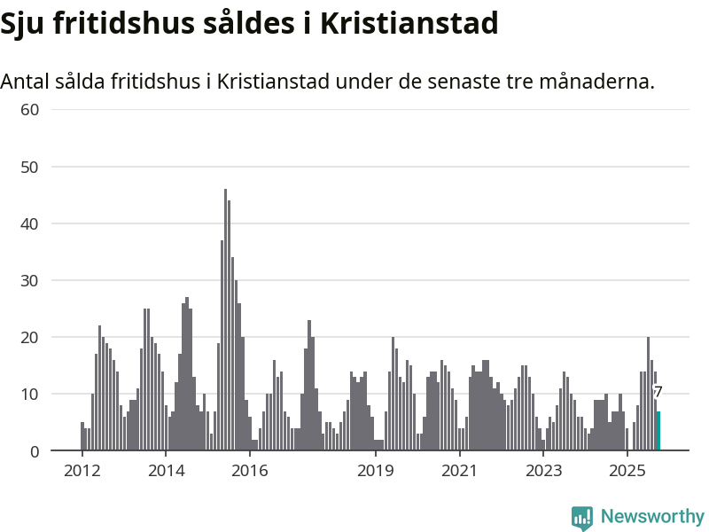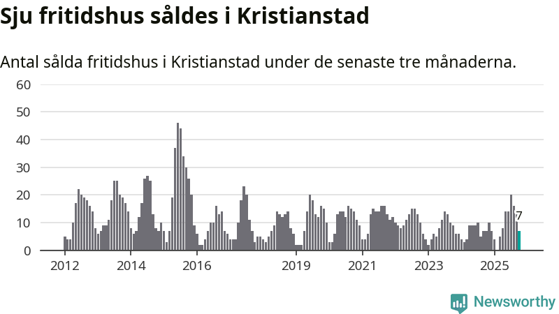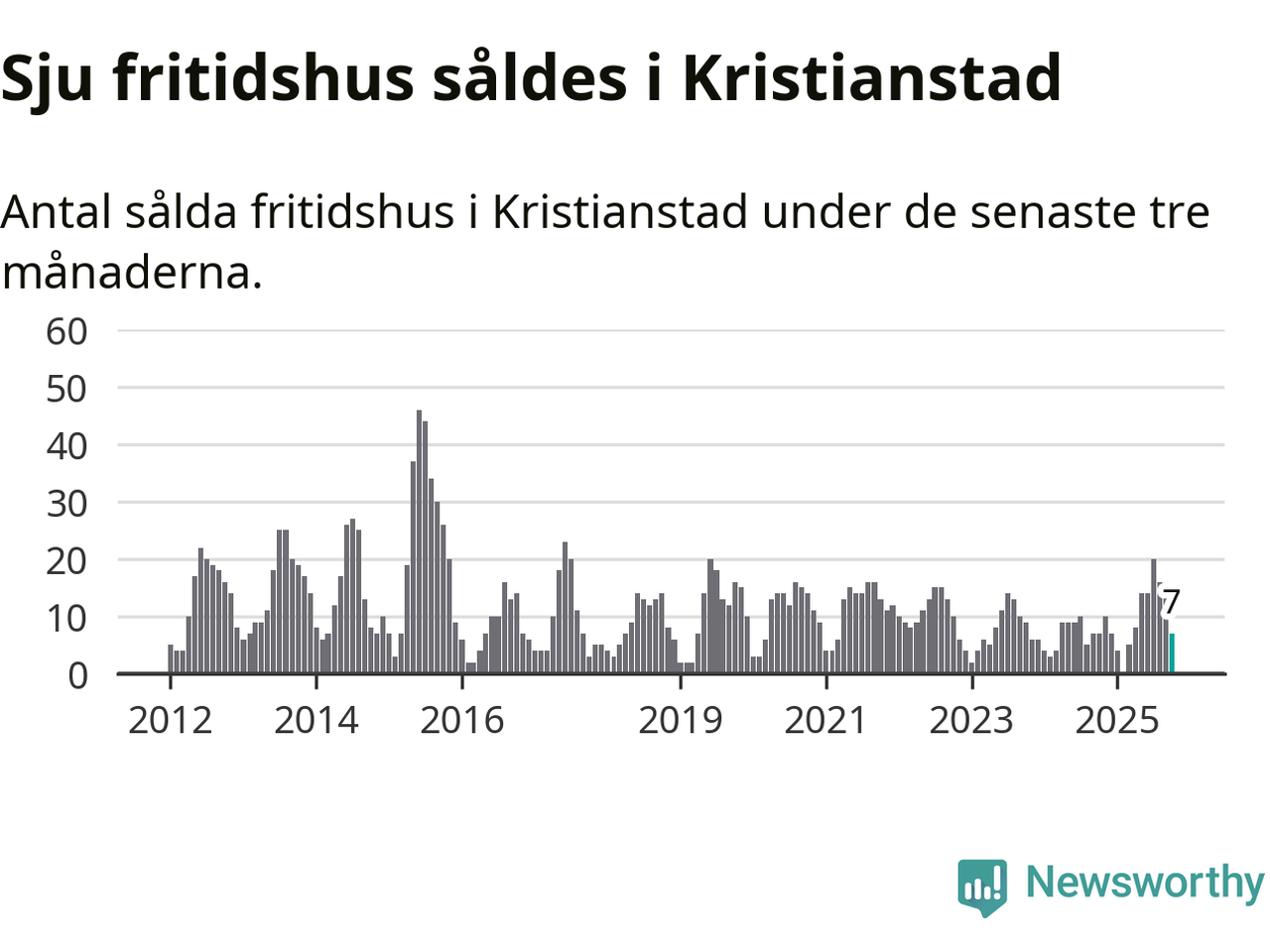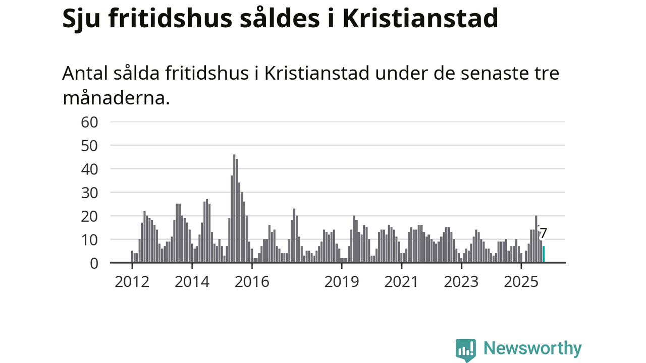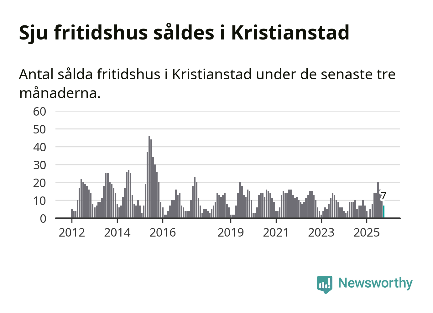 Mellan augusti och oktober gjordes sammanlagt sju affärer med fritidshus i Kristianstads kommun. Det är lika många affärer som vid motsvarande tid i fjol.