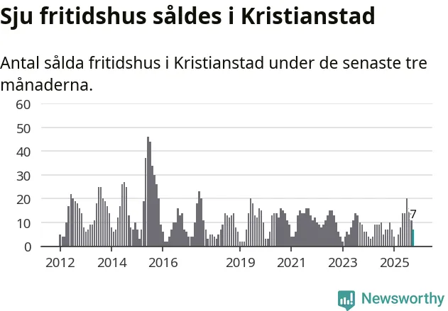 Graf: Antal sålda fritidshus i Kristianstads kommun
