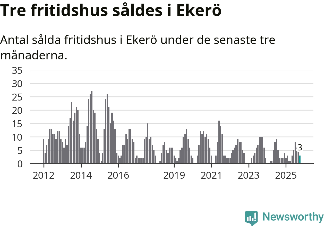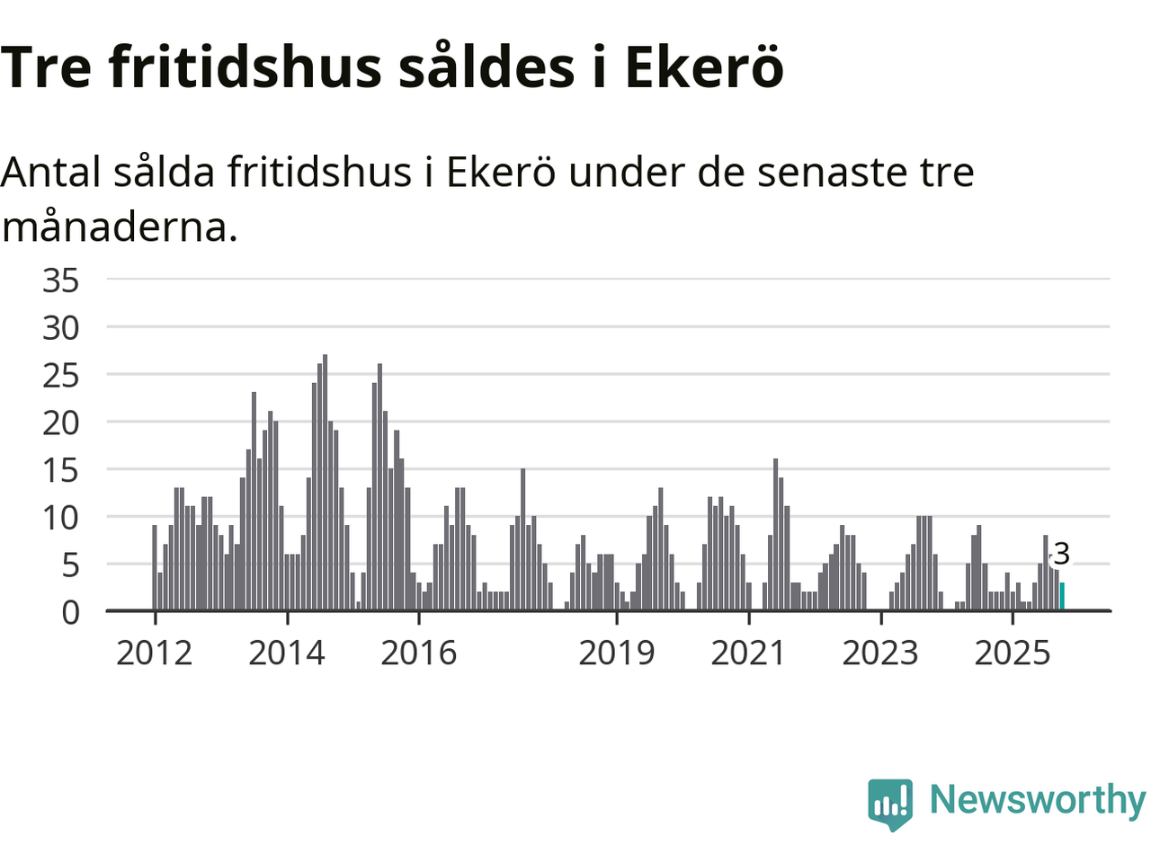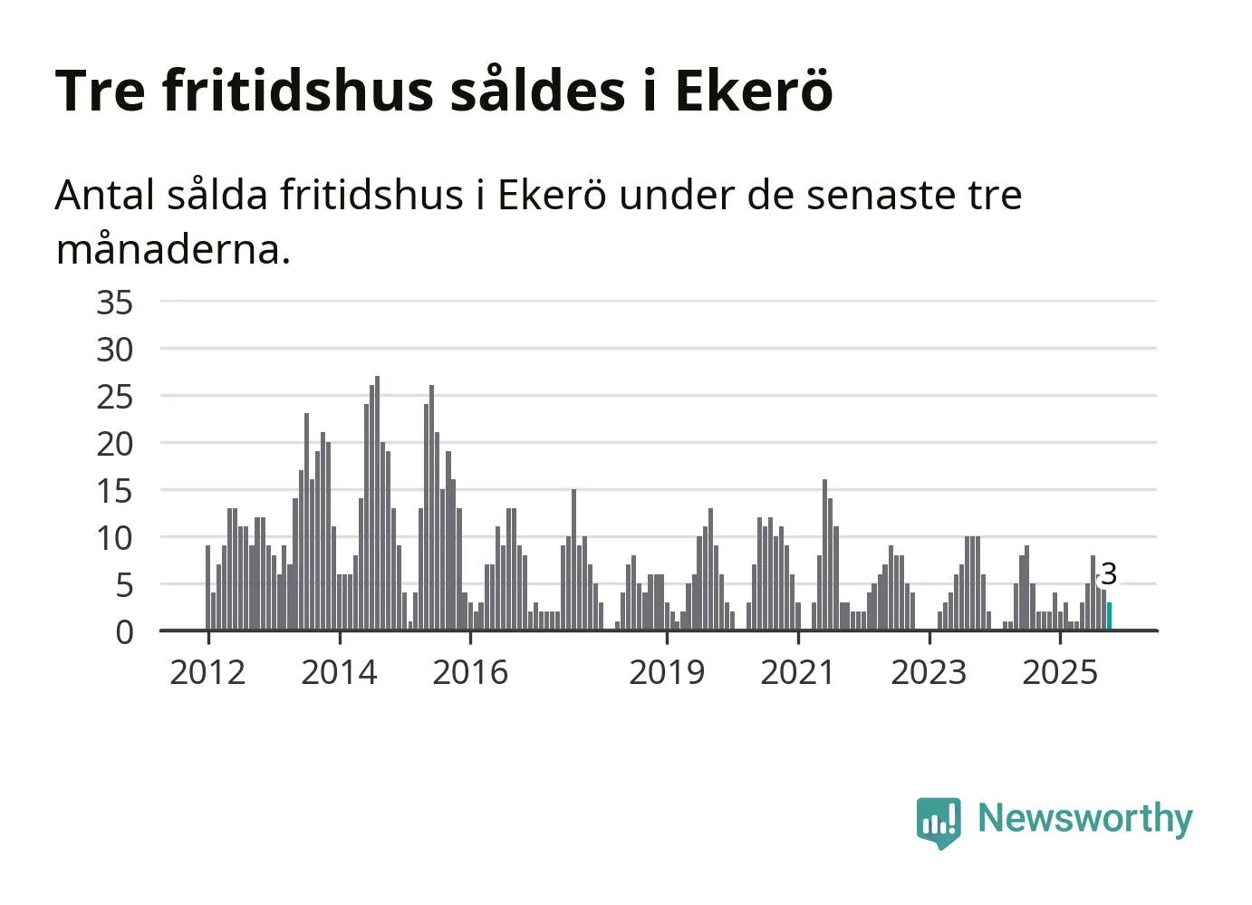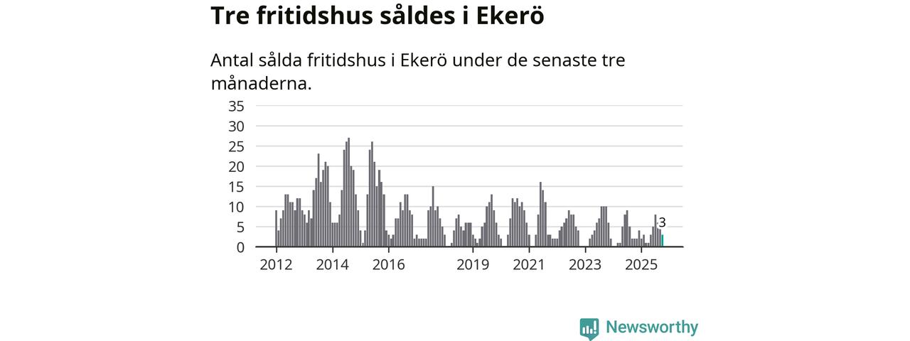 Mellan augusti och oktober gjordes sammanlagt tre affärer med fritidshus i Ekerö kommun. Det kan jämföras med två vid motsvarande tid i fjol.
