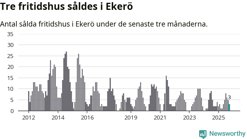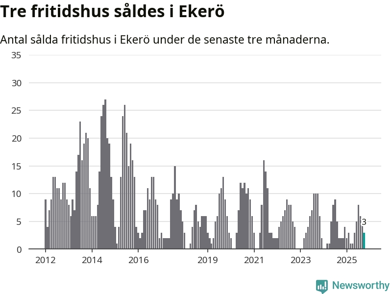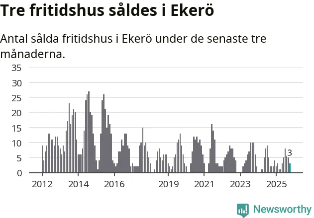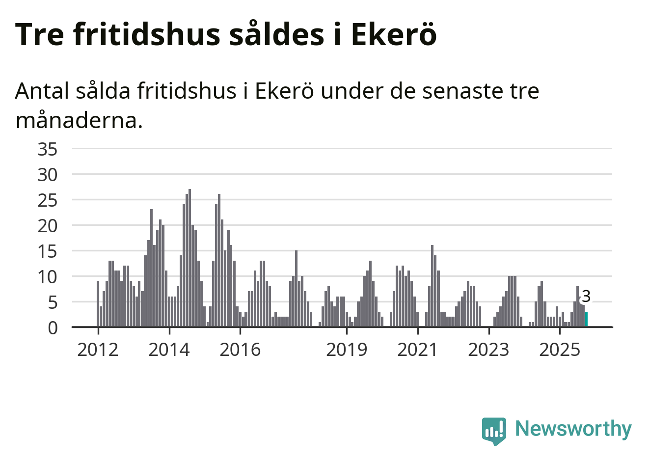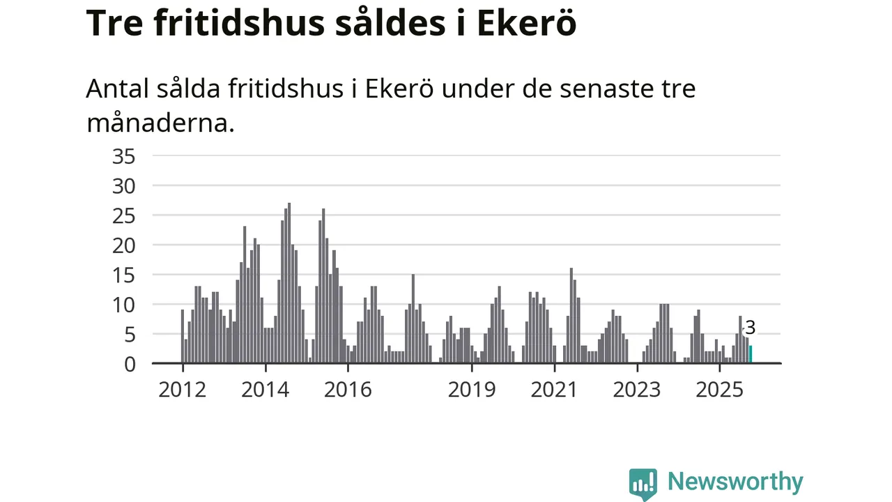 Mellan augusti och oktober gjordes sammanlagt tre affärer med fritidshus i Ekerö kommun. Det kan jämföras med två vid motsvarande tid i fjol.