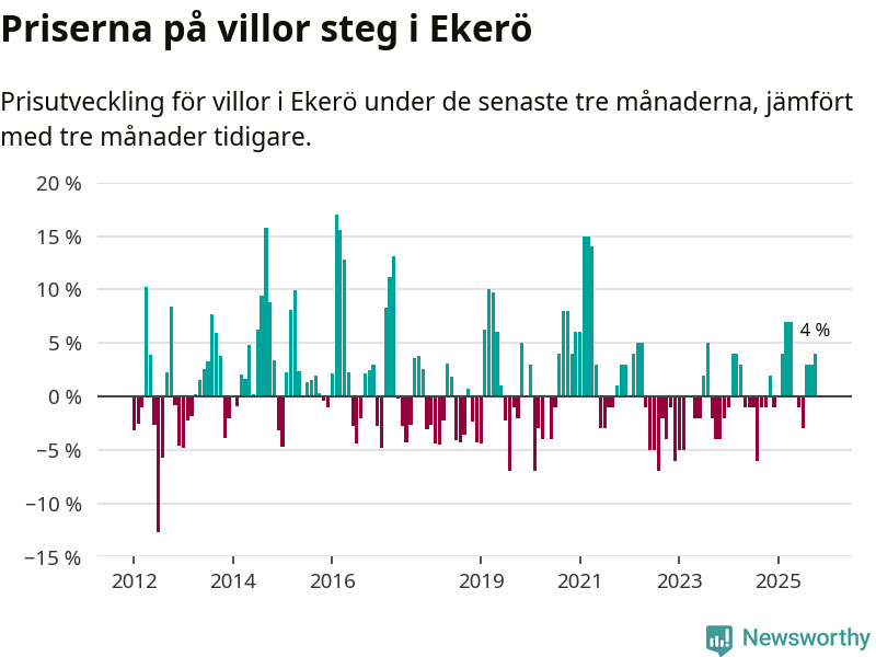 | Ekerö | +4 % ▲ | 100 | 7,2 miljoner |