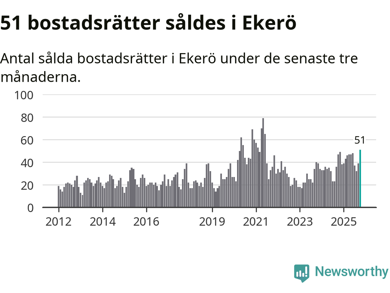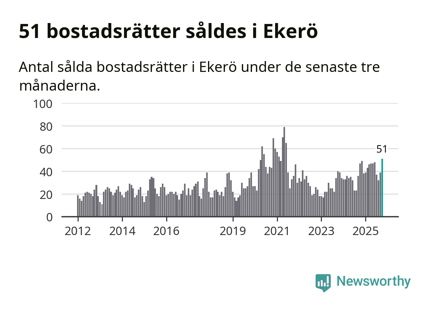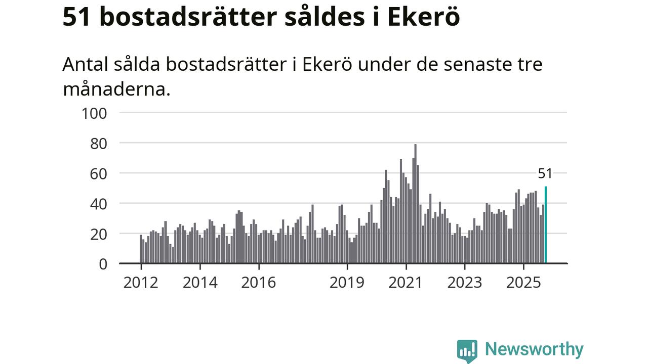 Mellan augusti och oktober såldes 51 bostadsrätter i Ekerö kommun. Det är fler än någon tremånadersperiod sedan 2021.