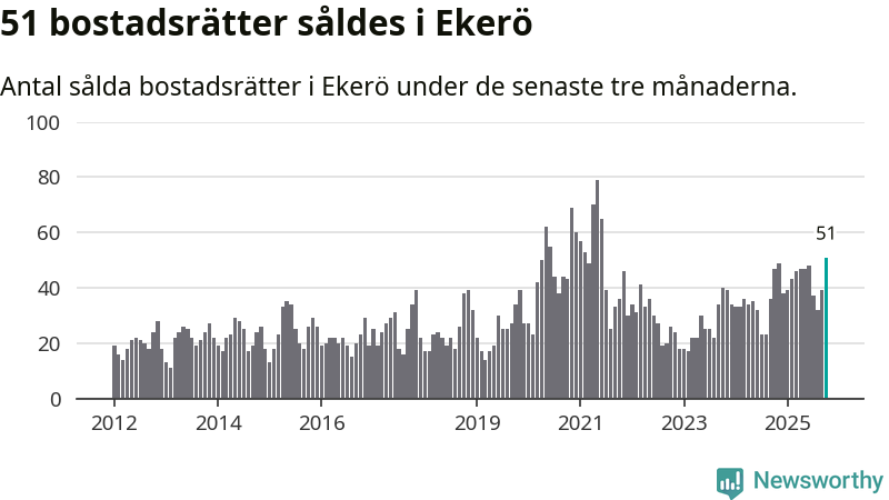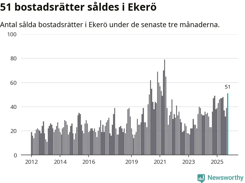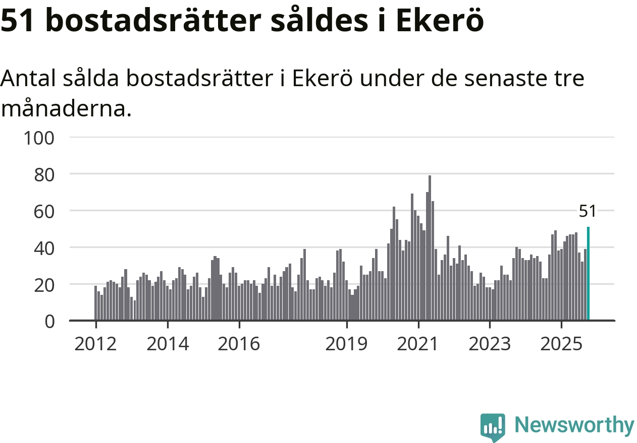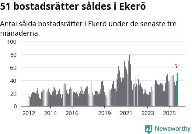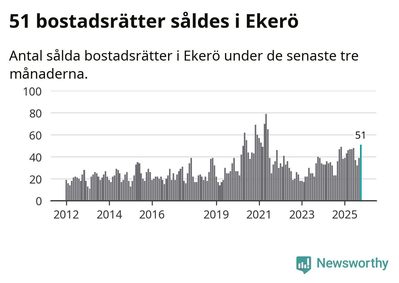 Mellan augusti och oktober såldes 51 bostadsrätter i Ekerö kommun. Det är fler än någon tremånadersperiod sedan 2021.