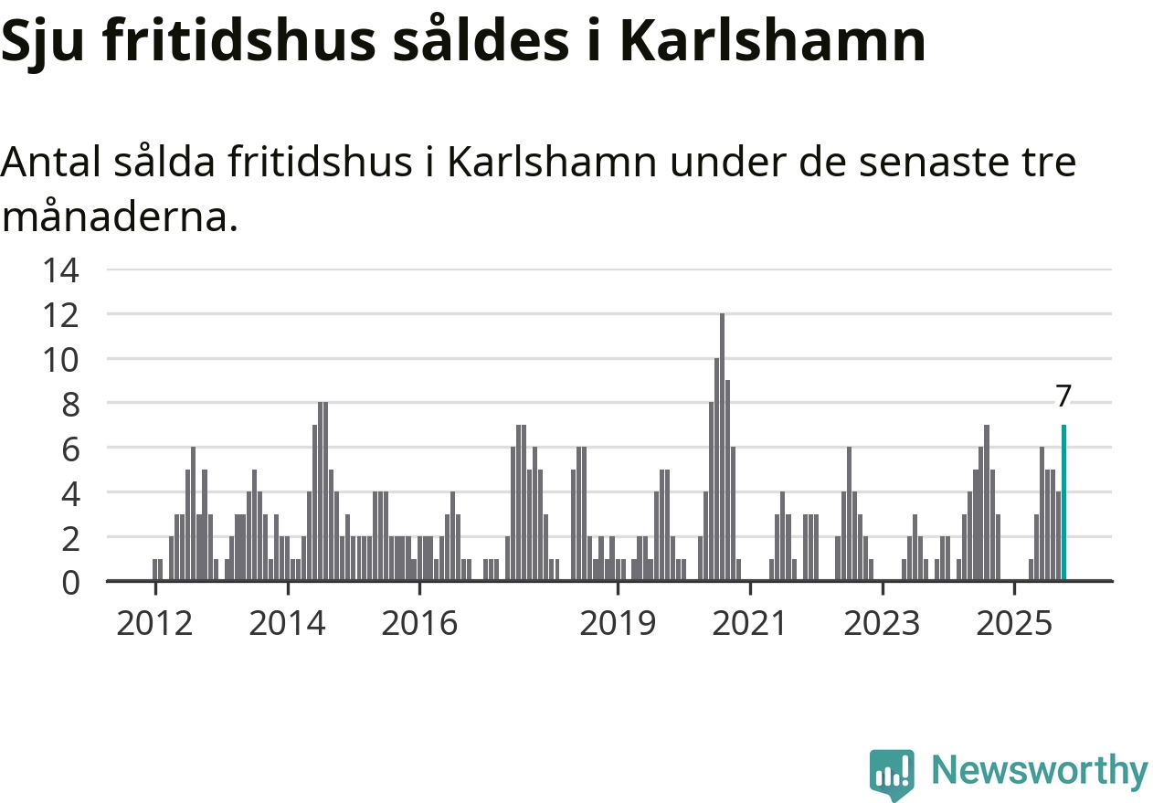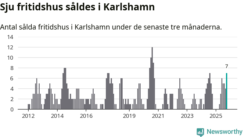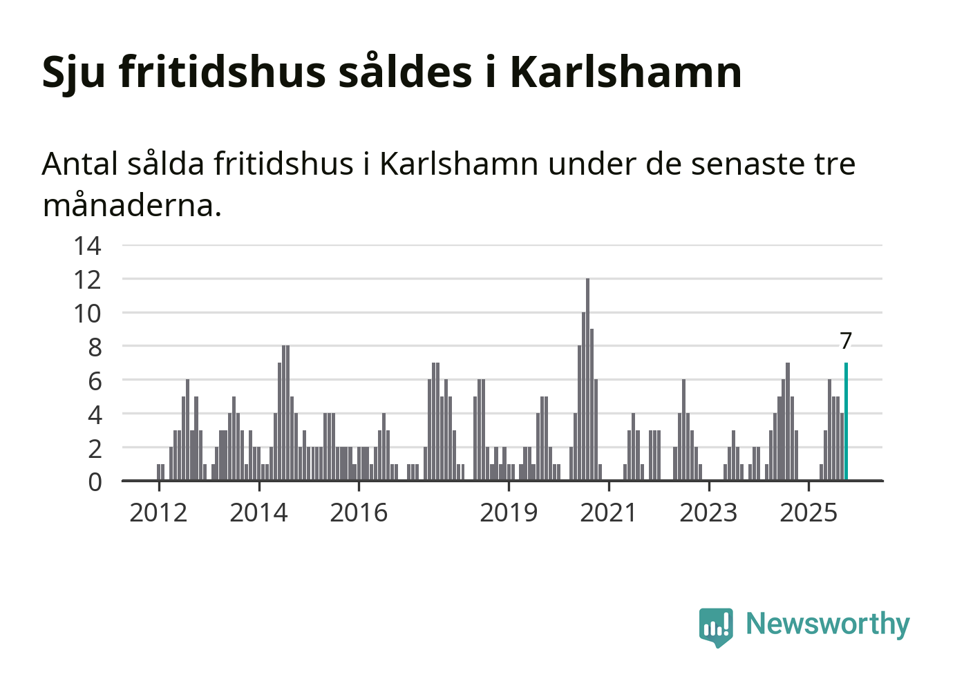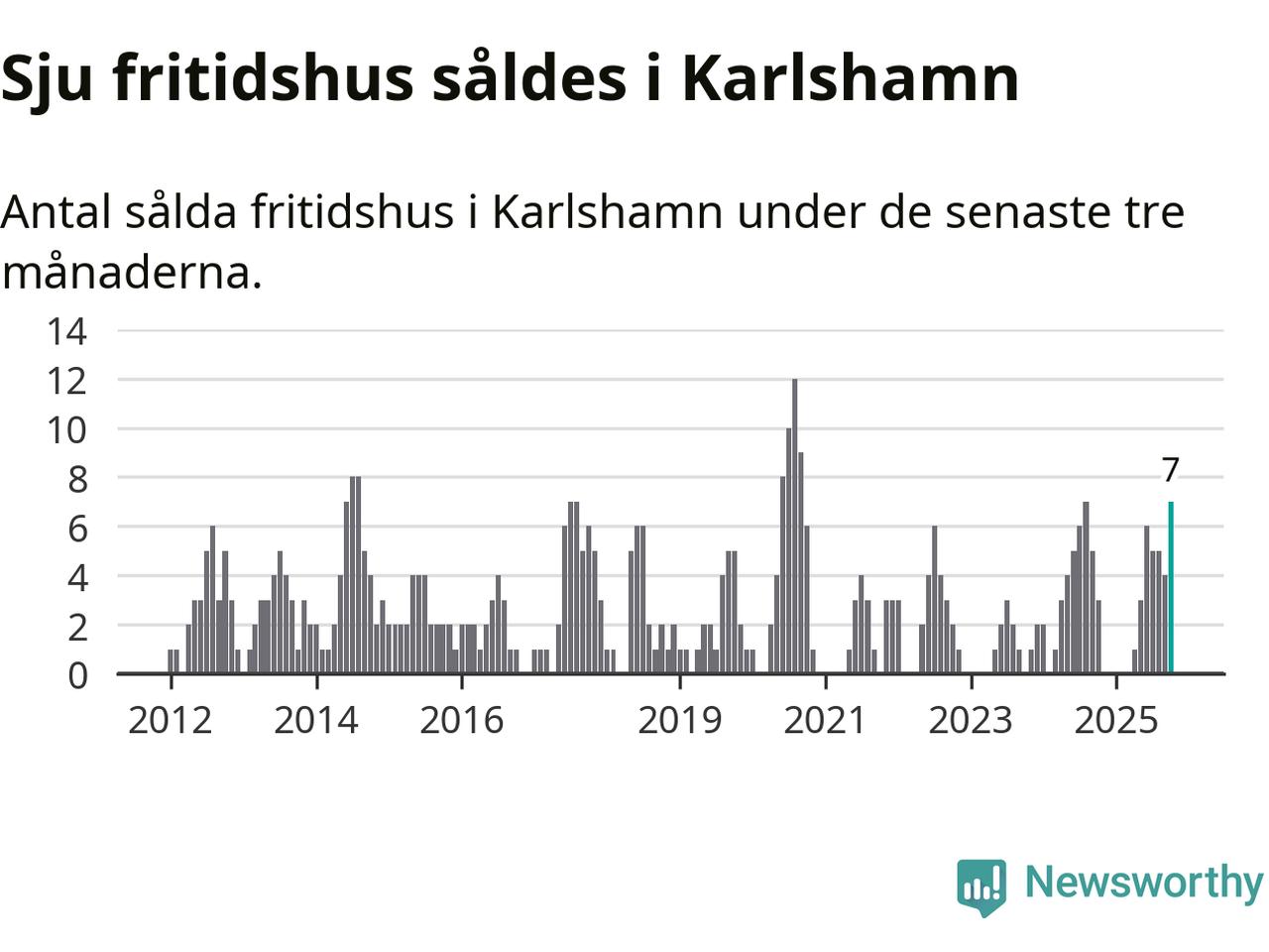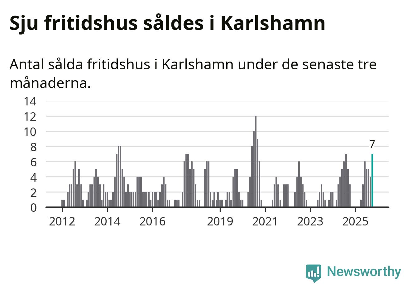 Mellan augusti och oktober gjordes sammanlagt sju affärer med fritidshus i Karlshamns kommun. Det kan jämföras med tre vid motsvarande tid i fjol.