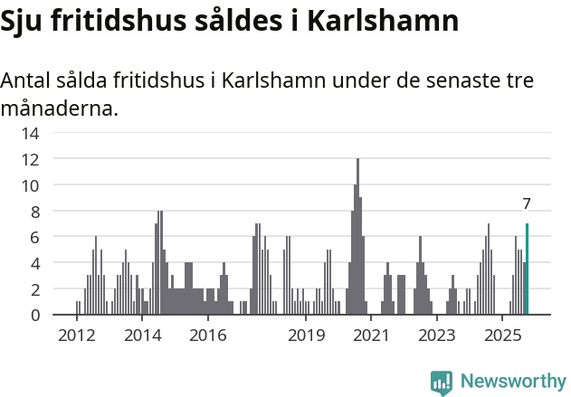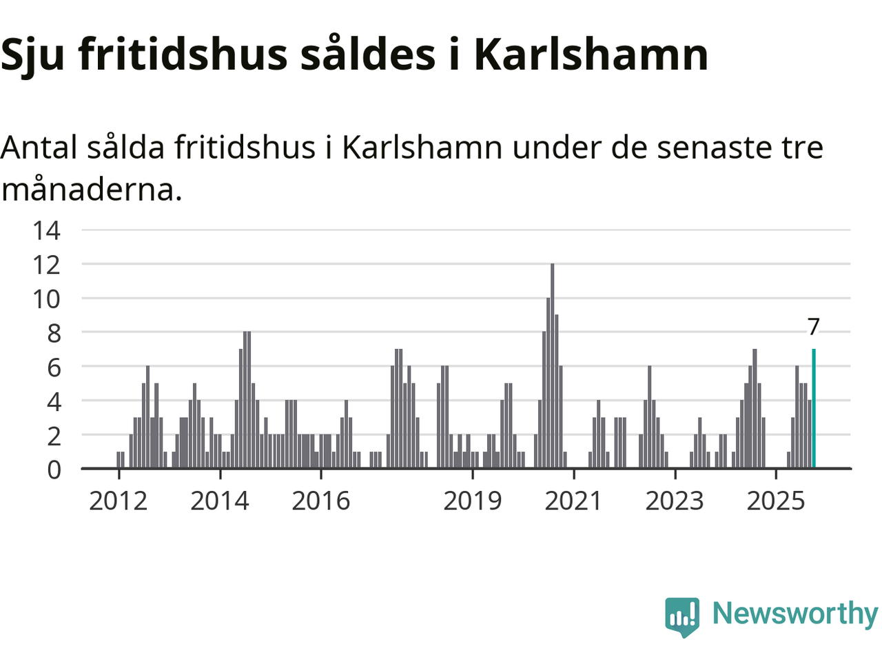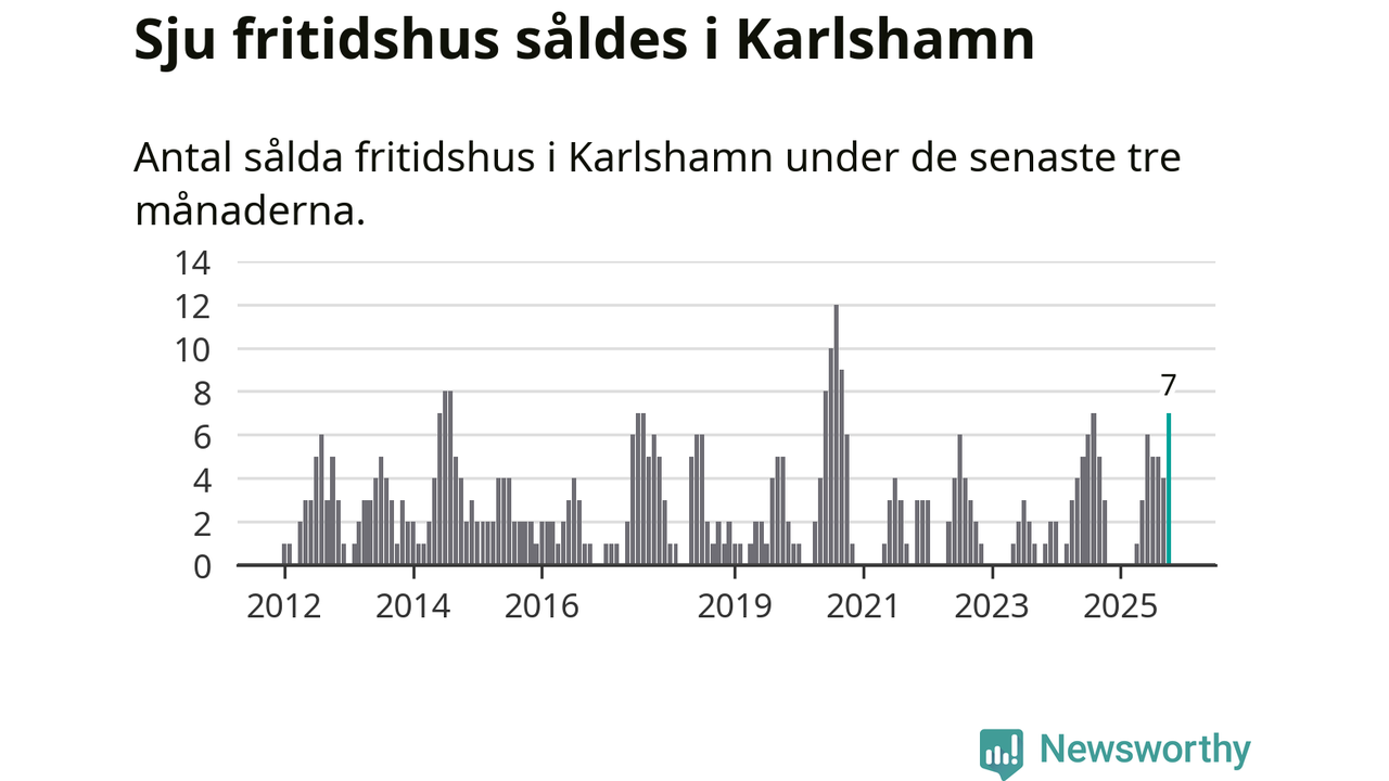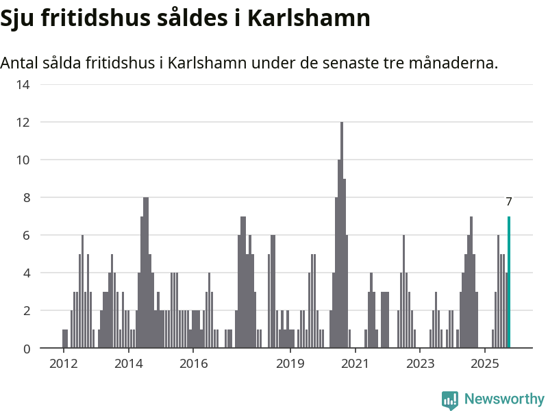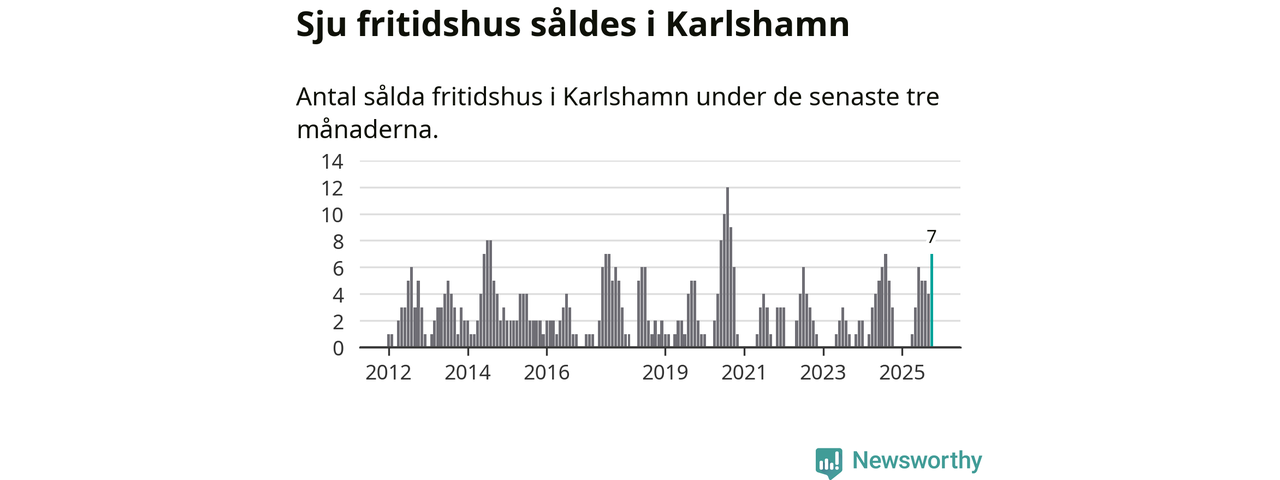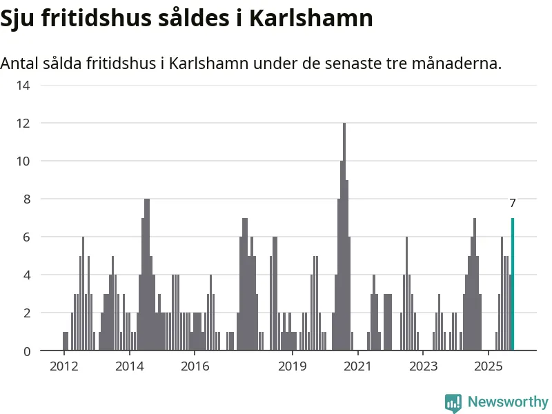 Mellan augusti och oktober gjordes sammanlagt sju affärer med fritidshus i Karlshamns kommun. Det kan jämföras med tre vid motsvarande tid i fjol.