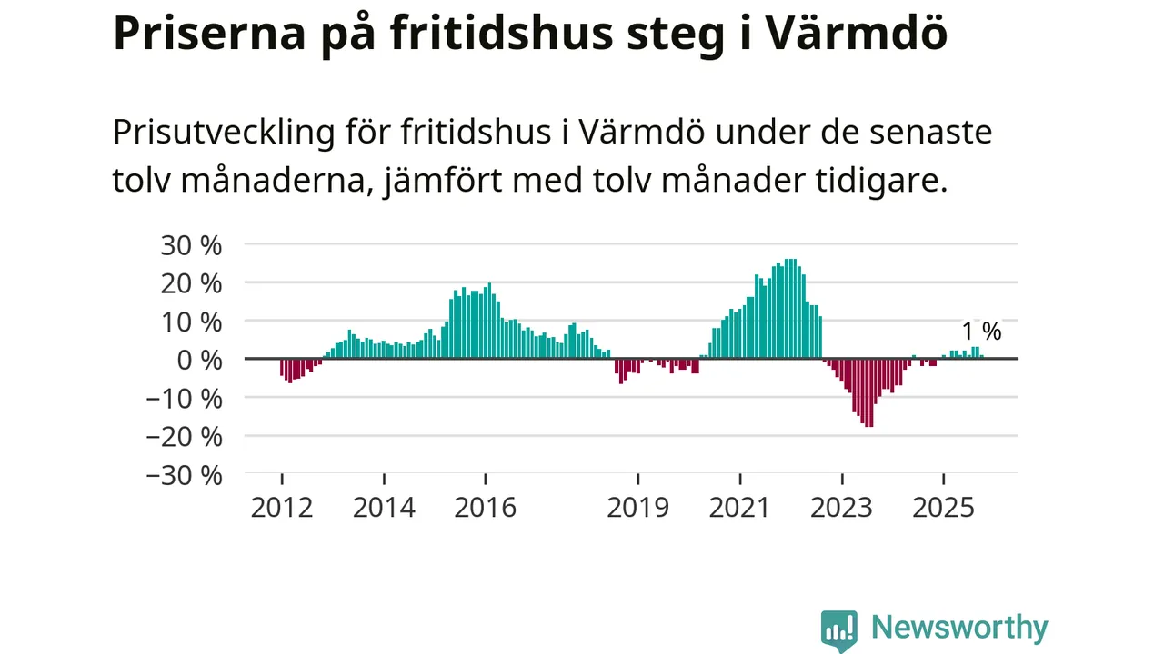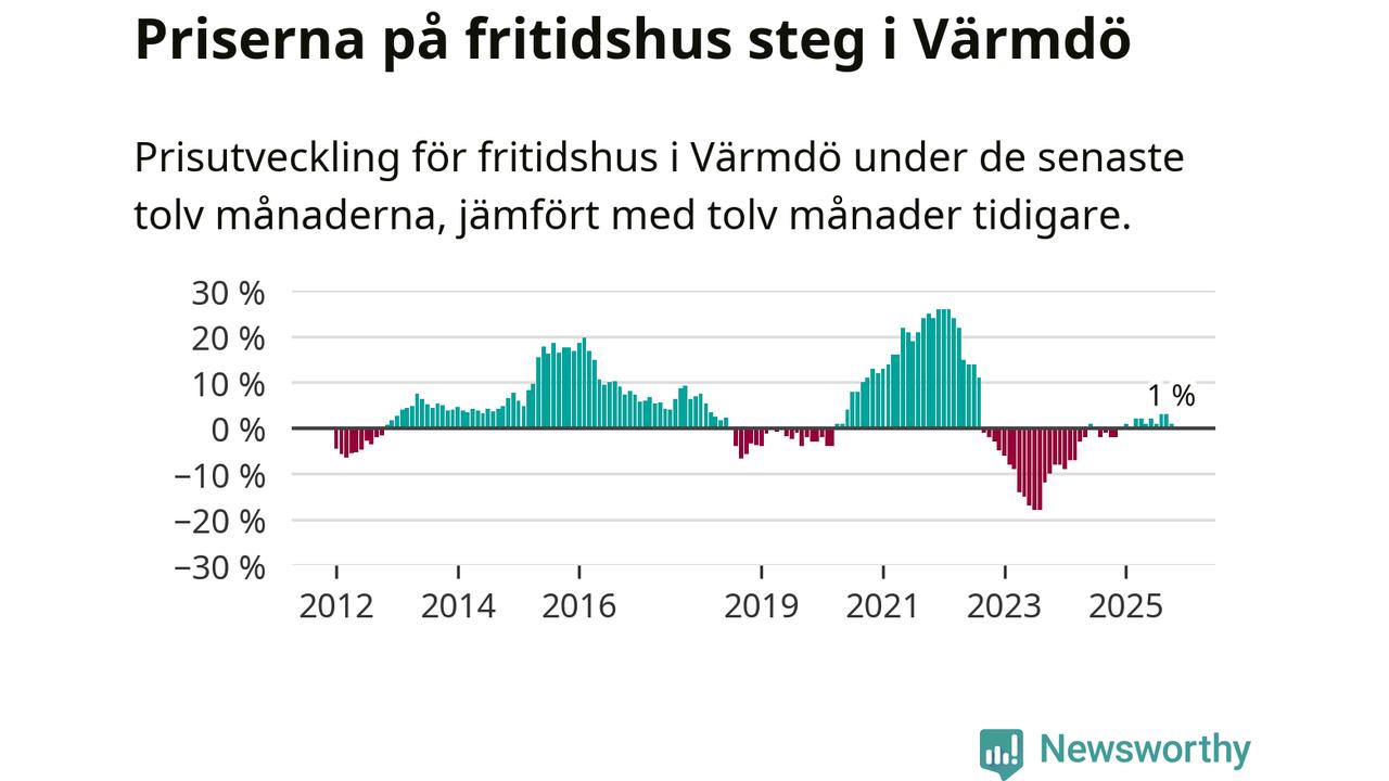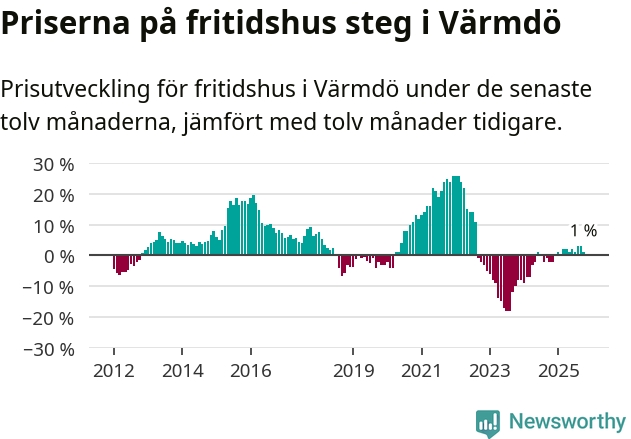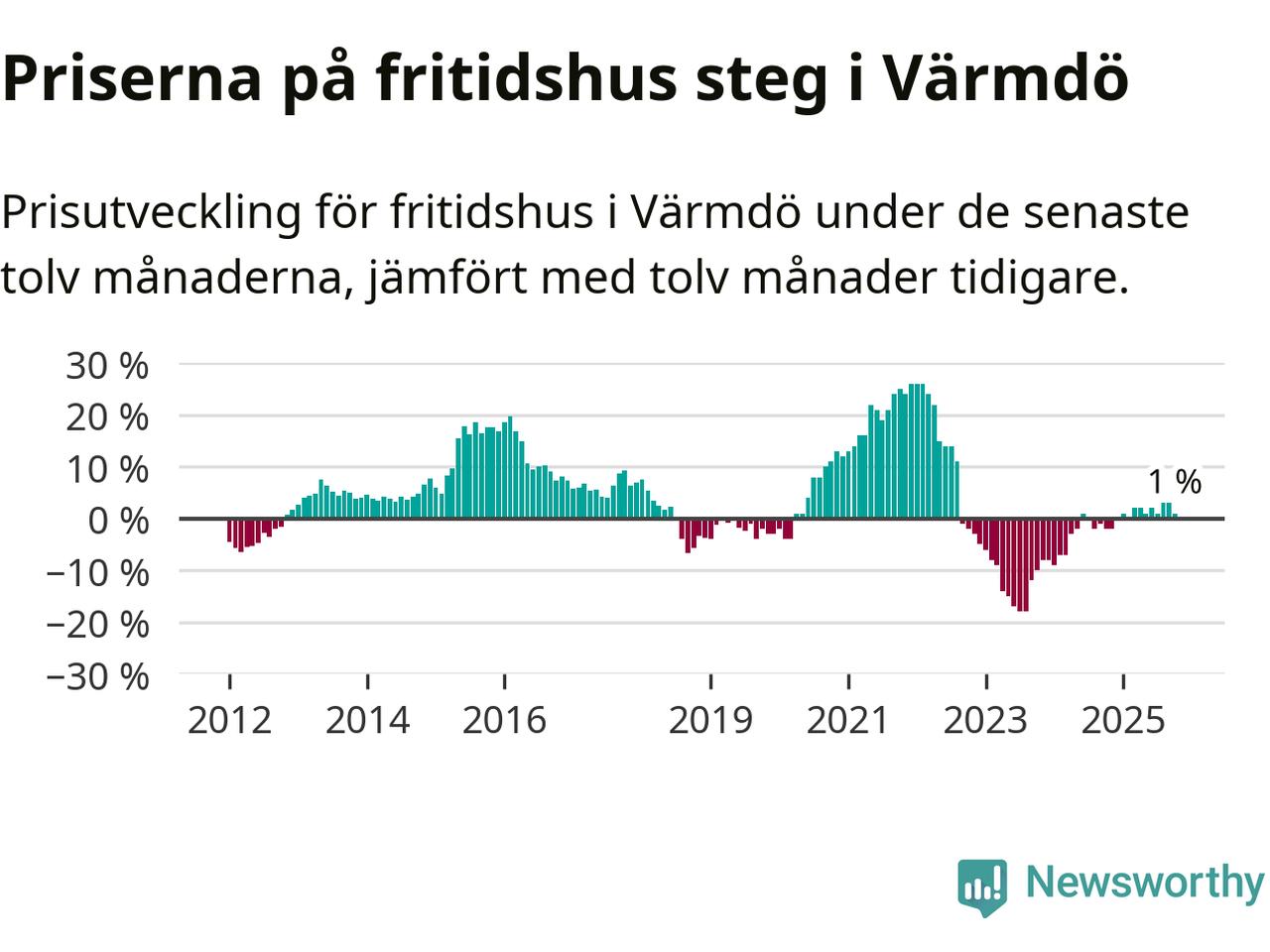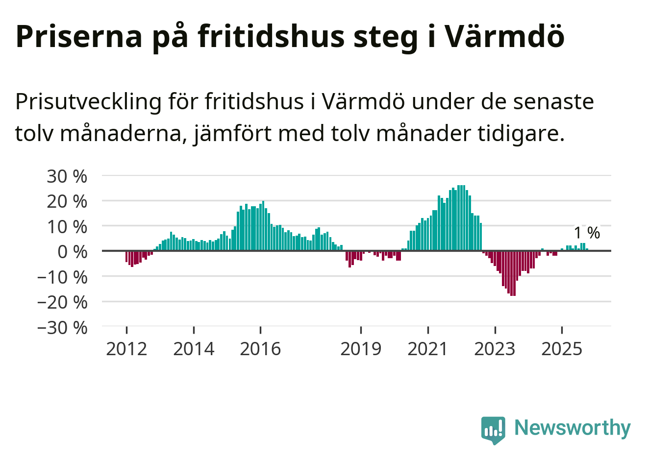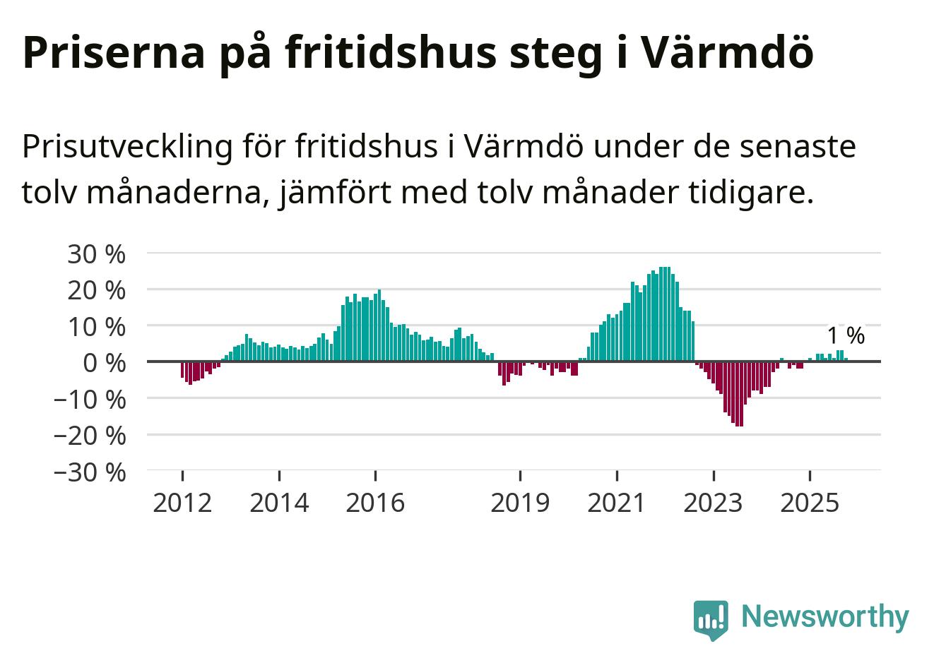 Priserna på fritidshus har gått upp i Värmdö kommun. Medelpriset på försäljningarna under de senaste tolv månaderna visar på en uppgång med 1 procent.