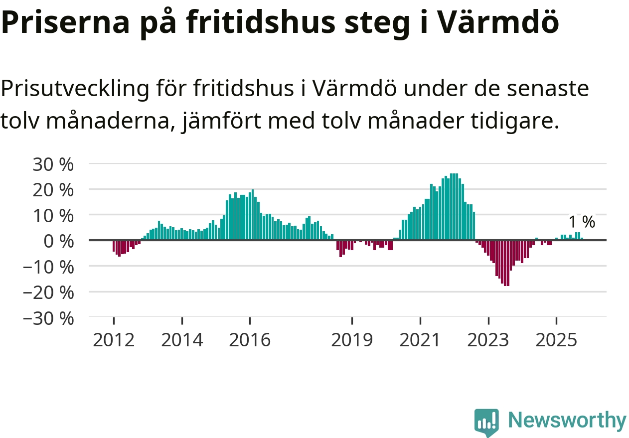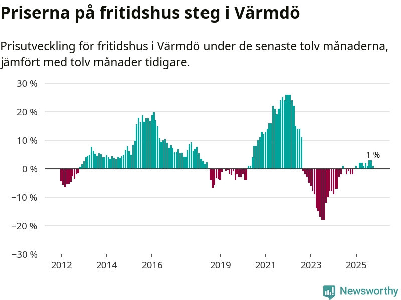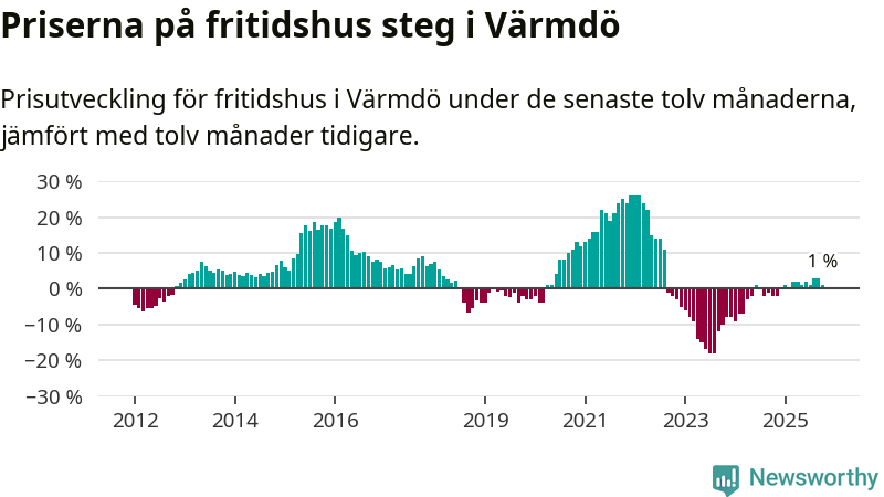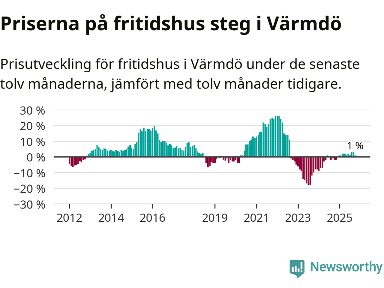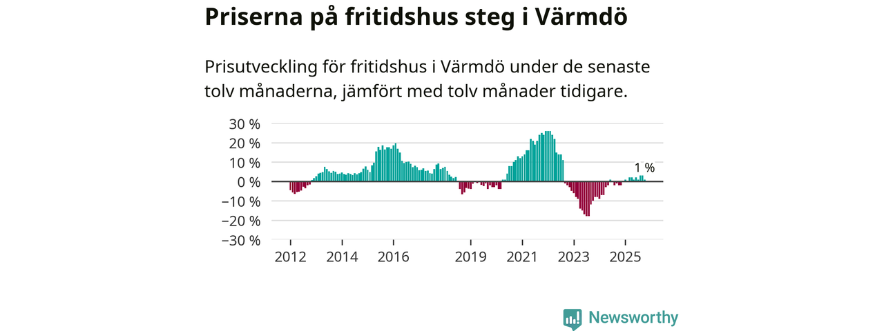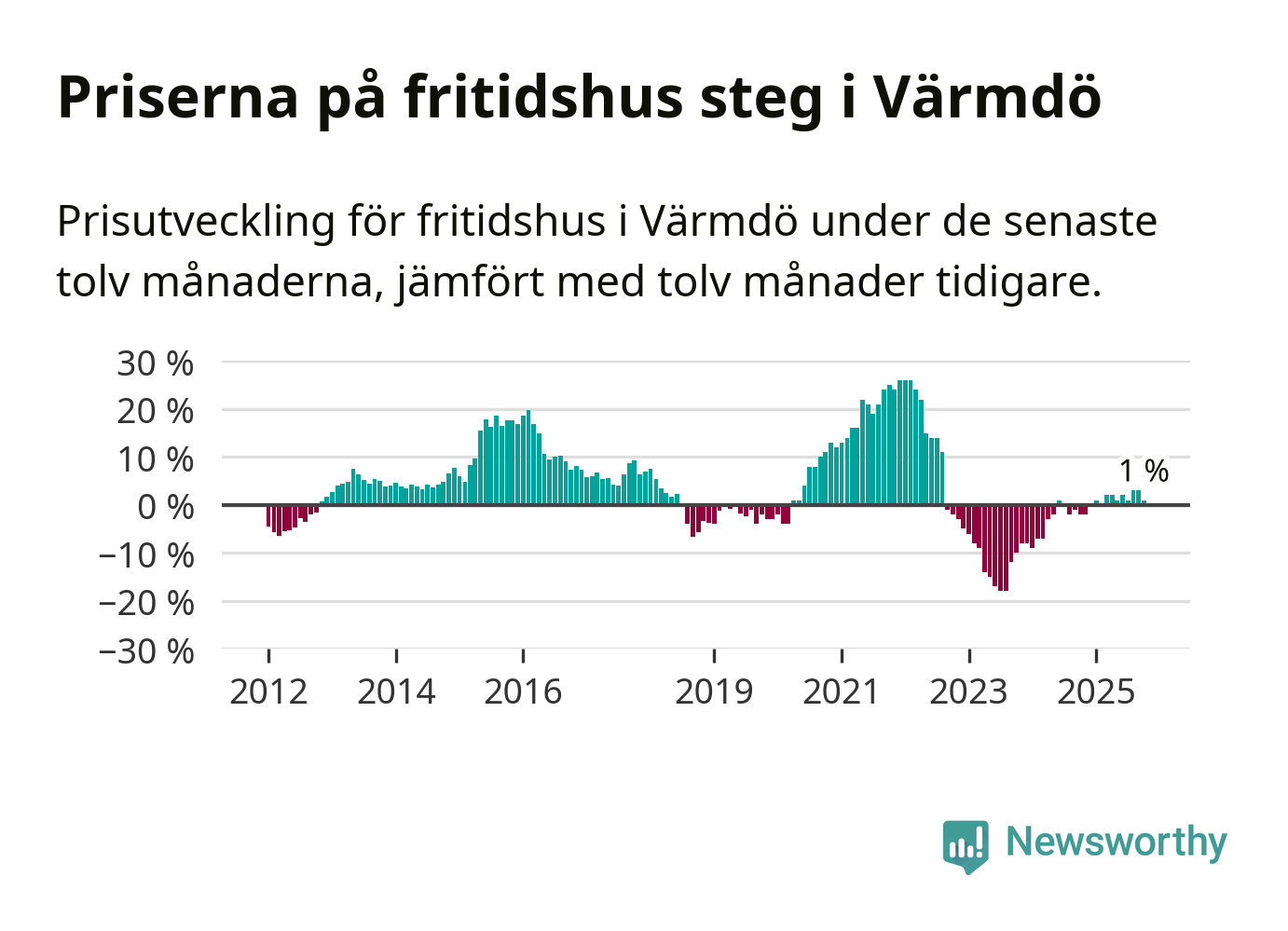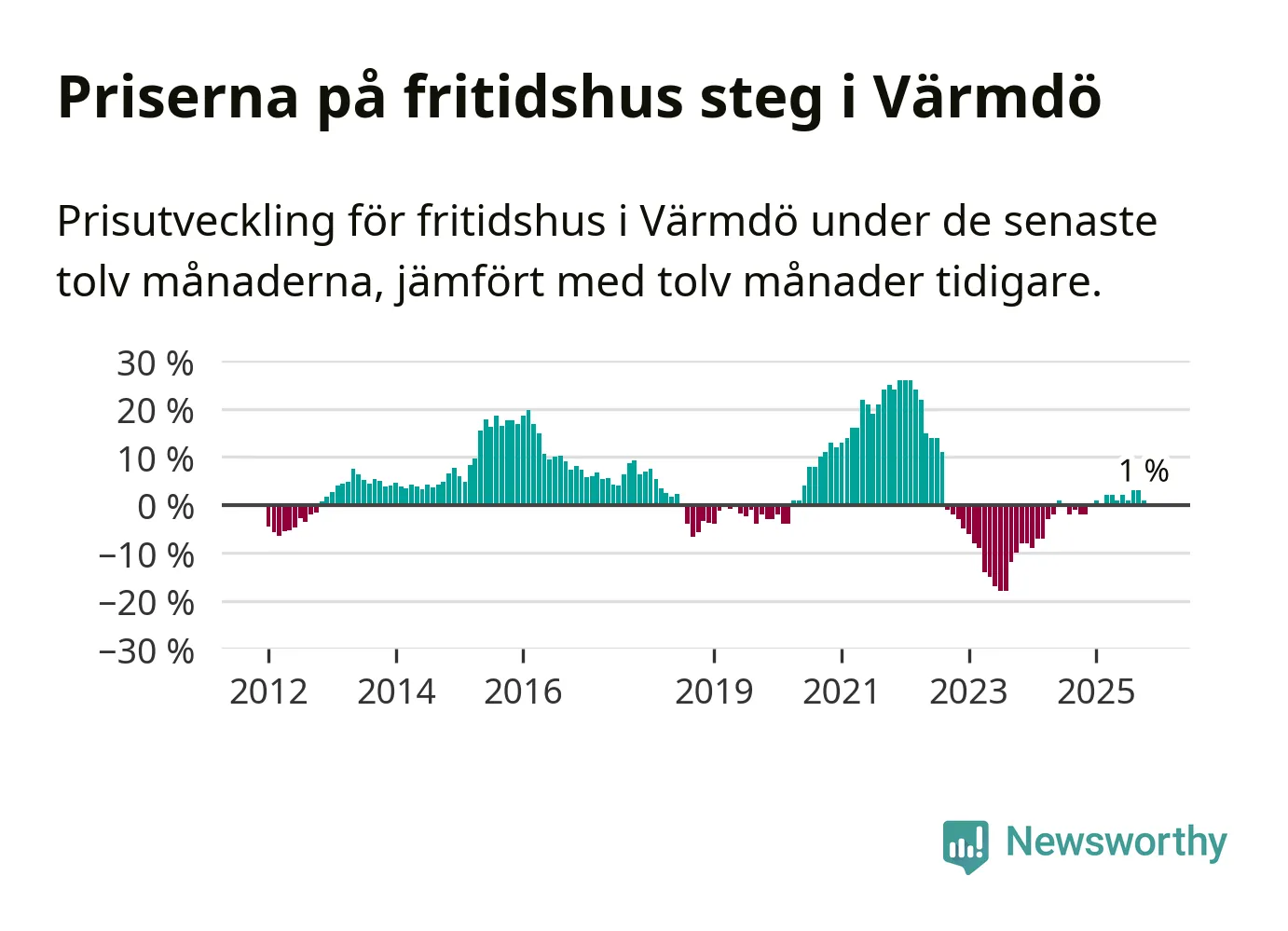 Priserna på fritidshus har gått upp i Värmdö kommun. Medelpriset på försäljningarna under de senaste tolv månaderna visar på en uppgång med 1 procent.