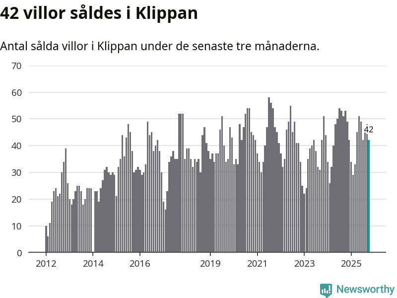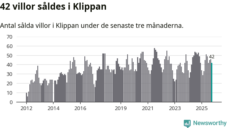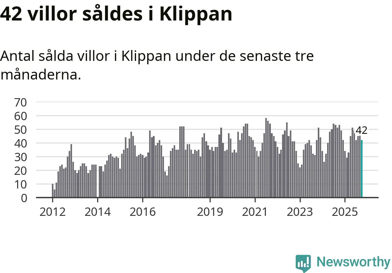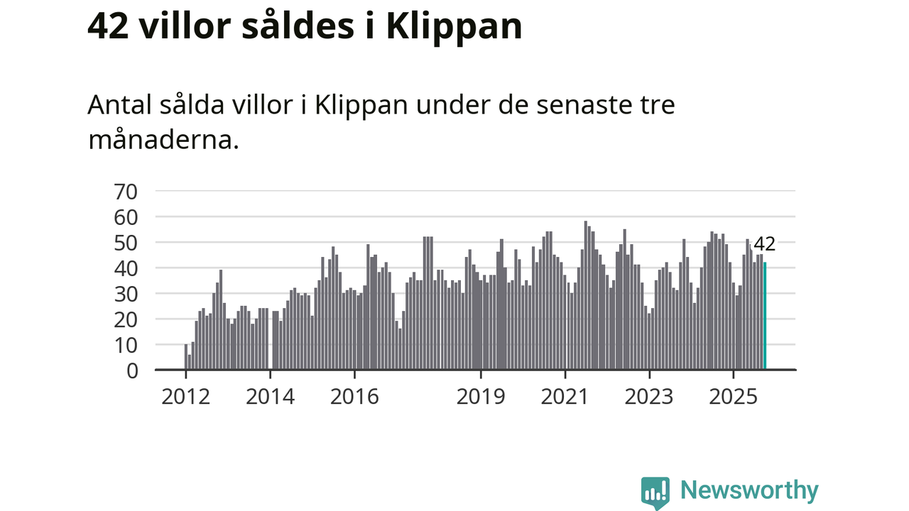 Sammanlagt såldes 42 villor i Klippans kommun mellan augusti och oktober till ett genomsnittligt pris på 1,8 miljoner kronor. I fjol gjordes 53 affärer vid den här tiden på året.