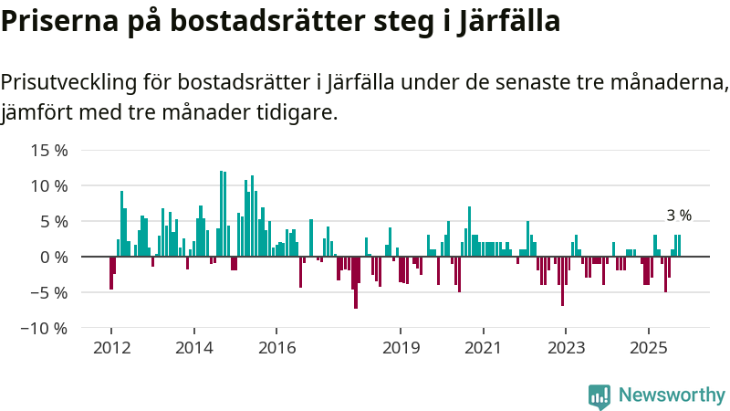 | Järfälla | +3 % ▲ | 346 | 2,3 miljoner |