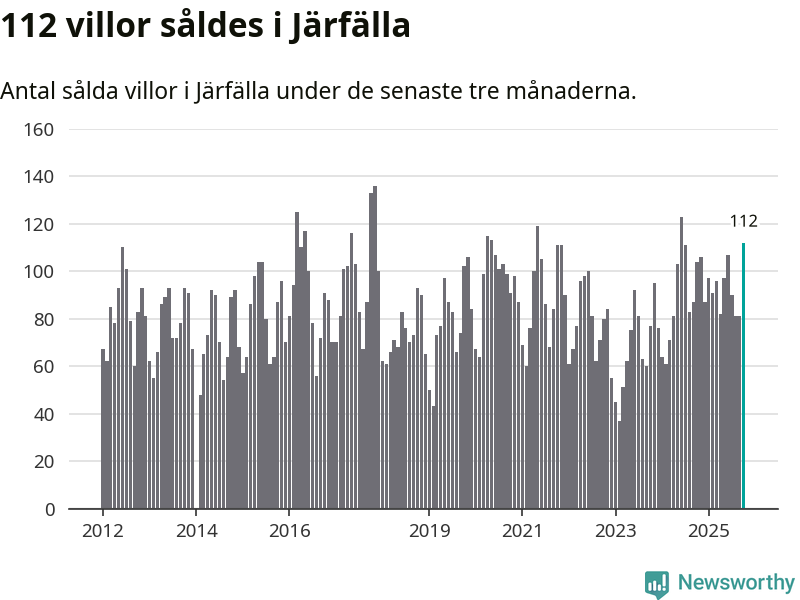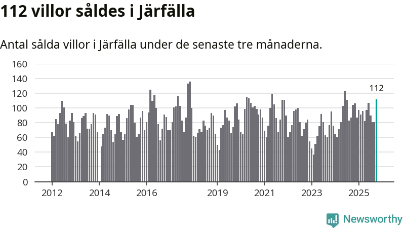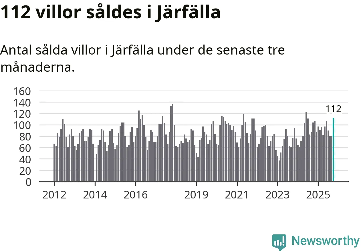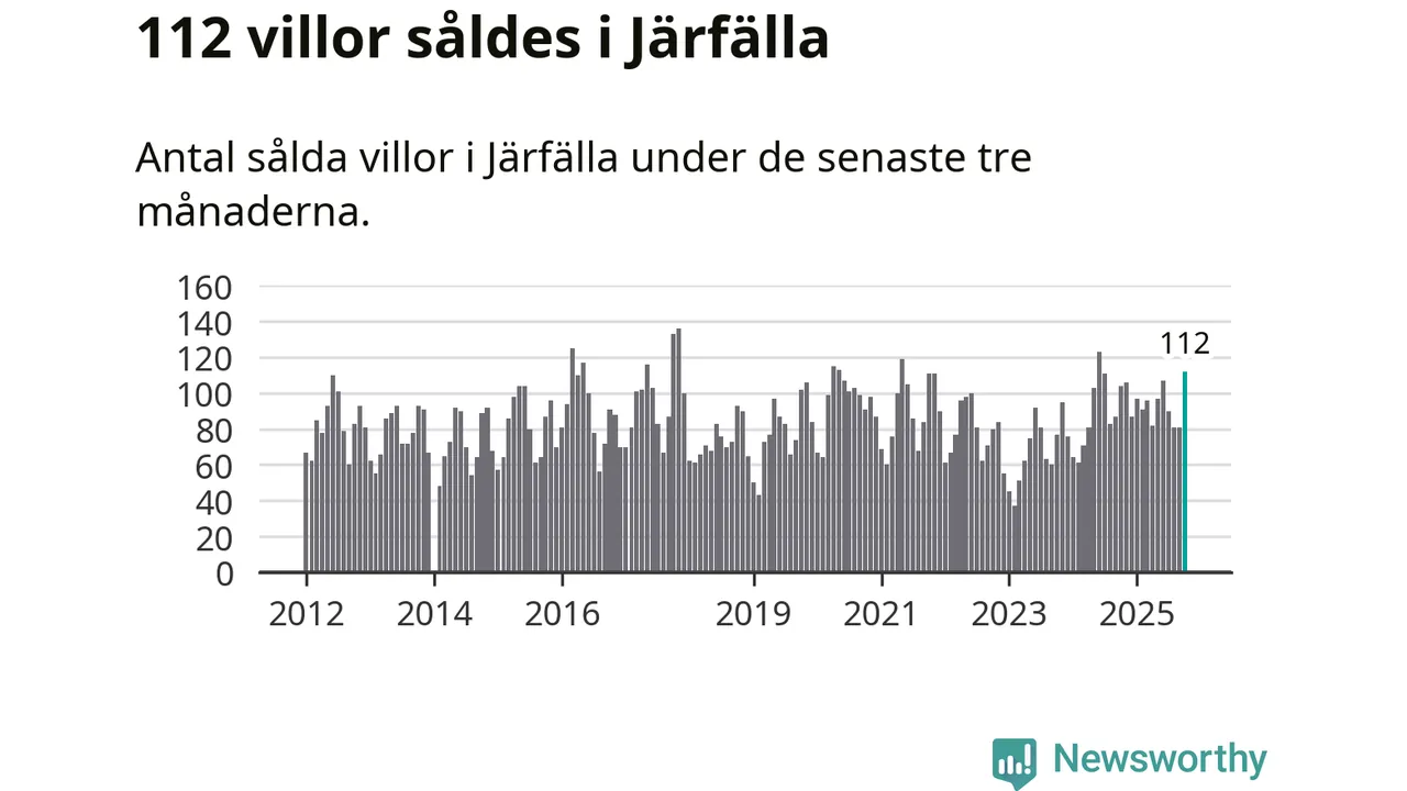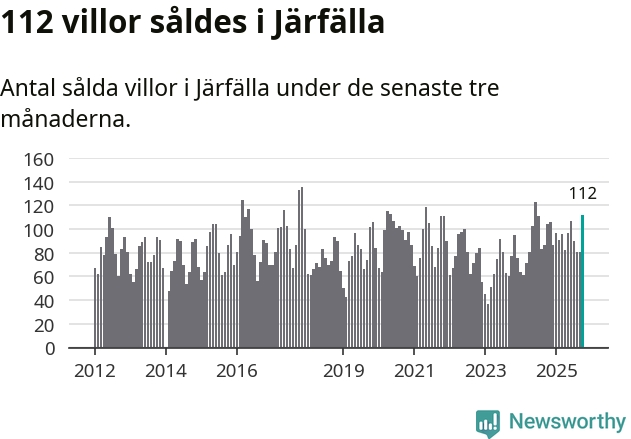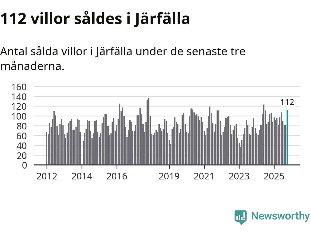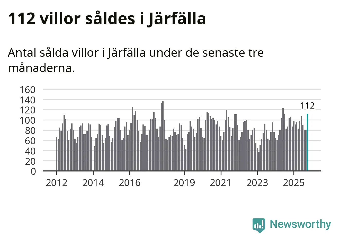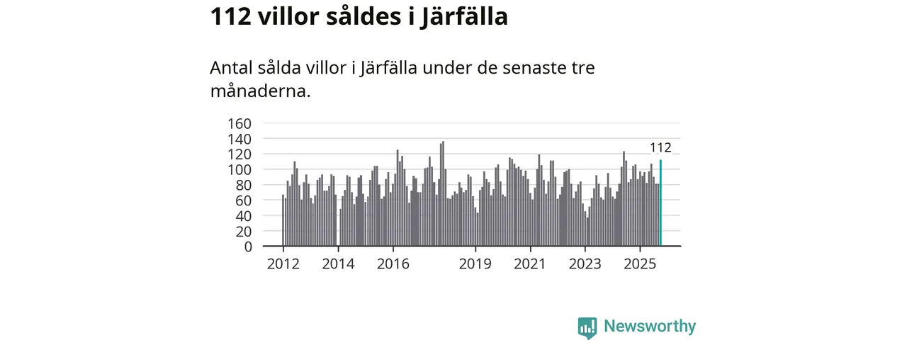 | Järfälla | −3 % ▼ | 112 | 5,6 miljoner |