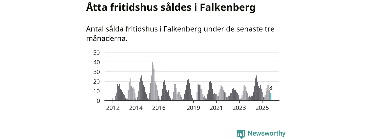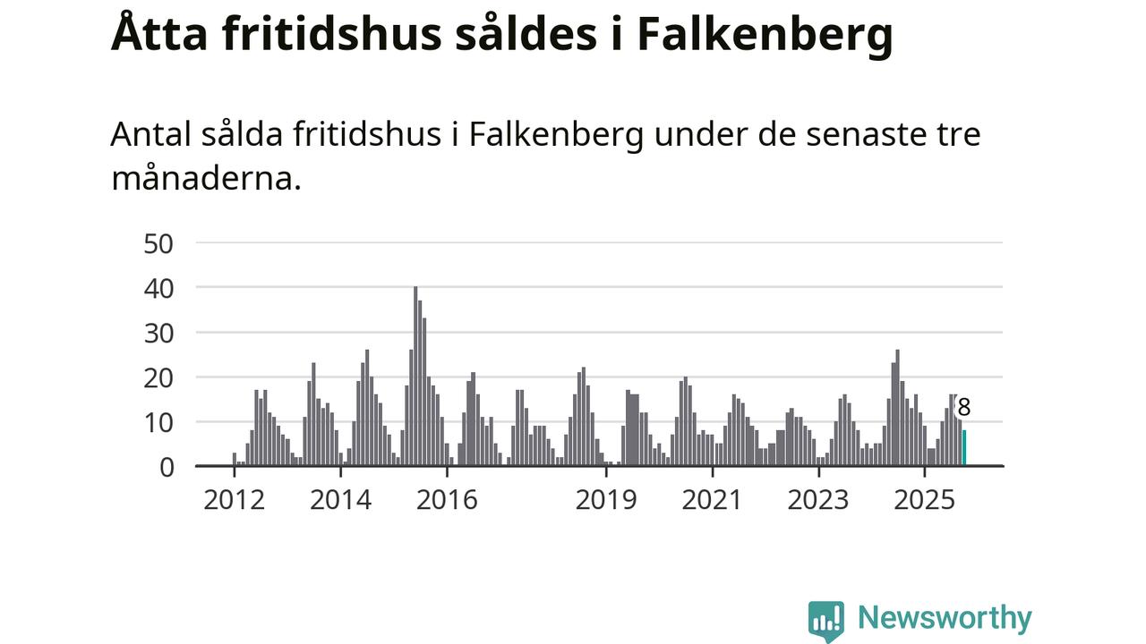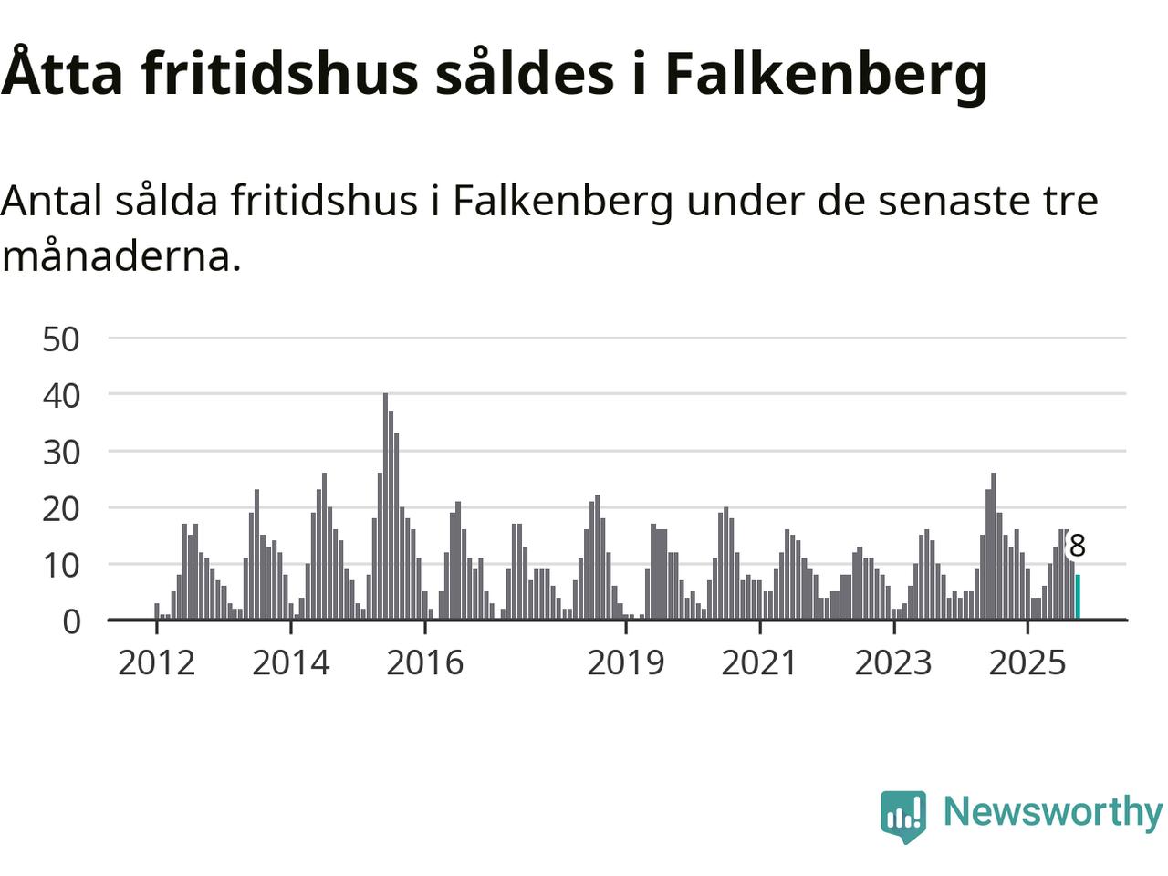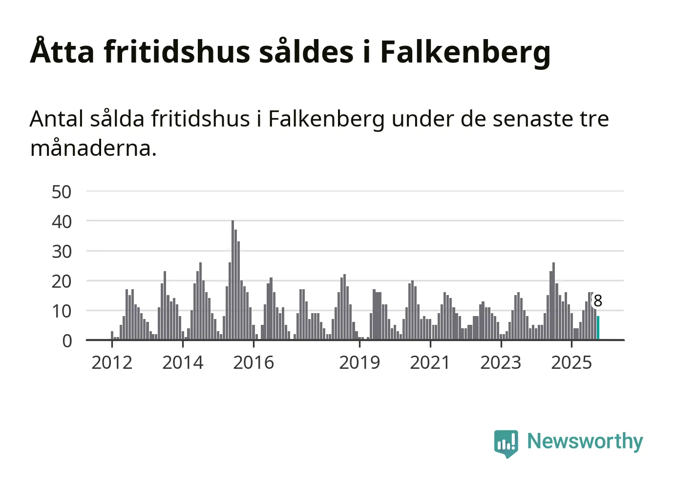 Sammanlagt såldes åtta fritidshus i Falkenbergs kommun mellan augusti och oktober till ett genomsnittligt pris på 3,5 miljoner kronor. I fjol gjordes 13 affärer vid den här tiden på året.