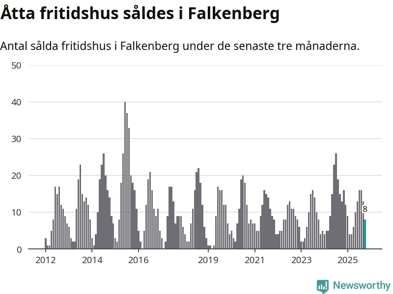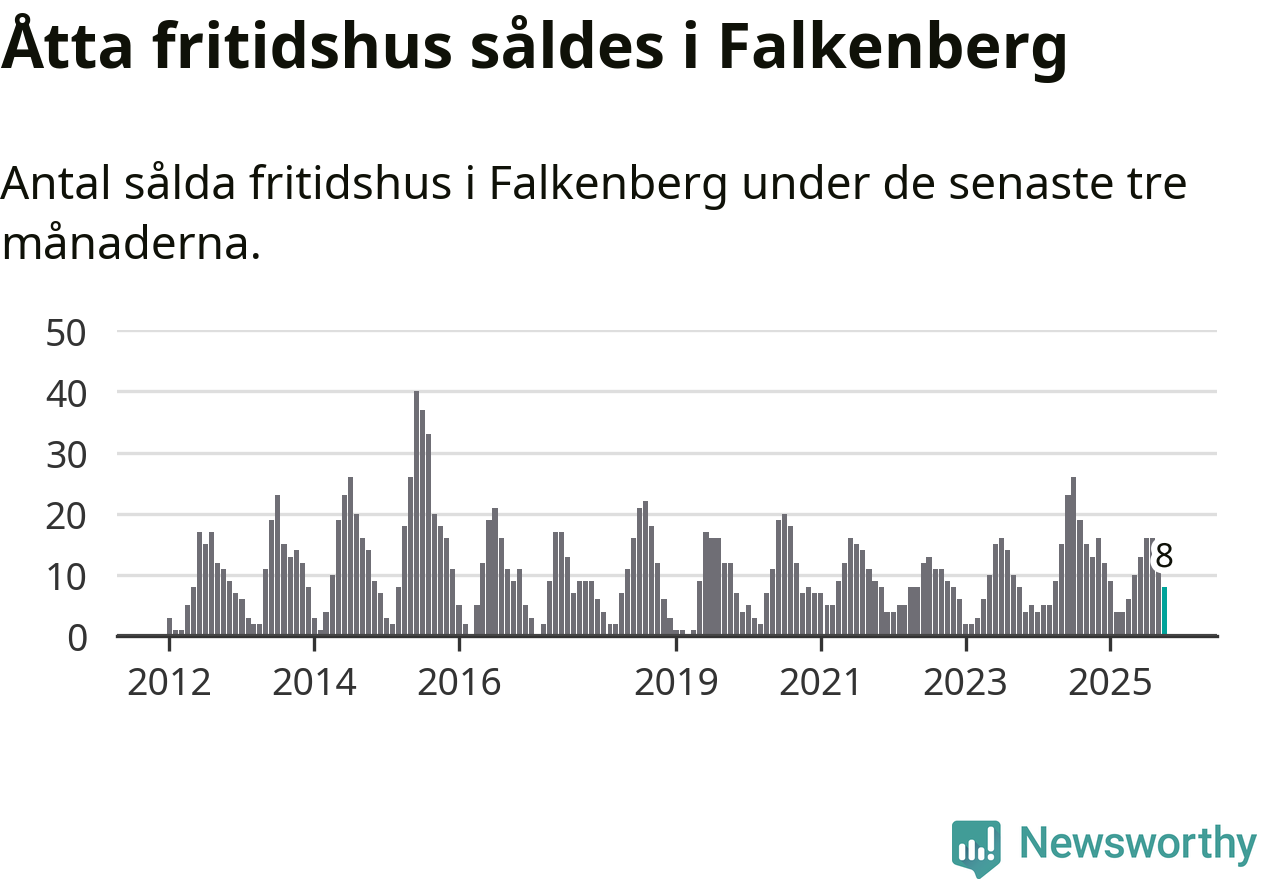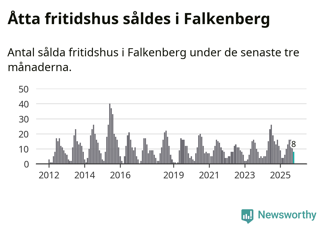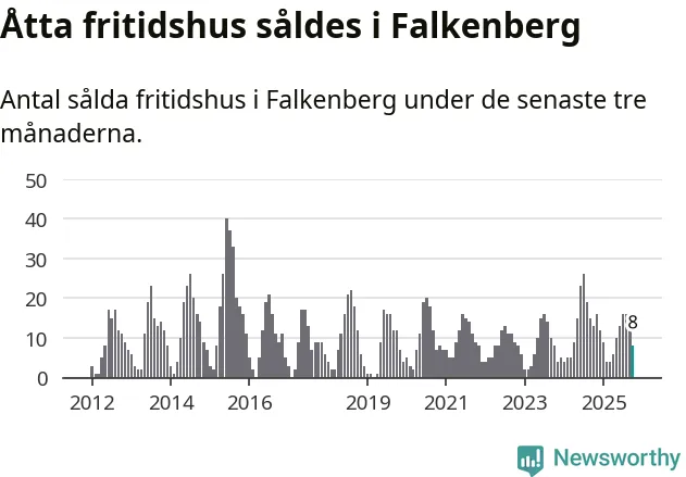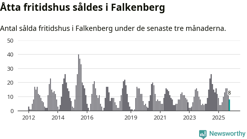 Sammanlagt såldes åtta fritidshus i Falkenbergs kommun mellan augusti och oktober till ett genomsnittligt pris på 3,5 miljoner kronor. I fjol gjordes 13 affärer vid den här tiden på året.