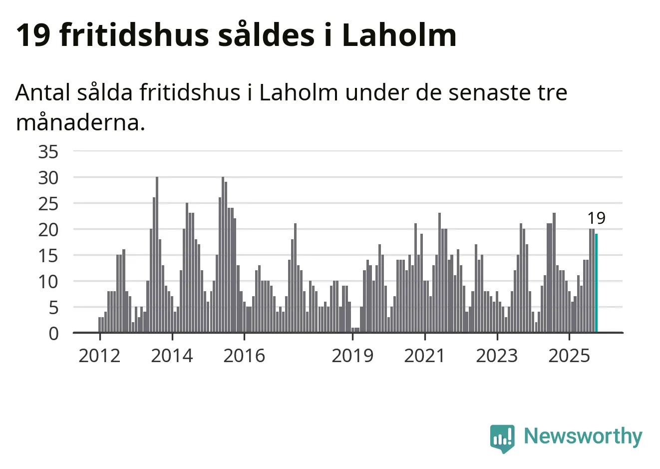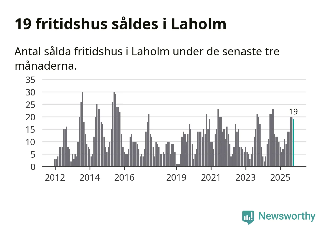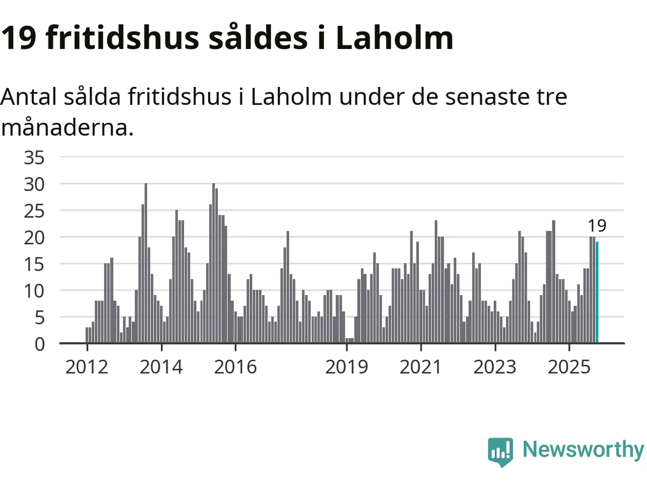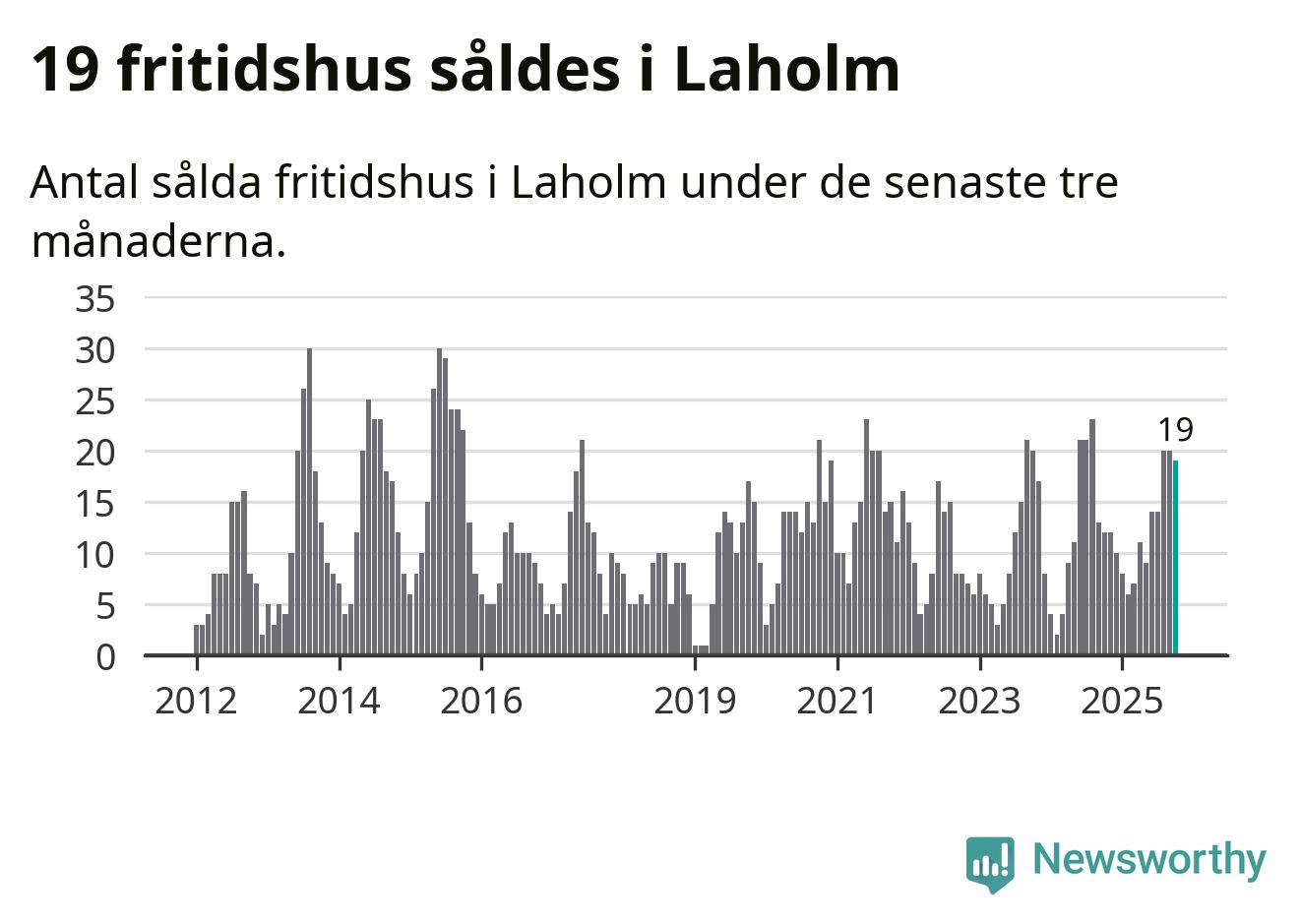 Sammanlagt såldes 19 fritidshus i Laholms kommun mellan augusti och oktober till ett genomsnittligt pris på 1,8 miljoner kronor. I fjol gjordes tolv affärer vid den här tiden på året.