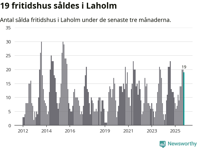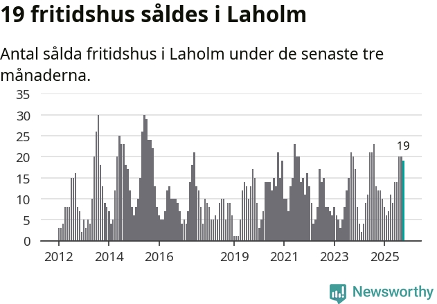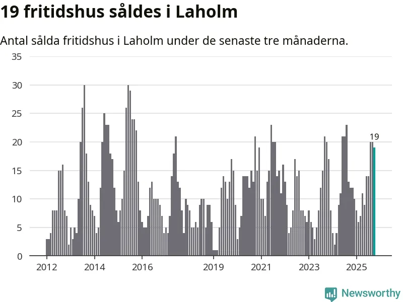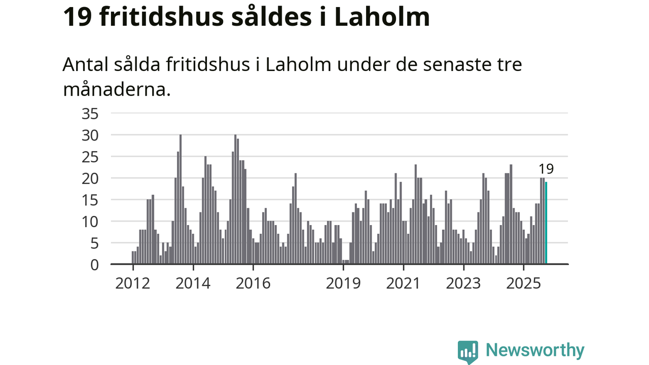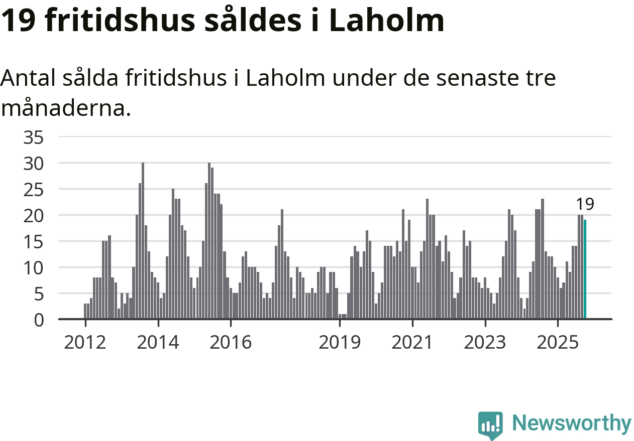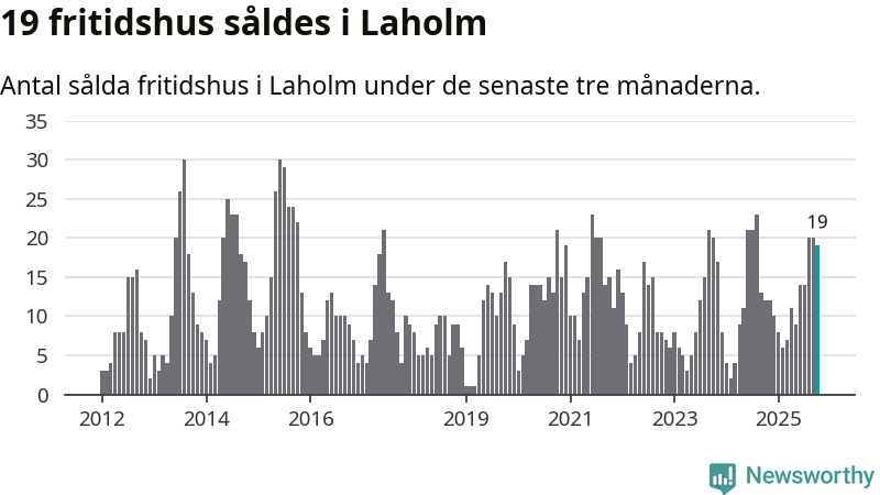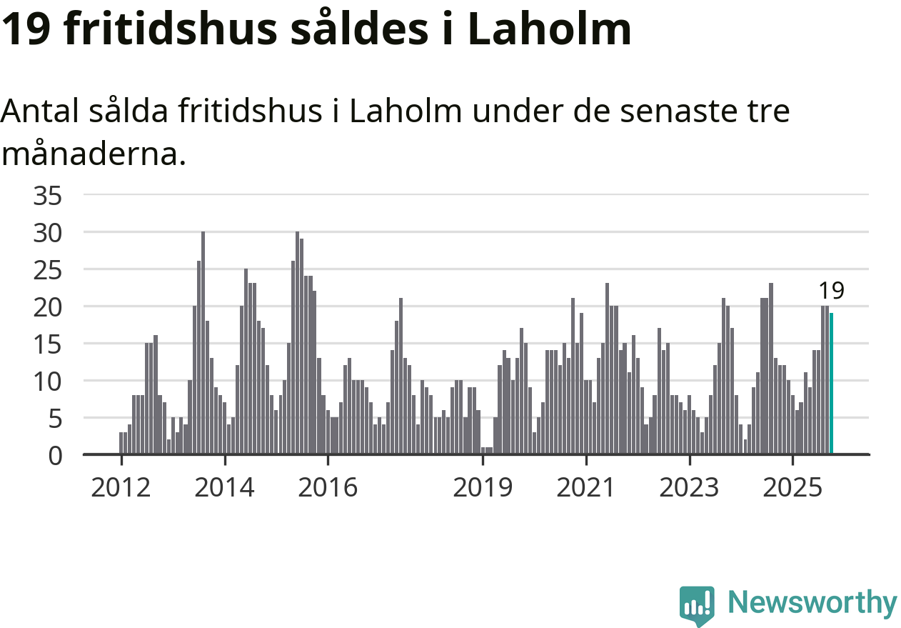 Sammanlagt såldes 19 fritidshus i Laholms kommun mellan augusti och oktober till ett genomsnittligt pris på 1,8 miljoner kronor. I fjol gjordes tolv affärer vid den här tiden på året.