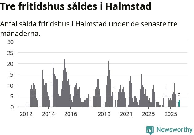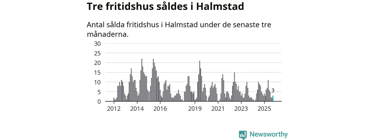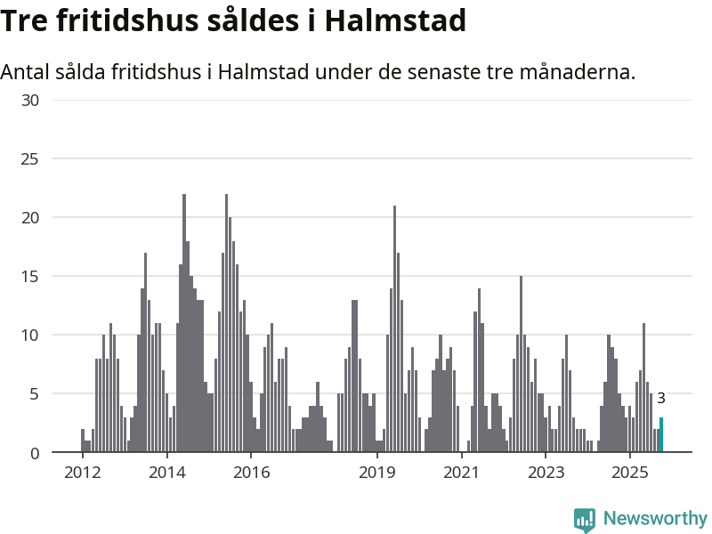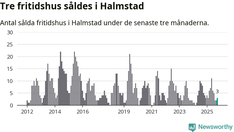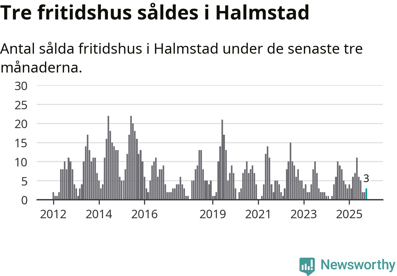 Mellan augusti och oktober gjordes sammanlagt tre affärer med fritidshus i Halmstads kommun. Det kan jämföras med fem vid motsvarande tid i fjol.