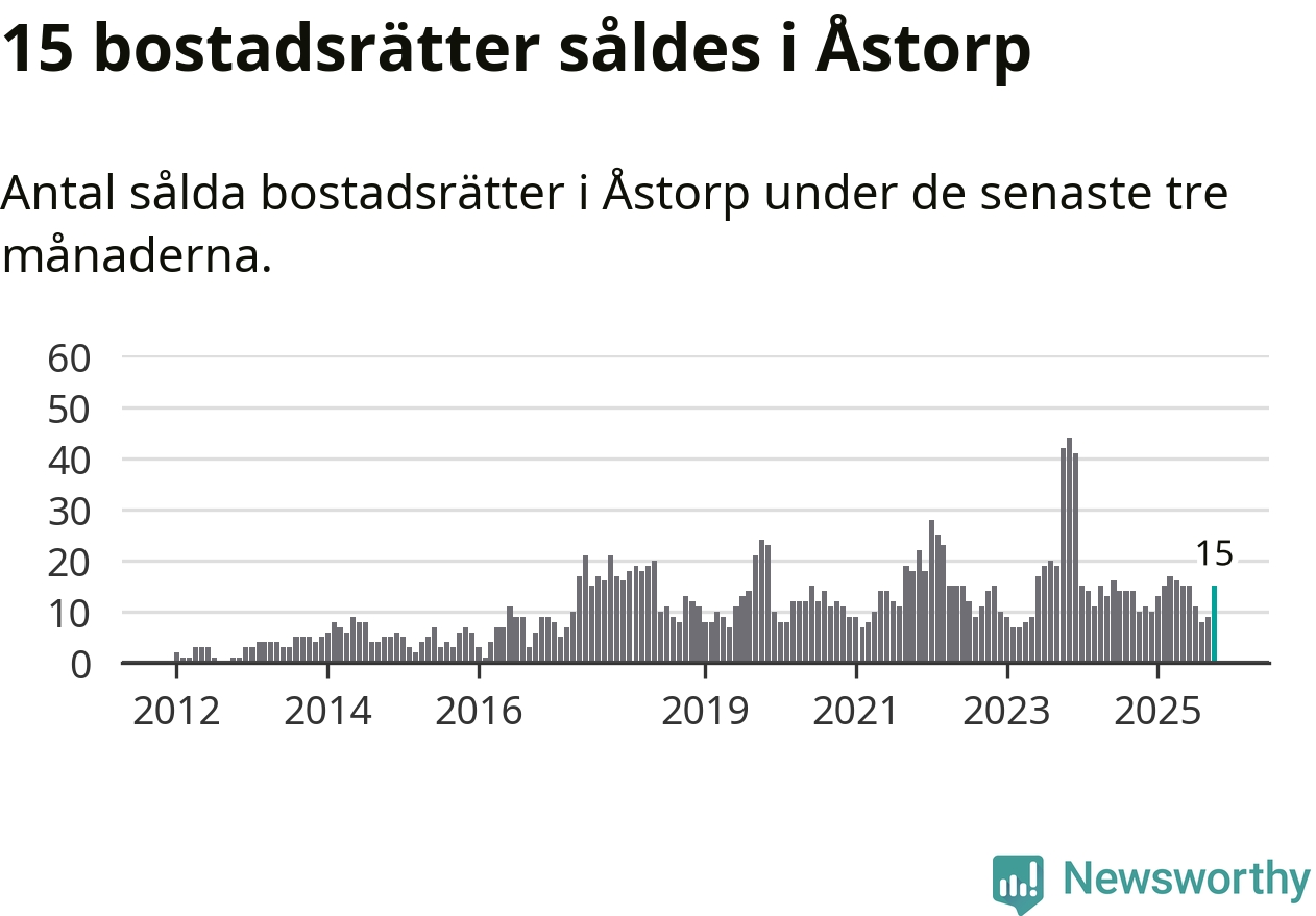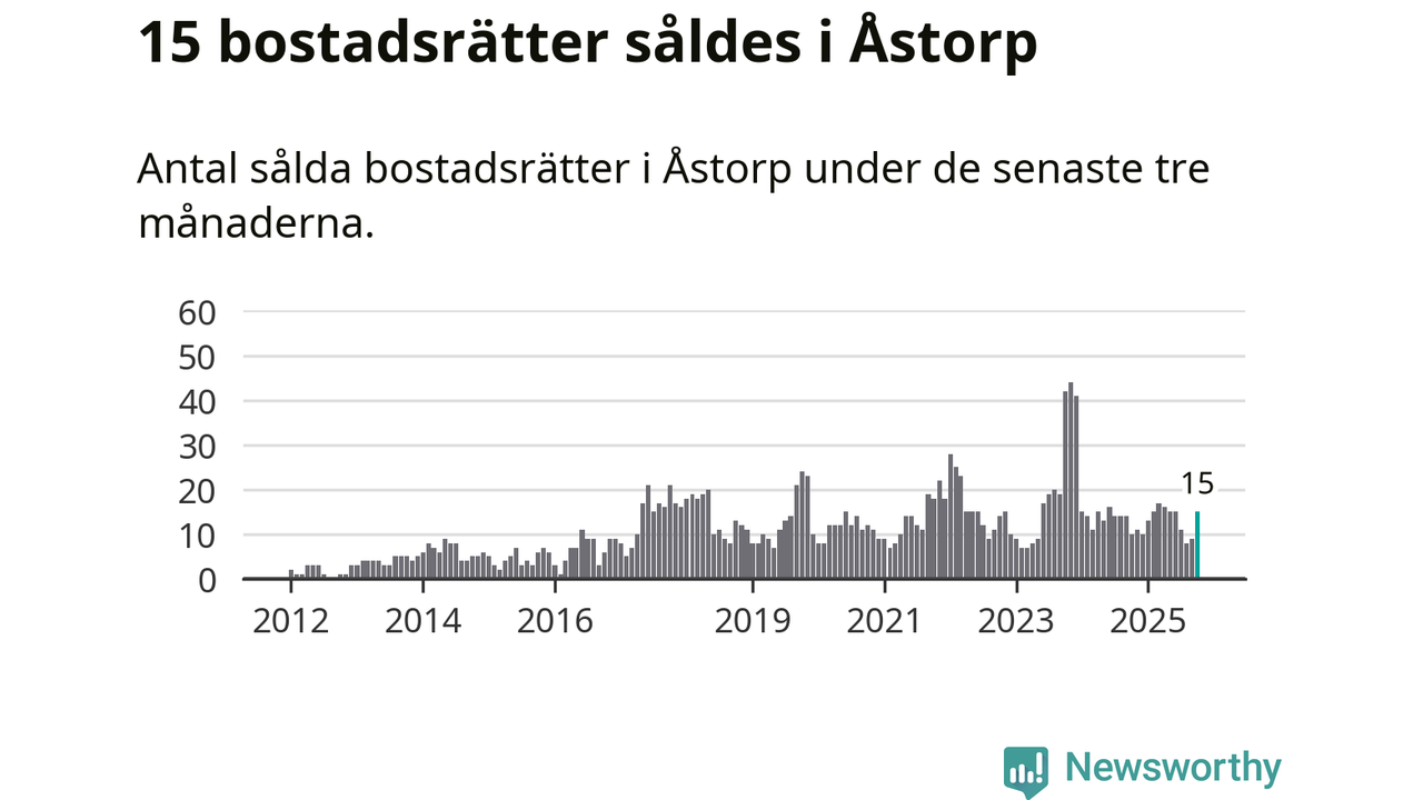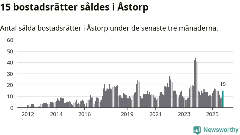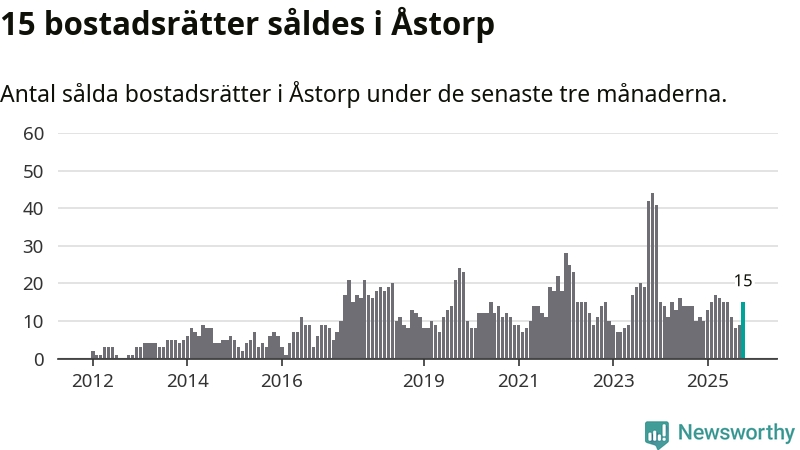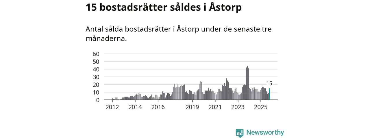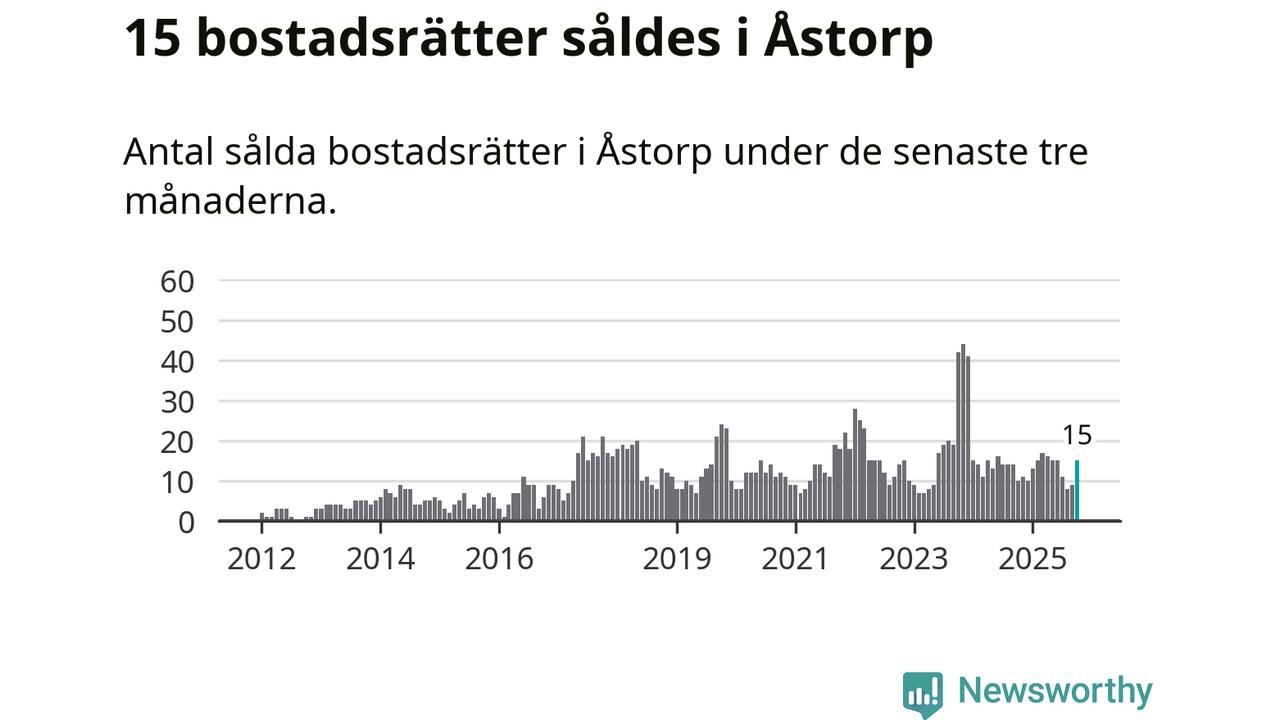 Mellan augusti och oktober gjordes sammanlagt 15 affärer med bostadsrätter i Åstorps kommun. Det kan jämföras med tio vid motsvarande tid i fjol.