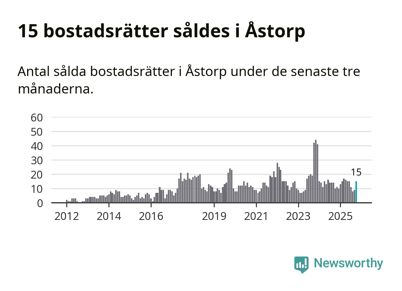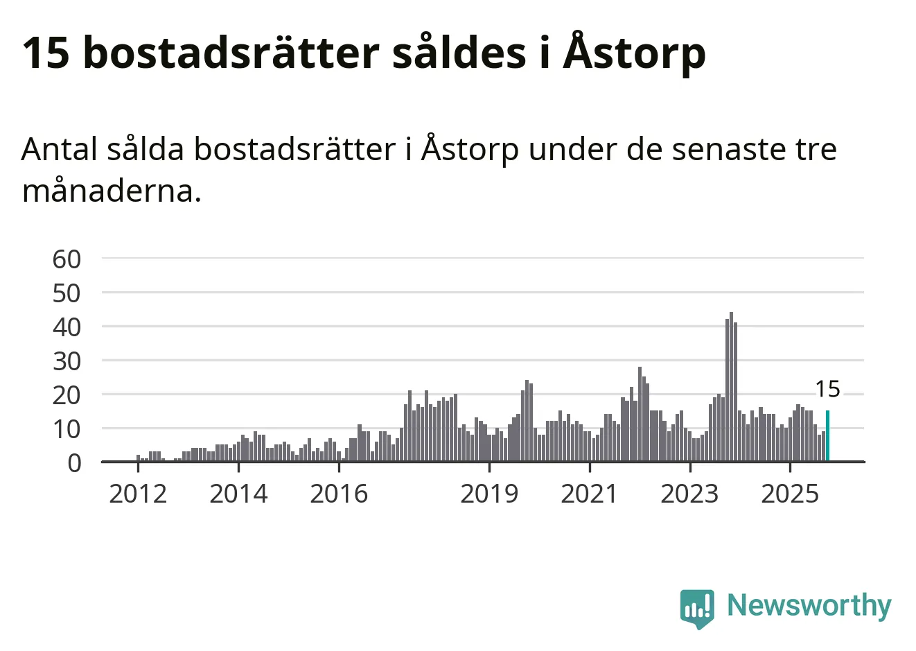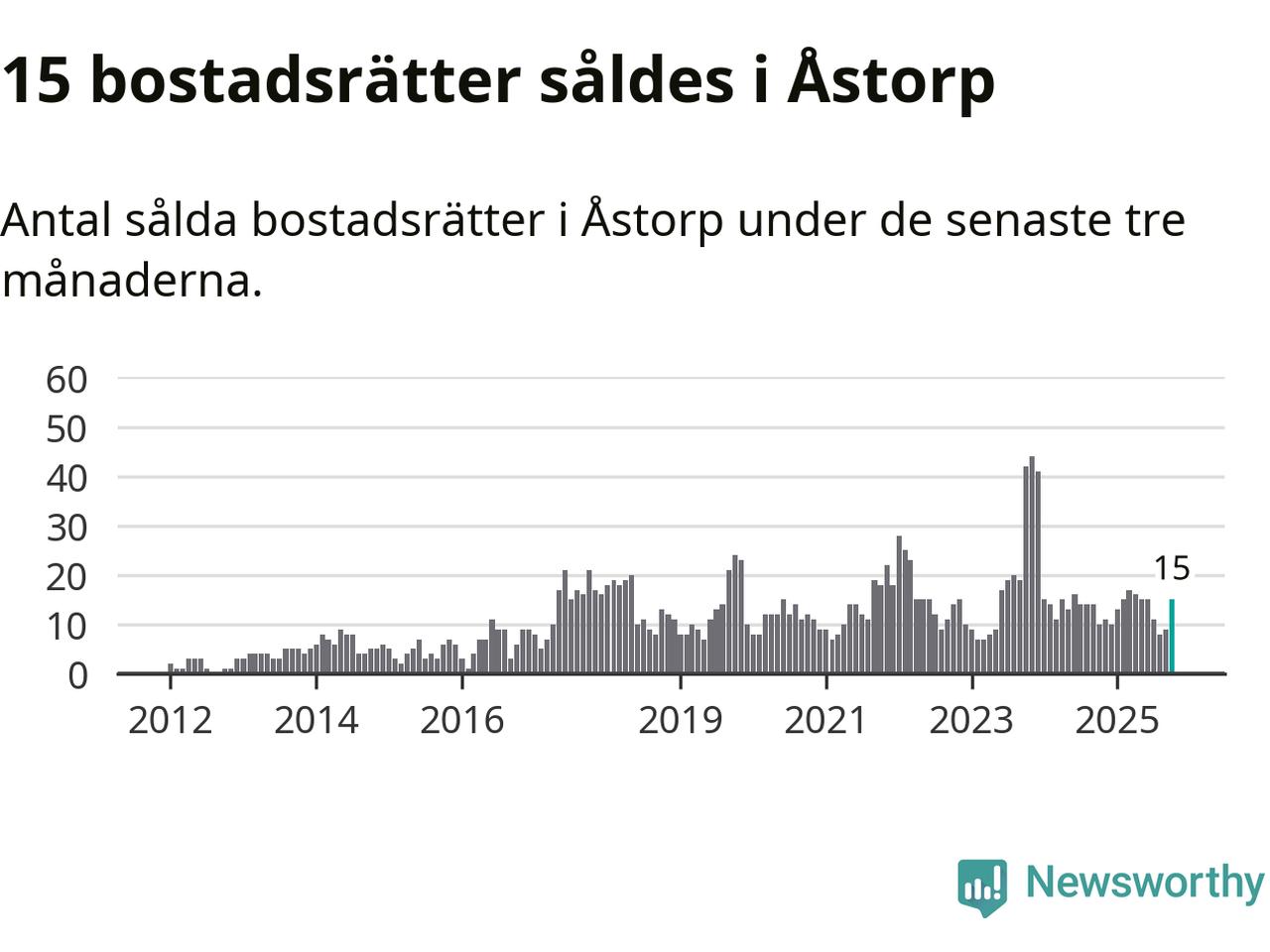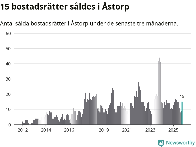 Mellan augusti och oktober gjordes sammanlagt 15 affärer med bostadsrätter i Åstorps kommun. Det kan jämföras med tio vid motsvarande tid i fjol.