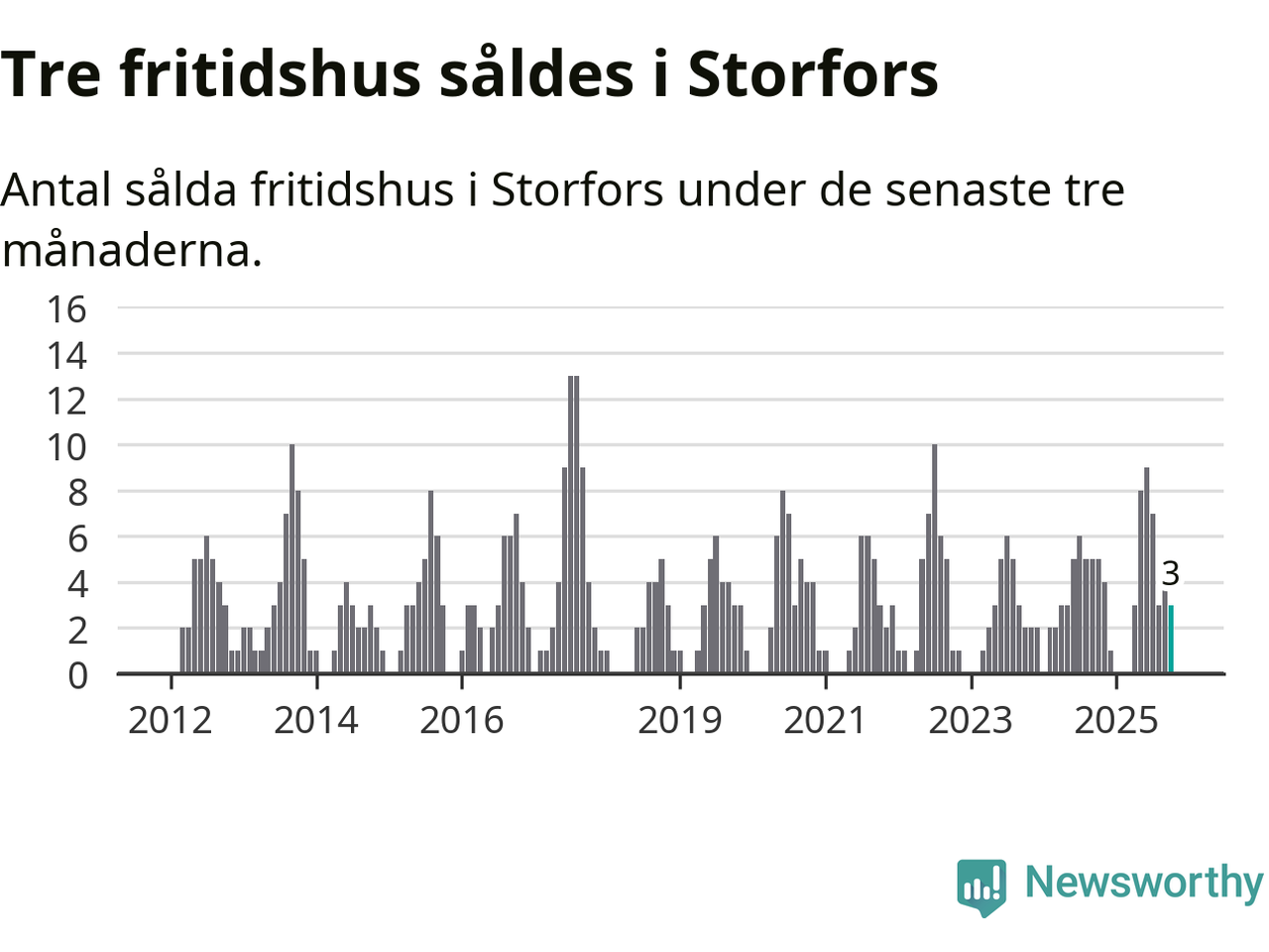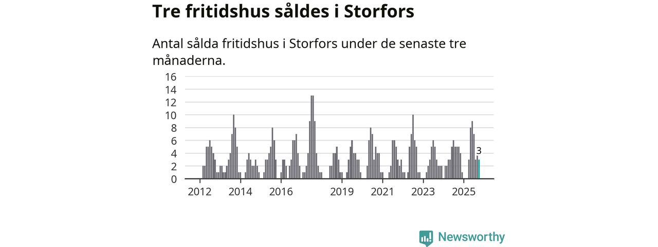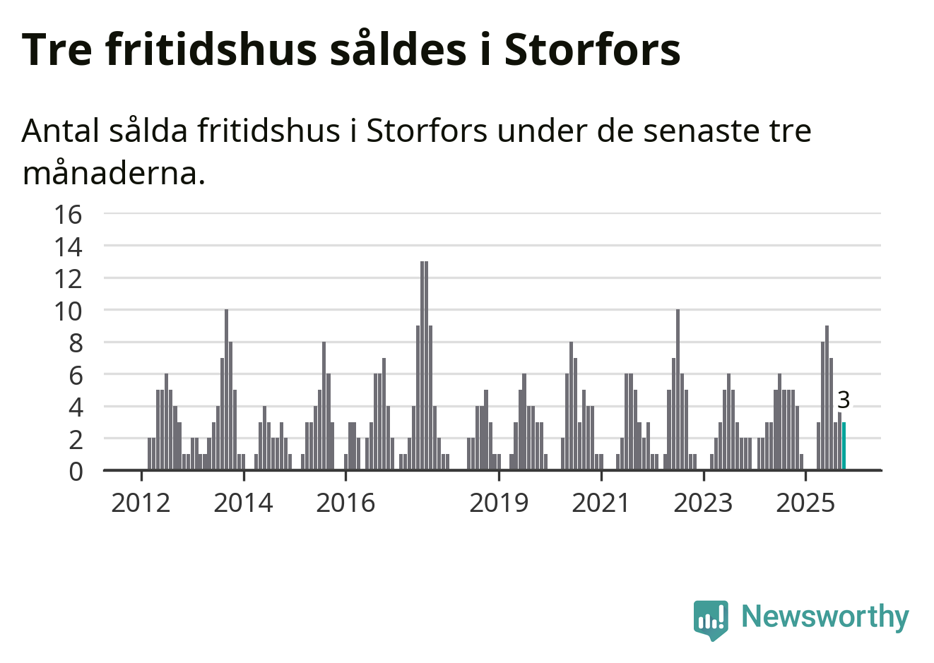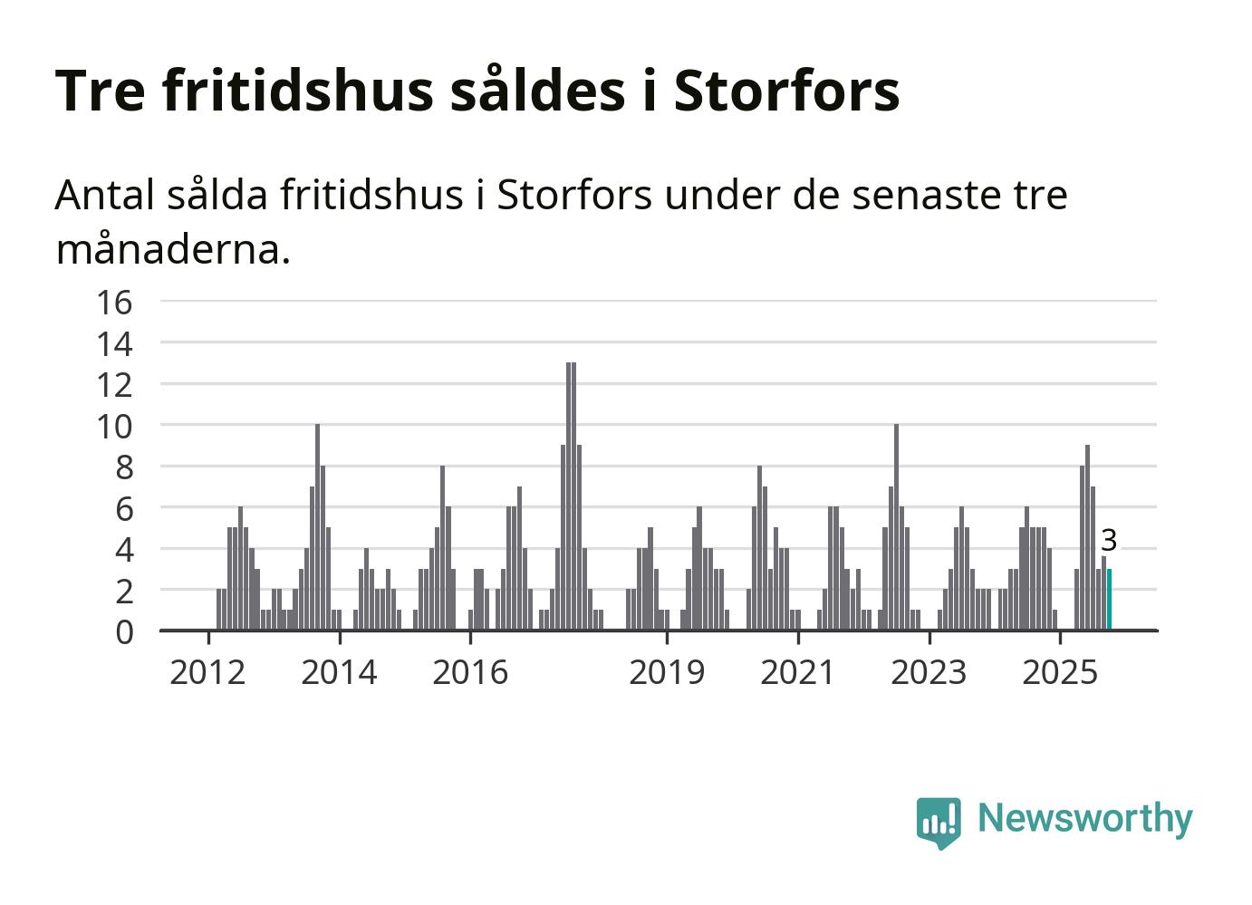 Mellan augusti och oktober gjordes sammanlagt tre affärer med fritidshus i Storfors kommun. Det kan jämföras med fem vid motsvarande tid i fjol.