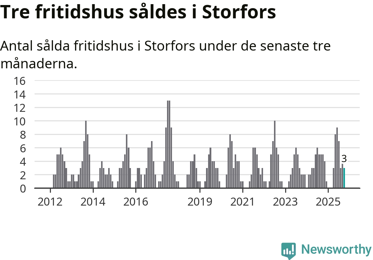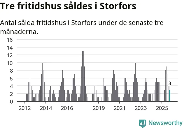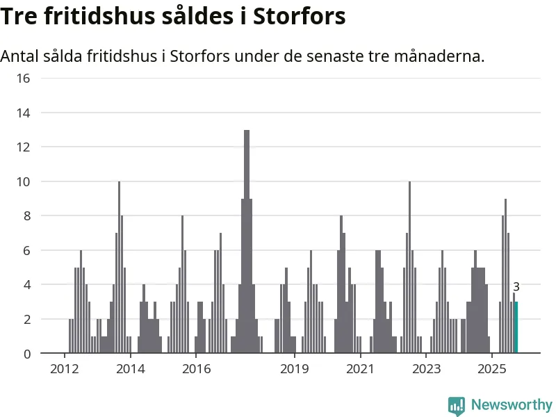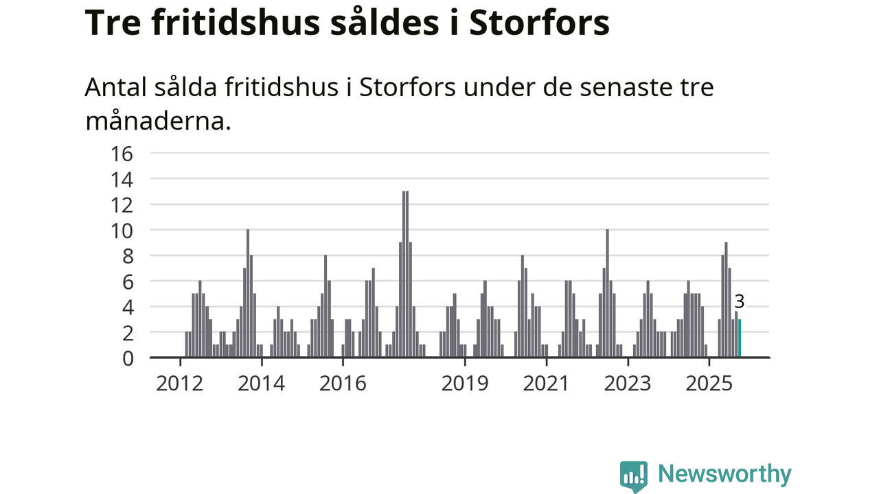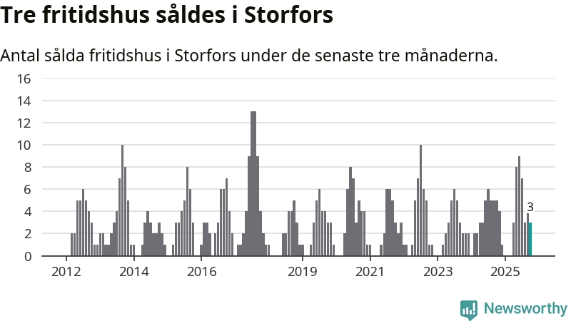 Mellan augusti och oktober gjordes sammanlagt tre affärer med fritidshus i Storfors kommun. Det kan jämföras med fem vid motsvarande tid i fjol.