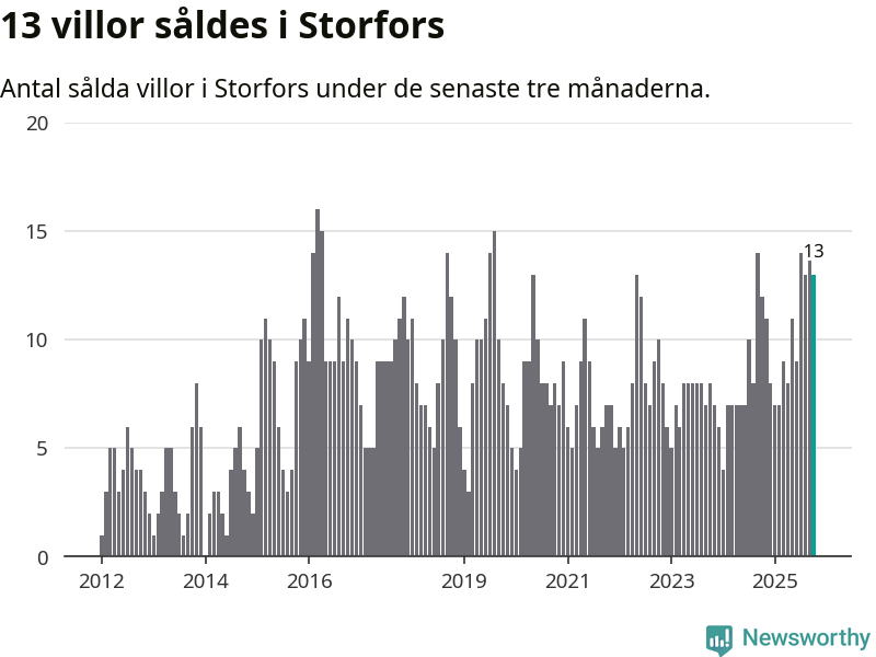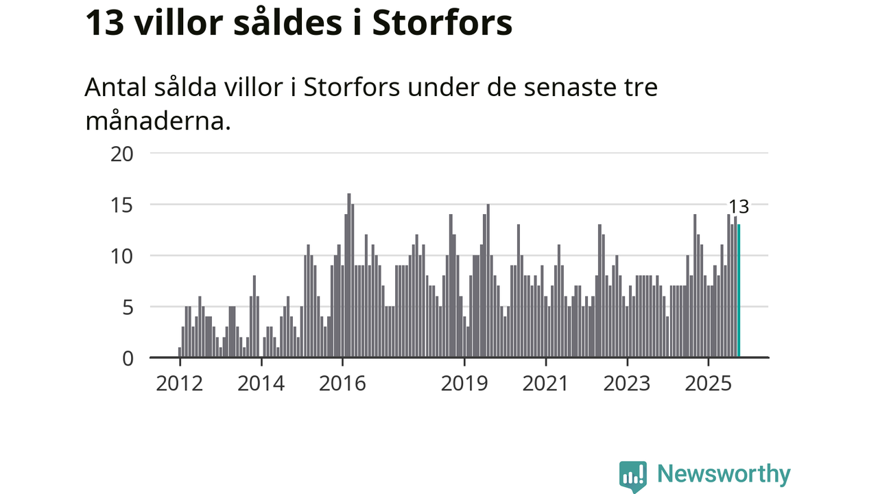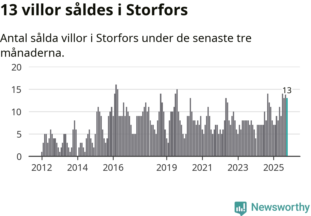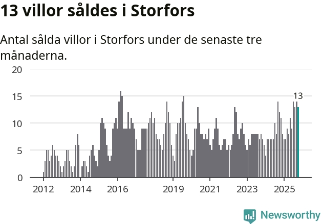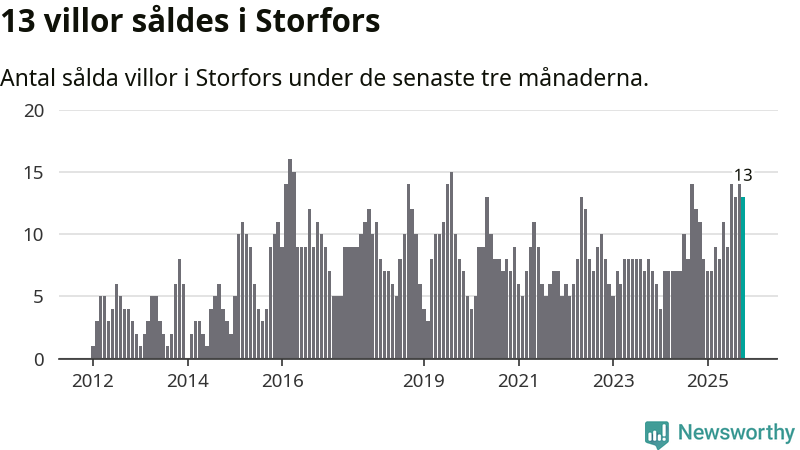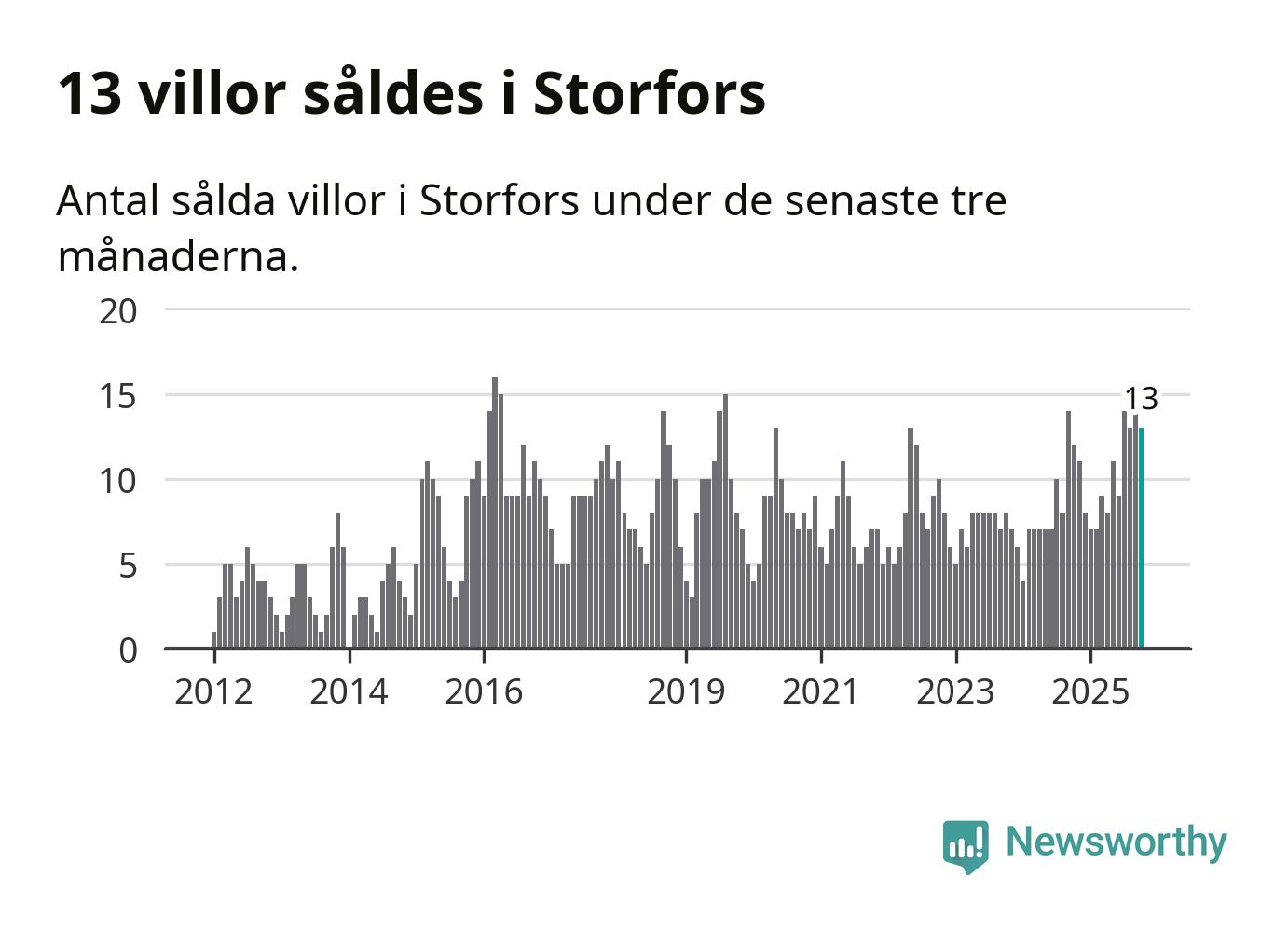 Mellan augusti och oktober gjordes sammanlagt 13 affärer med villor i Storfors kommun. Det kan jämföras med tolv vid motsvarande tid i fjol.